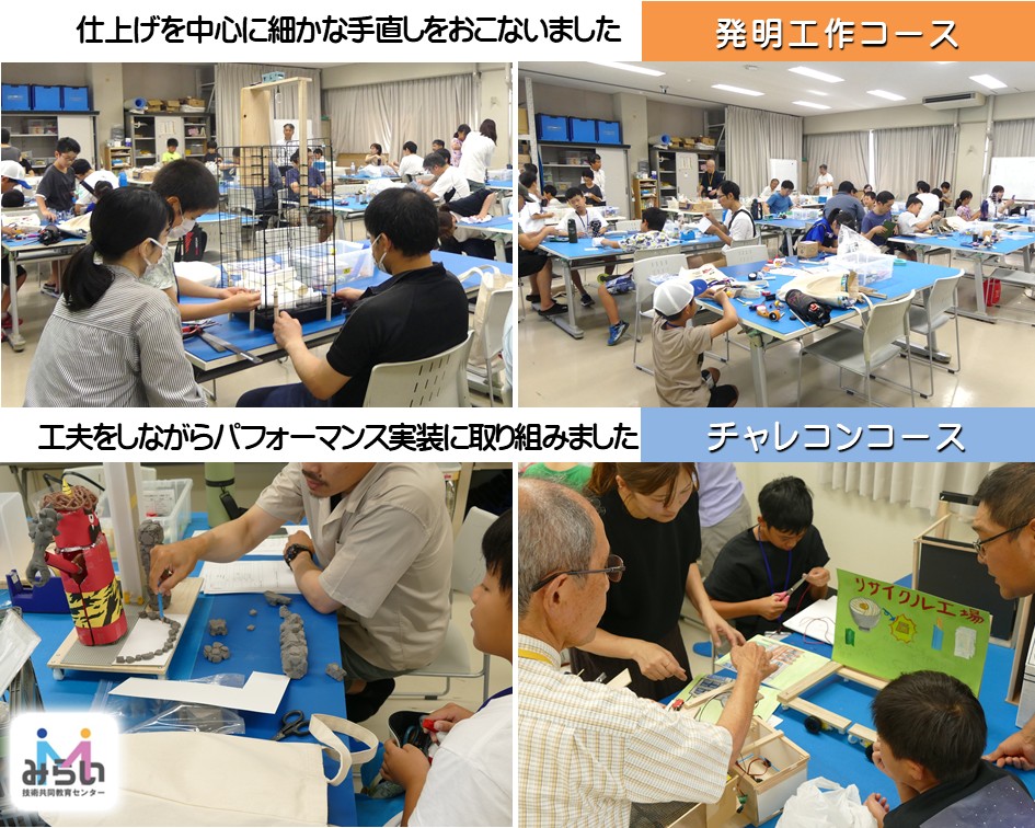 チャレコンコースでは、からくり車の上部の製作を中心に行いました。少しずつではありますが、工夫をしながらパフォーマンス実装に取り組んでいます。