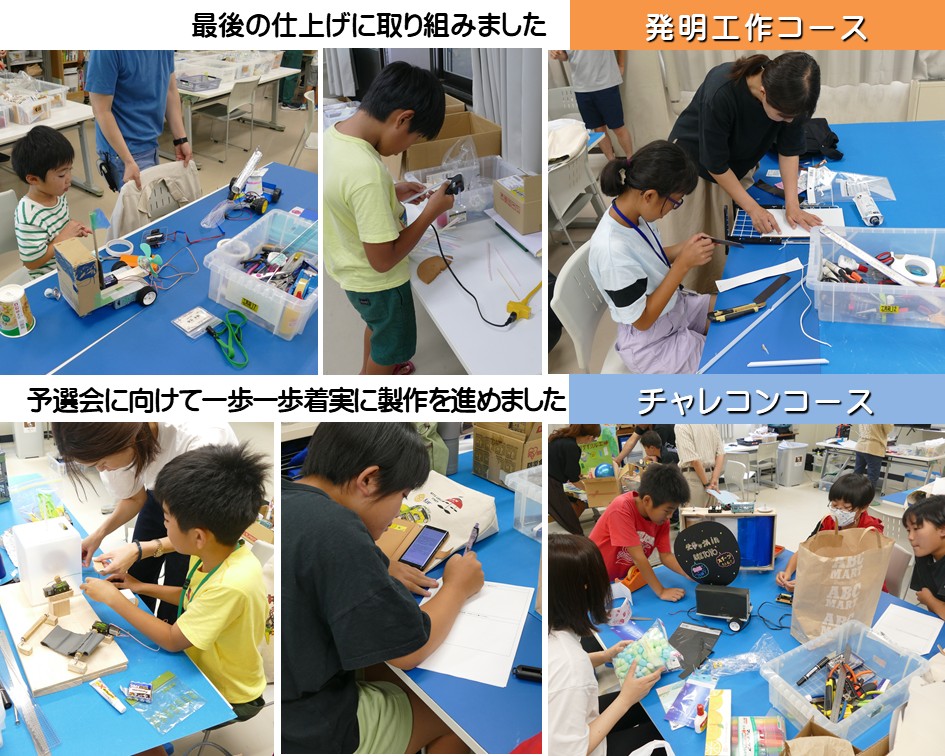 チャレコンコースは、翌週に迫った予選会に向けて最後の追い込みです。思い描いたパフォーマンスを実現させることはとても難しいですが、一歩一歩着実に落ち着いて製作を進めています。予選会で提出が必要なアイデアシートの記入もしました。予選会で悔いなく動かせるように、自宅に持ち帰って製作を続けます。