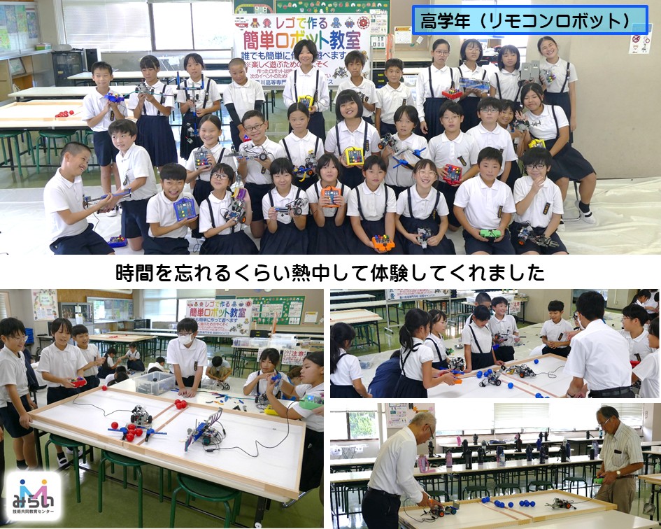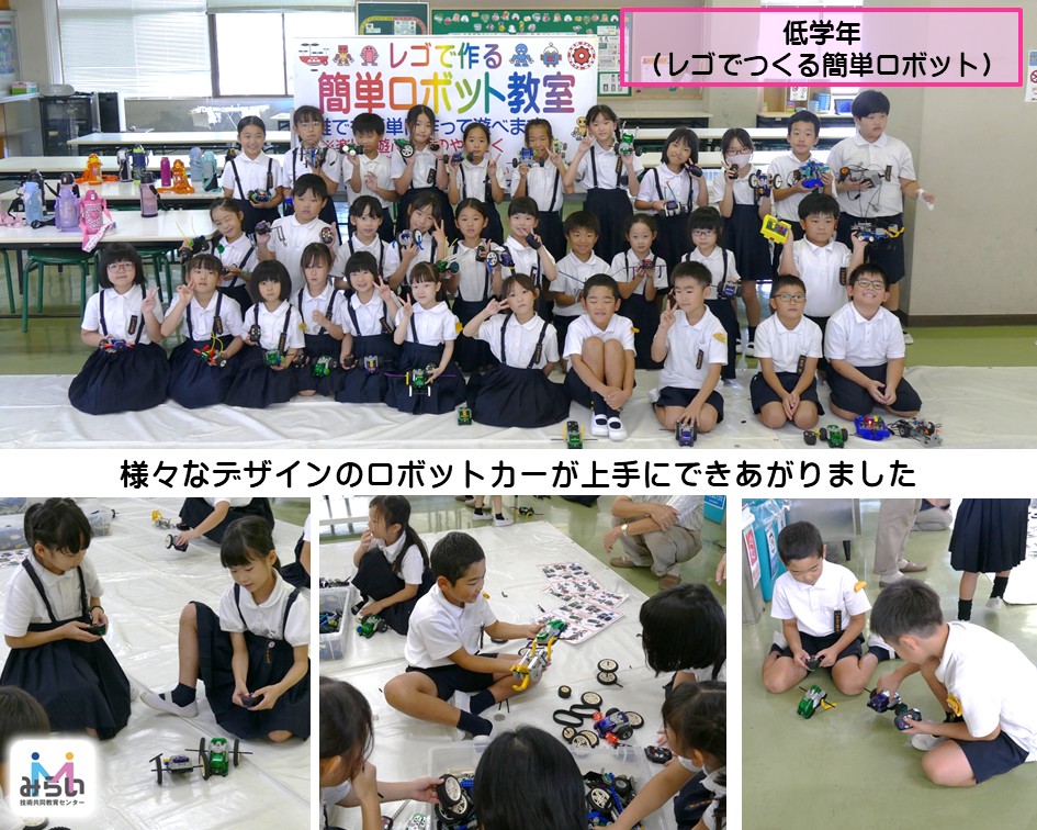 低学年(1~3年生)はレゴつくる簡単ロボット教室を、高学年(4~6年生)はリモコンロボット教室を体験しました。