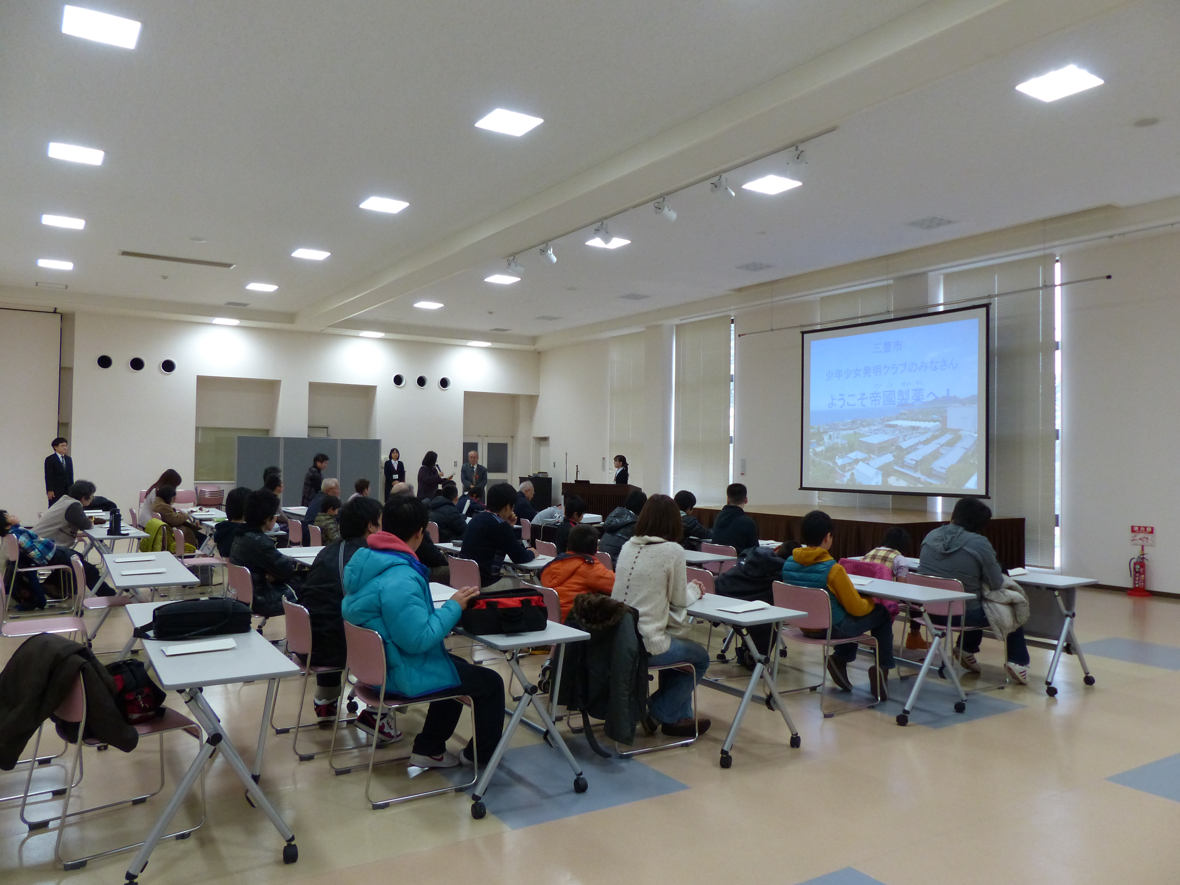 12月26日(木)、三豊市少年少女発明クラブが東かがわ市に本社を置く医療品メーカー、帝國製薬株式会社への工場見学を開催し、発明クラブの親子と、本校ロボコンチームARKの学生が参加しました。