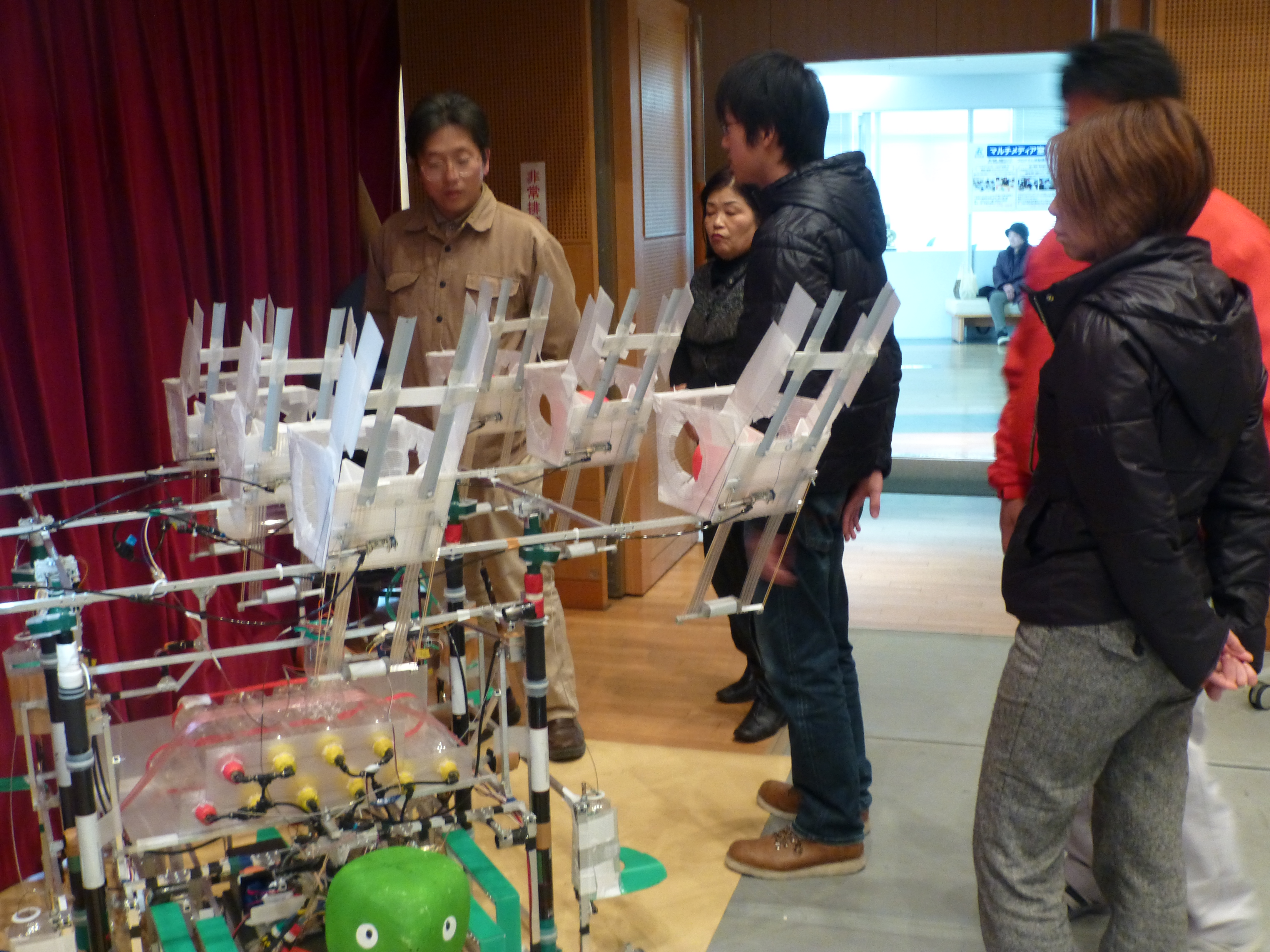 会場を訪れたたくさんの方が興味を持って下さり、学生に質問をしたり、操作を体験しました。