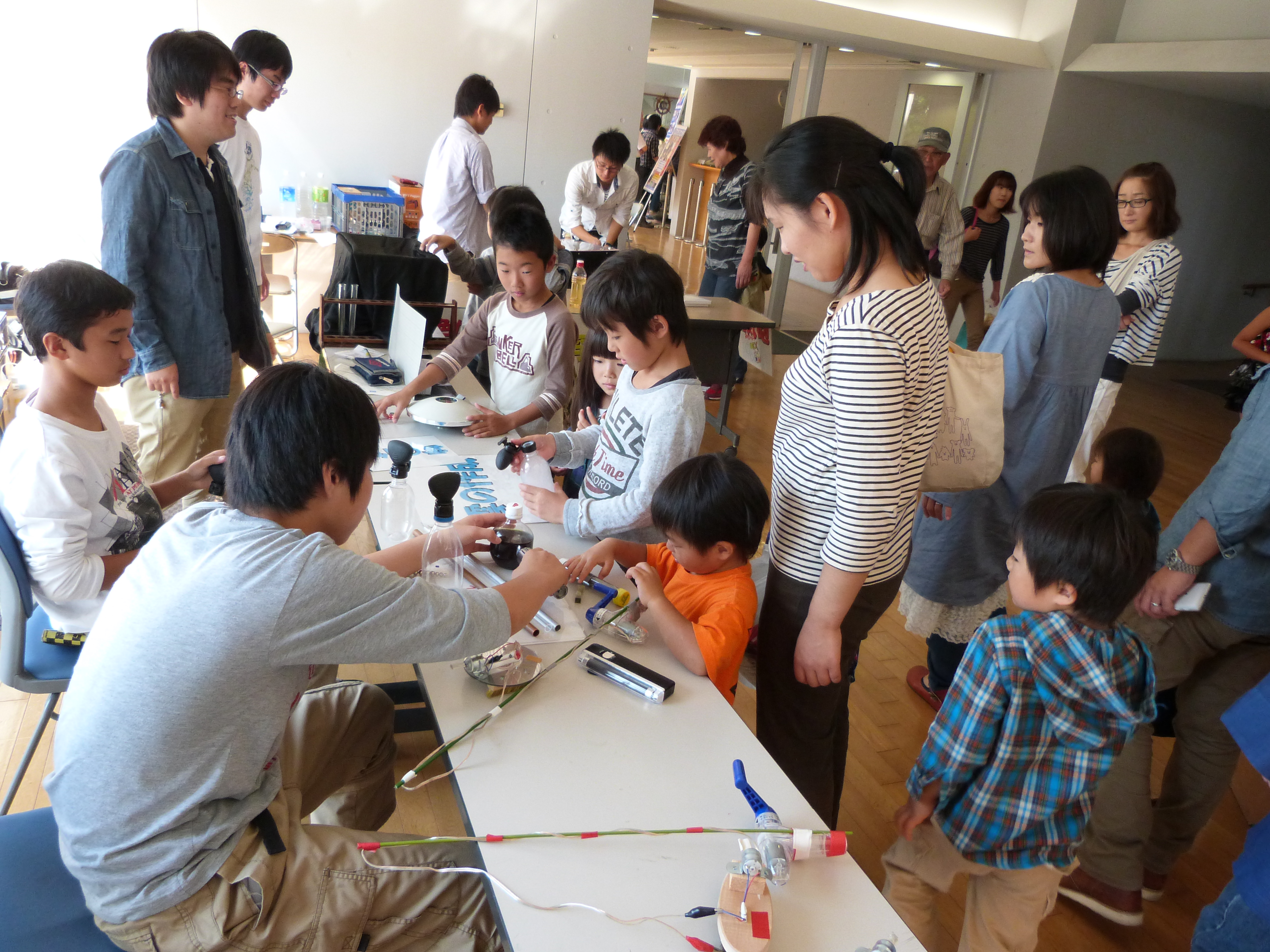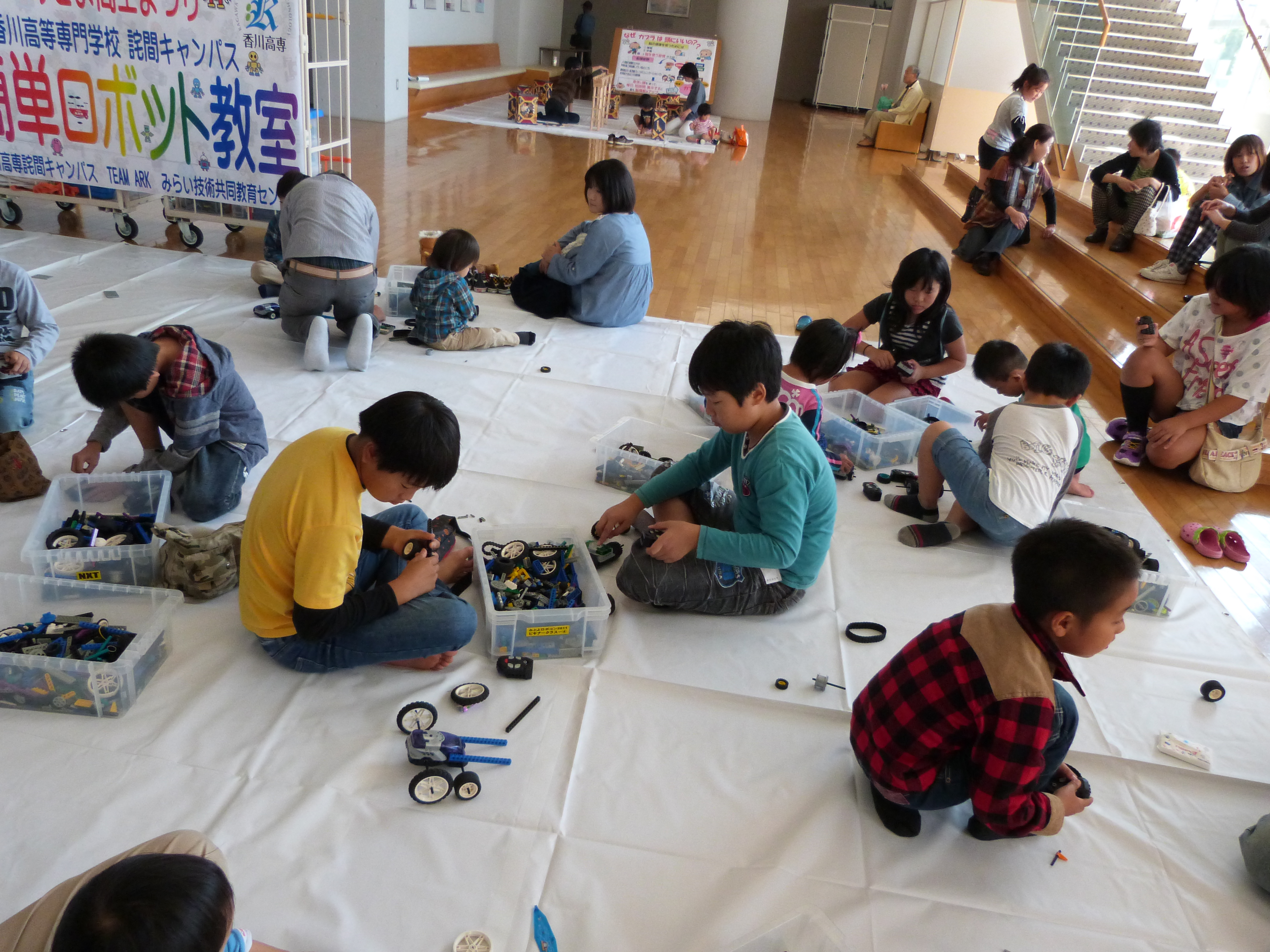 たくさんの家族連れや子ども達が、ゲームや実験を楽しんだり、一心にロボットやブロックを組み立て、まつりに賑やかな笑い声を添えていました。