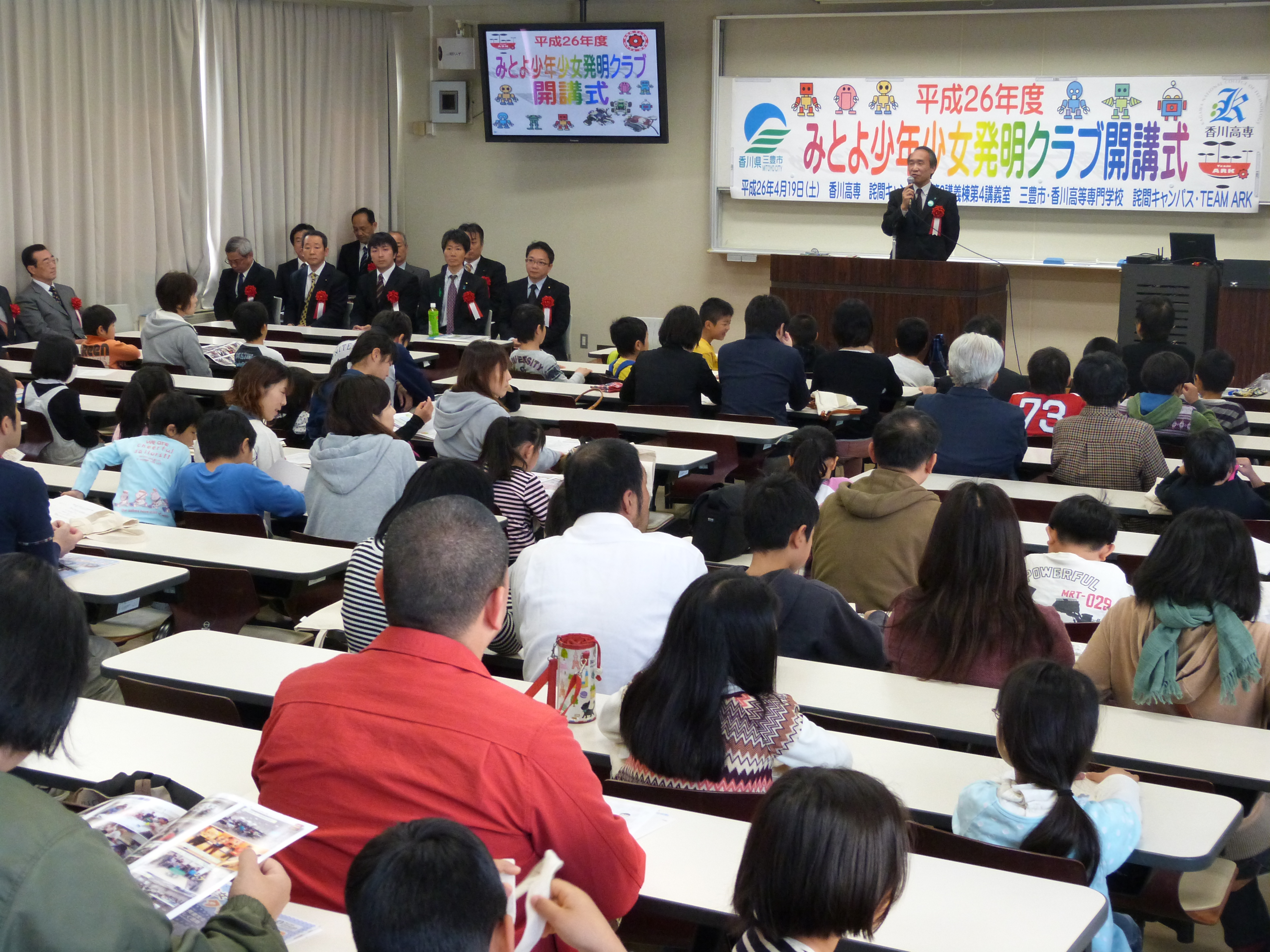 4月19日(土)詫間キャンパスにおいて、平成26年度三豊市少年少女発明クラブ「開講式」が行われました。
