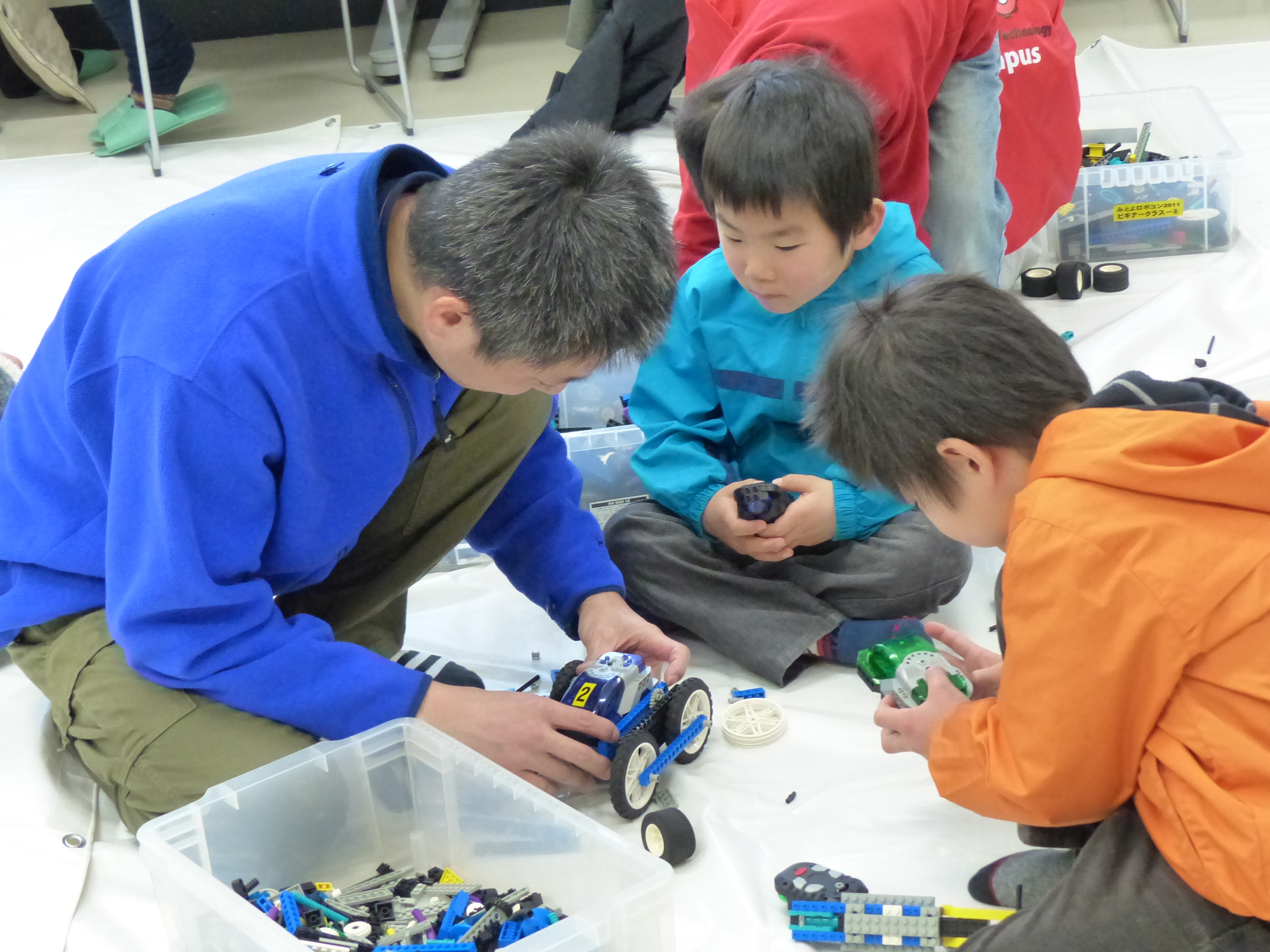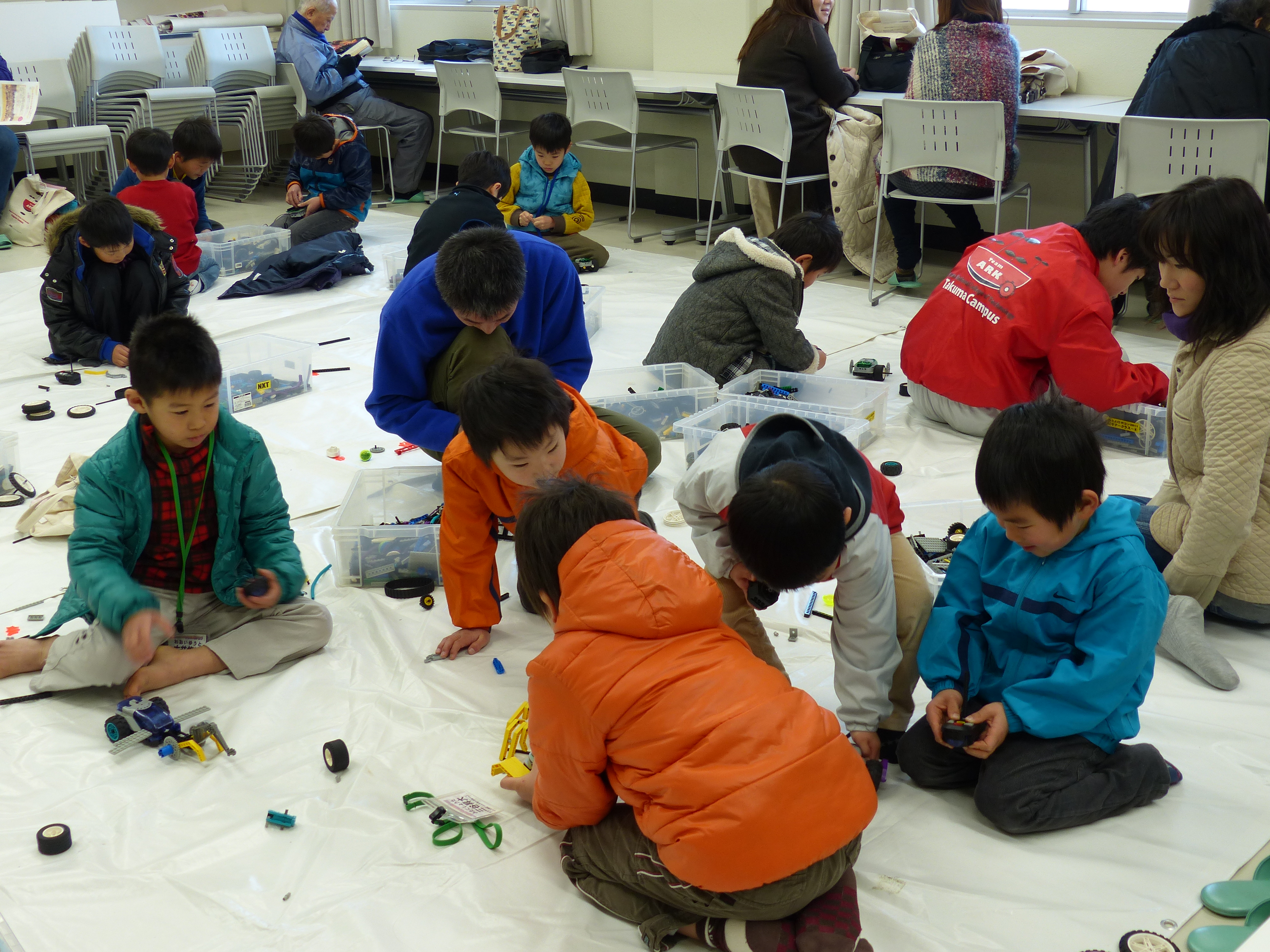 春の簡単ロボット教室に比べ、格段にロボットを扱う手つきが慣れ、考えたり迷ったりする事もなく、次々とパーツを選んでいろいろなパターンを試し、ロボットの動きや作る事を楽しむ子ども達の姿がたくさん見受けられました。