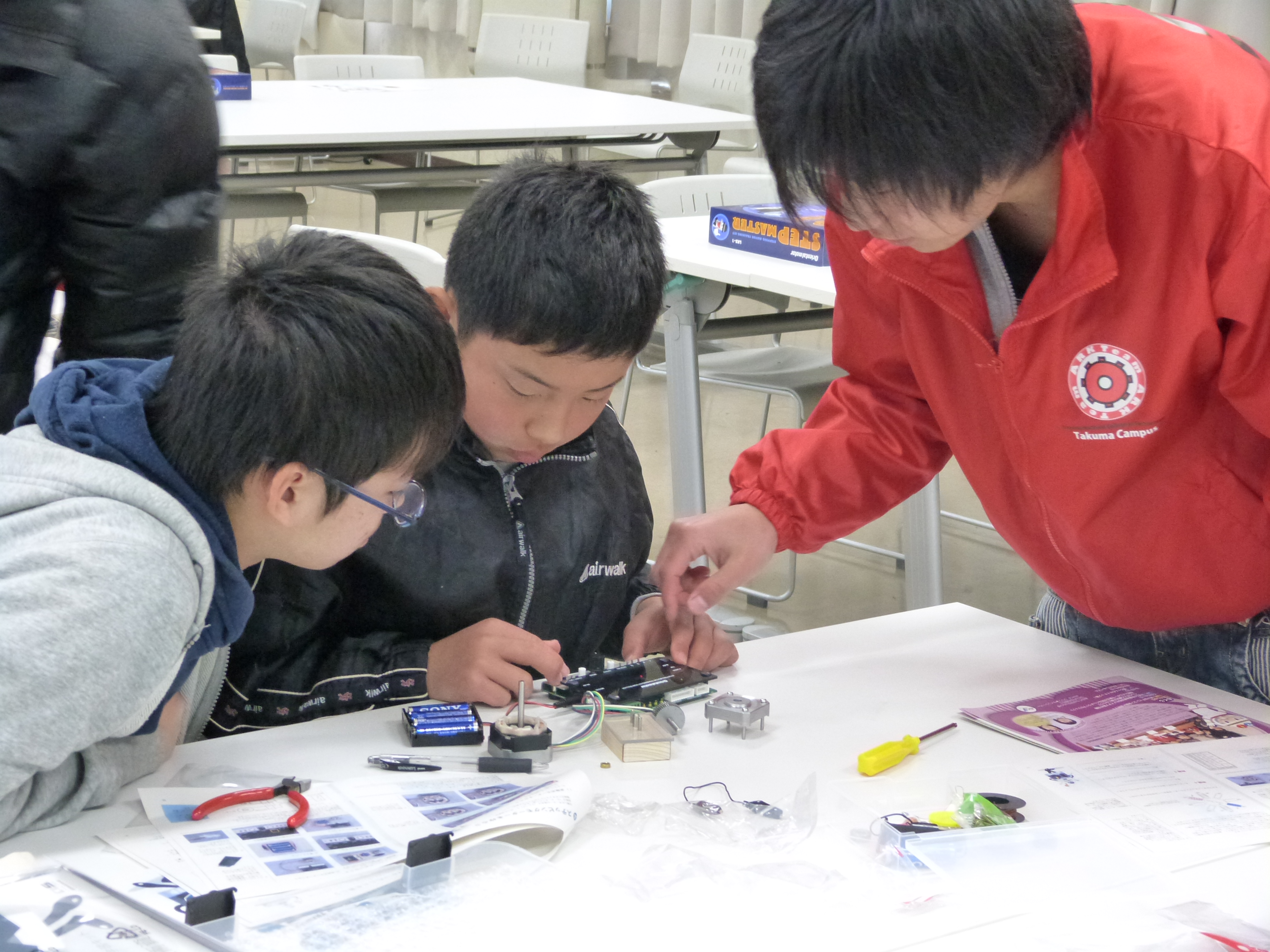 1月19日(土)9時~、詫間キャンパス第2講義棟第4講義室において、三豊市少年少女発明クラブの活動「手作りロボット教室(1)」をロボコンチーム「TEAM ARK」の学生が開催しました。