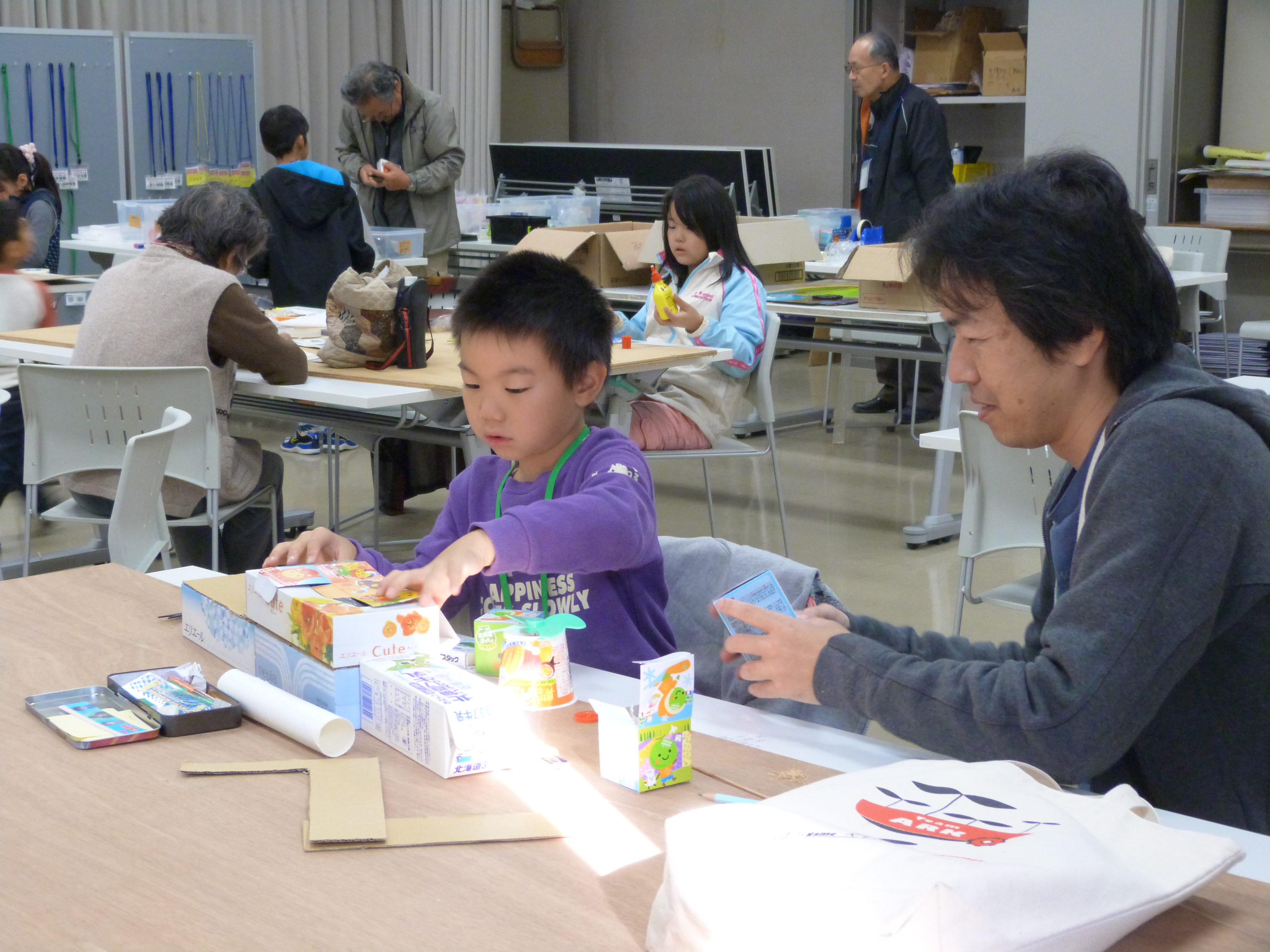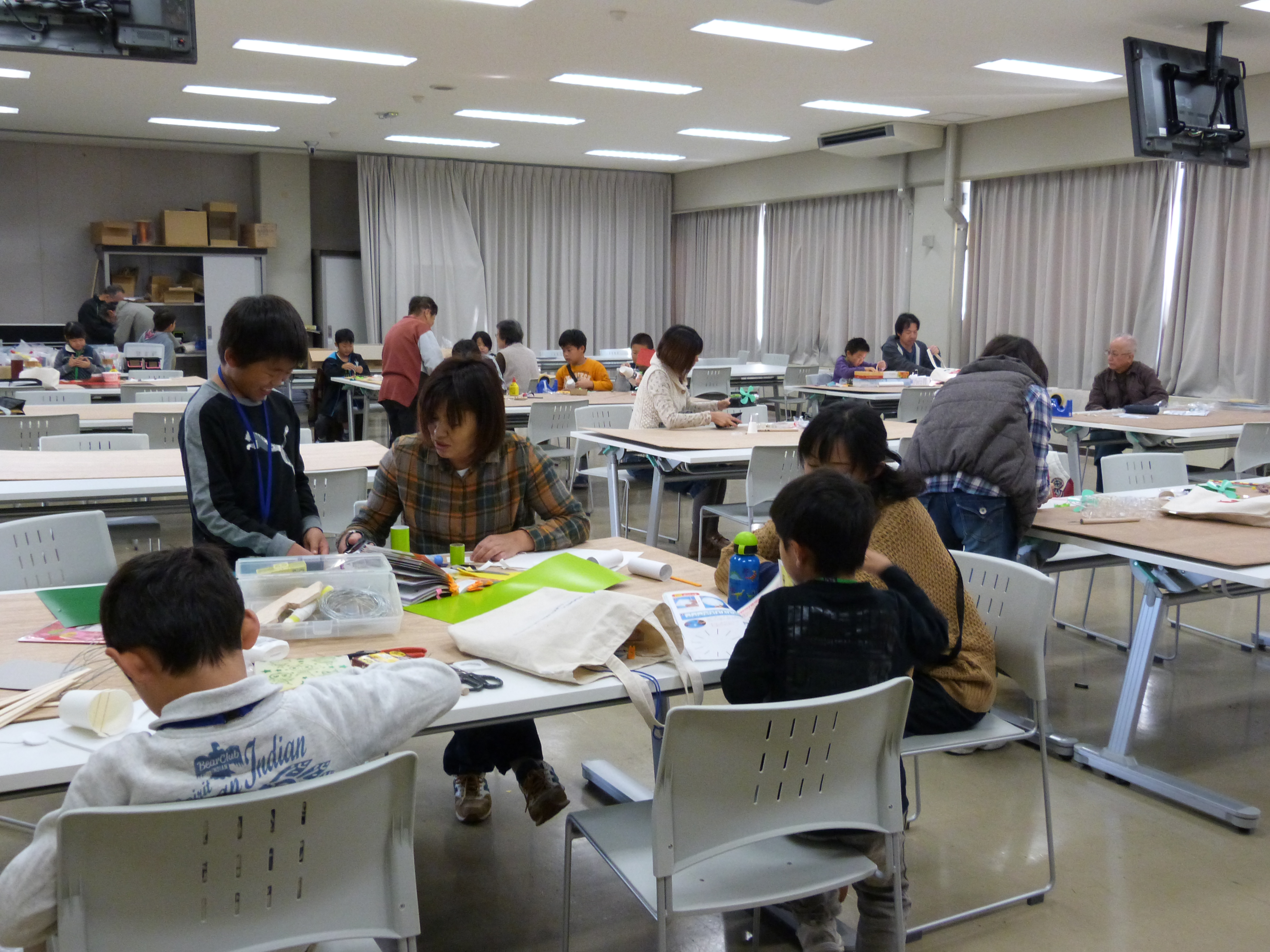 親子、友達同士でアイディアを出し合いながら工作をしました