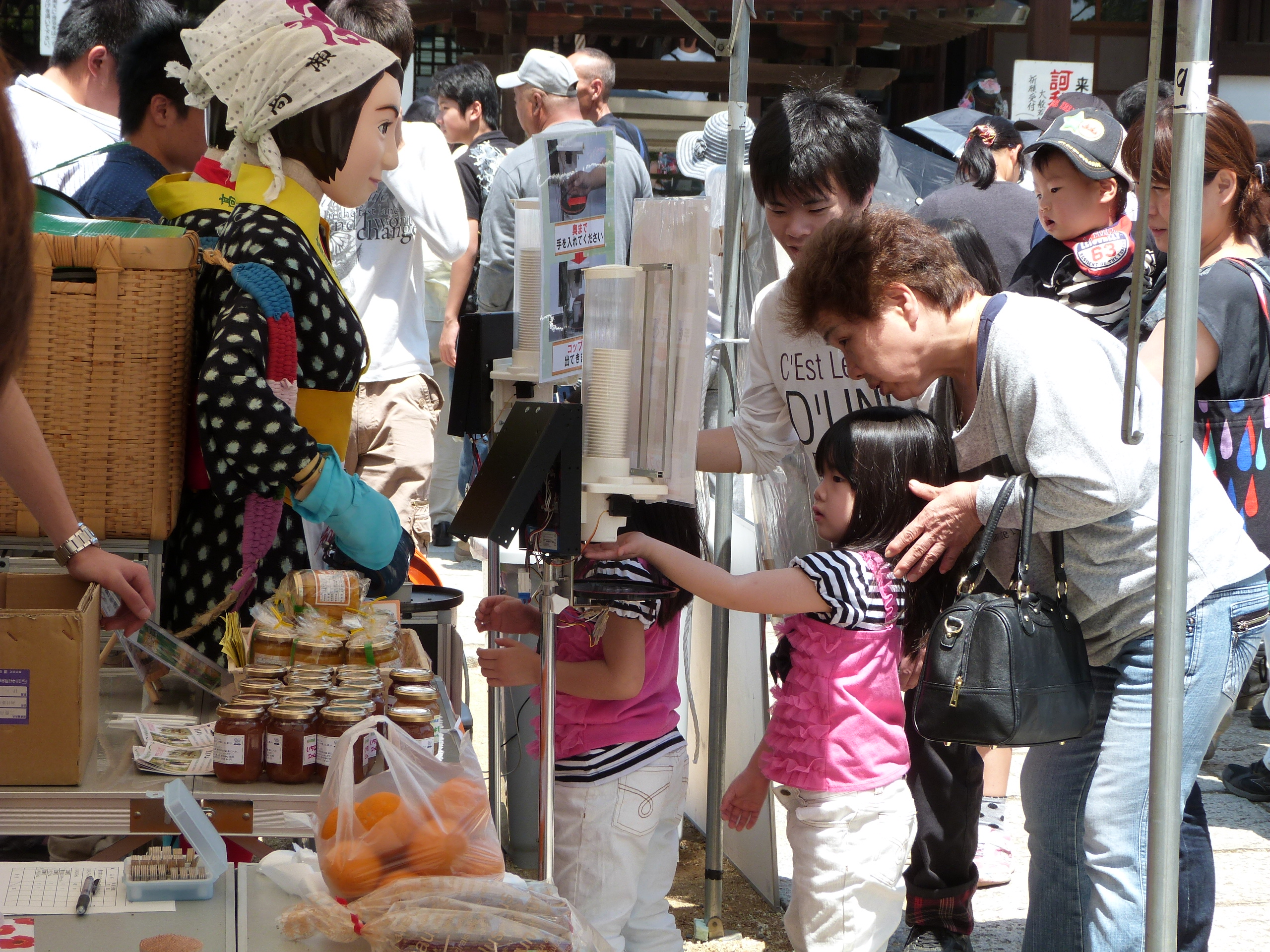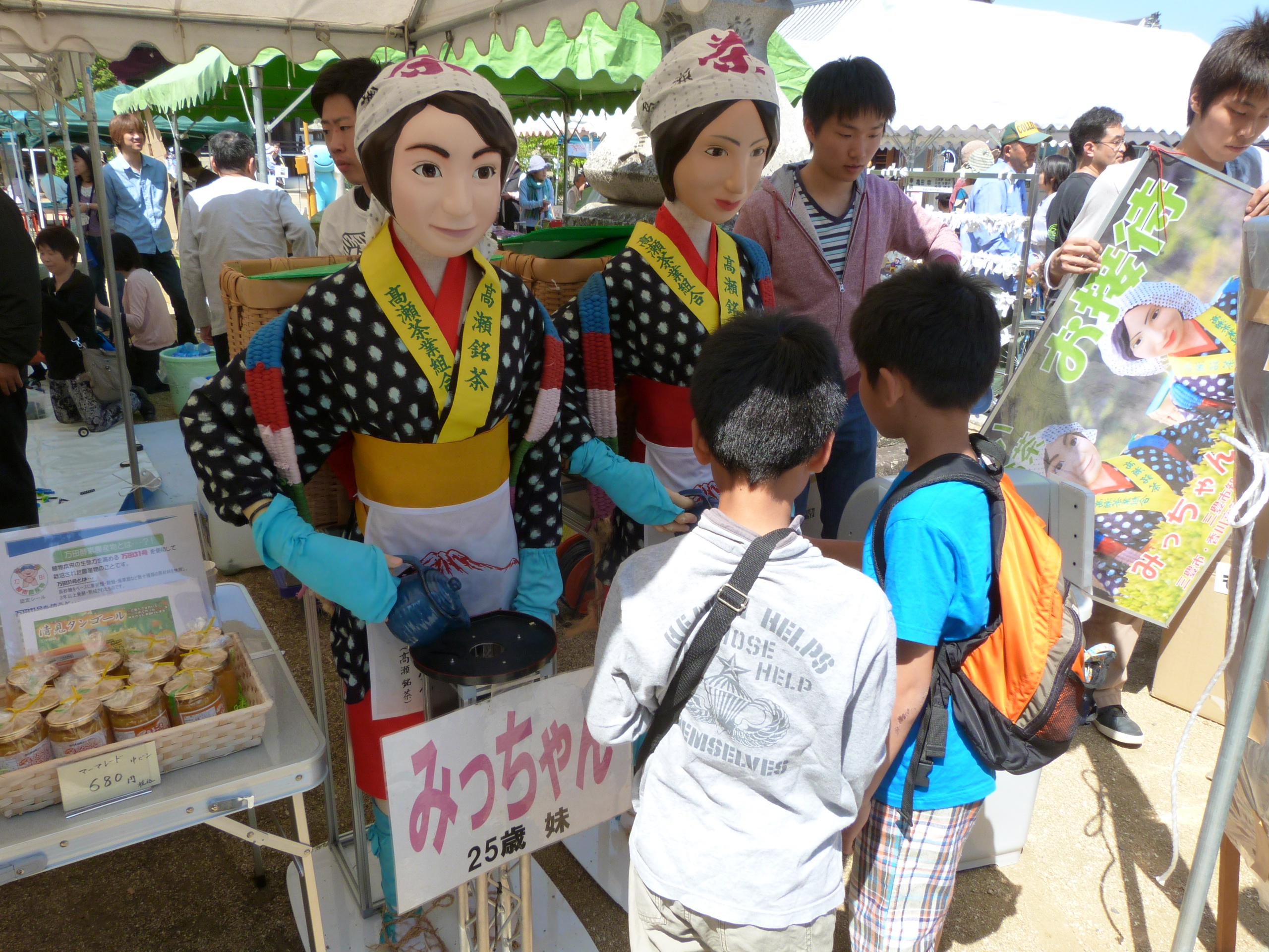 「みっちゃん・とよさん」の冷茶接待では、手をかざすとコップが出る装置、お茶娘に扮した姉妹ロボット「みっちゃん・とよさん」の持つ急須から自動でお茶が注がれる装置が大変喜ばれ、たくさんの方に高瀬茶を味わっていただけました。