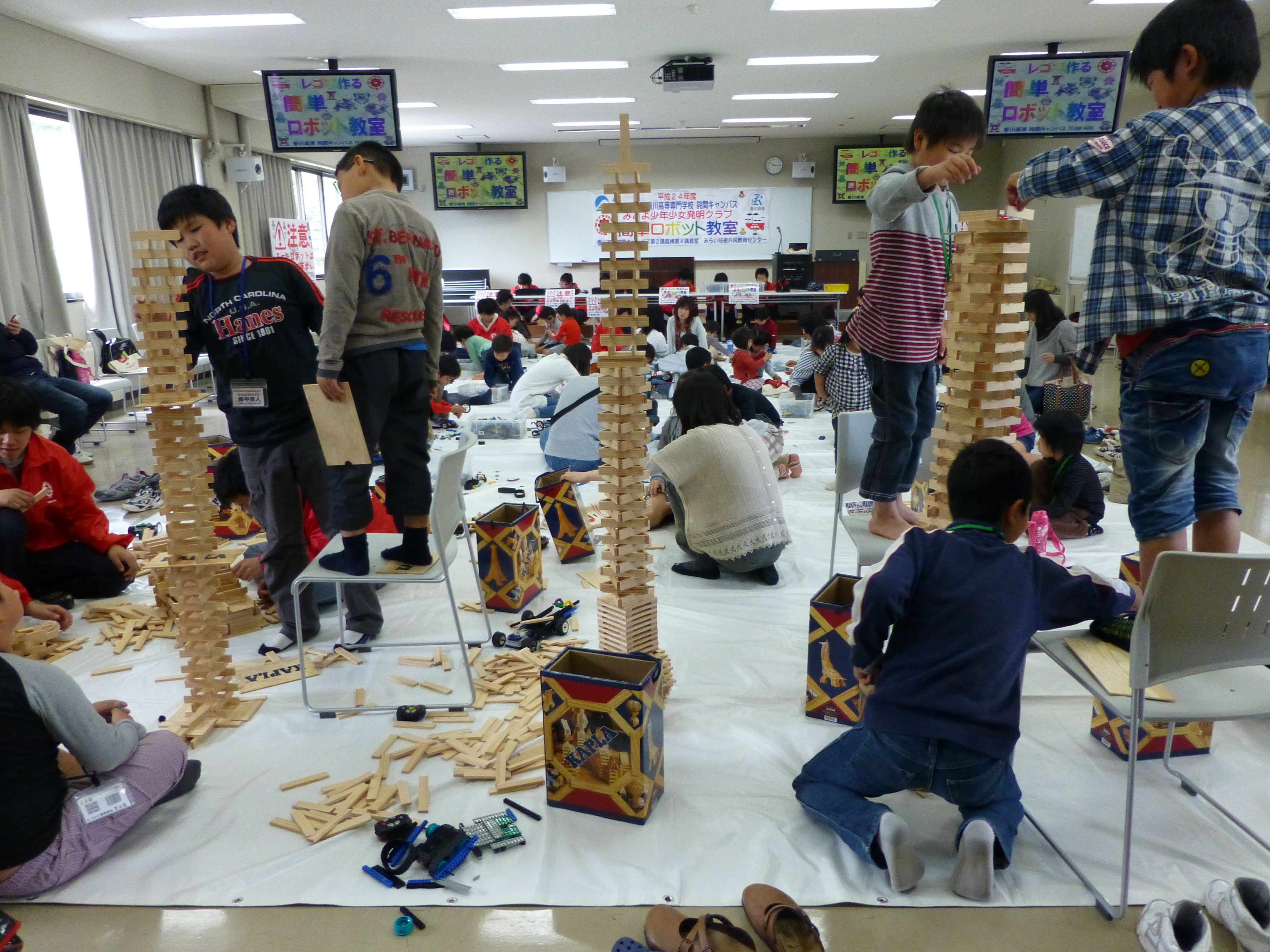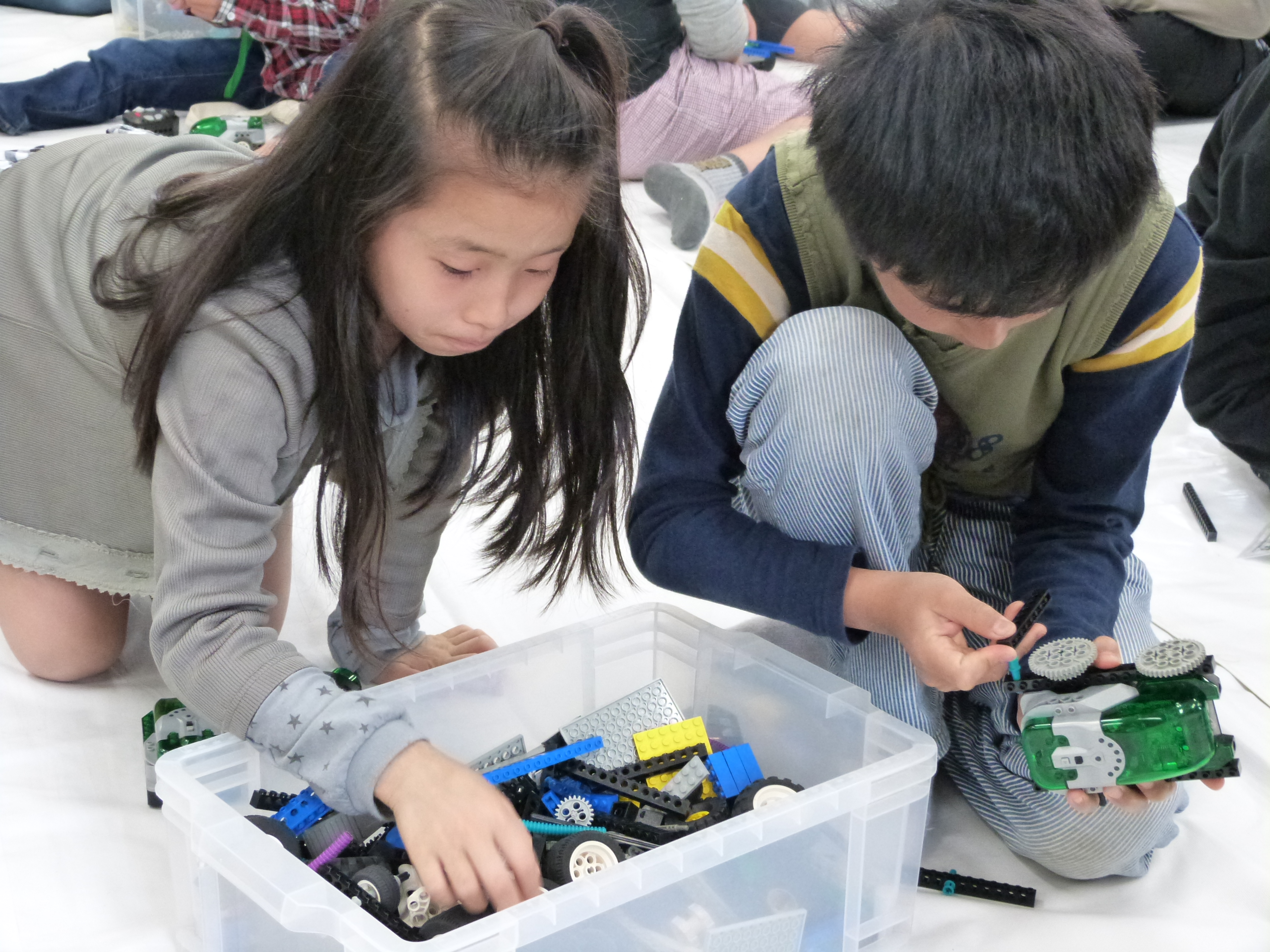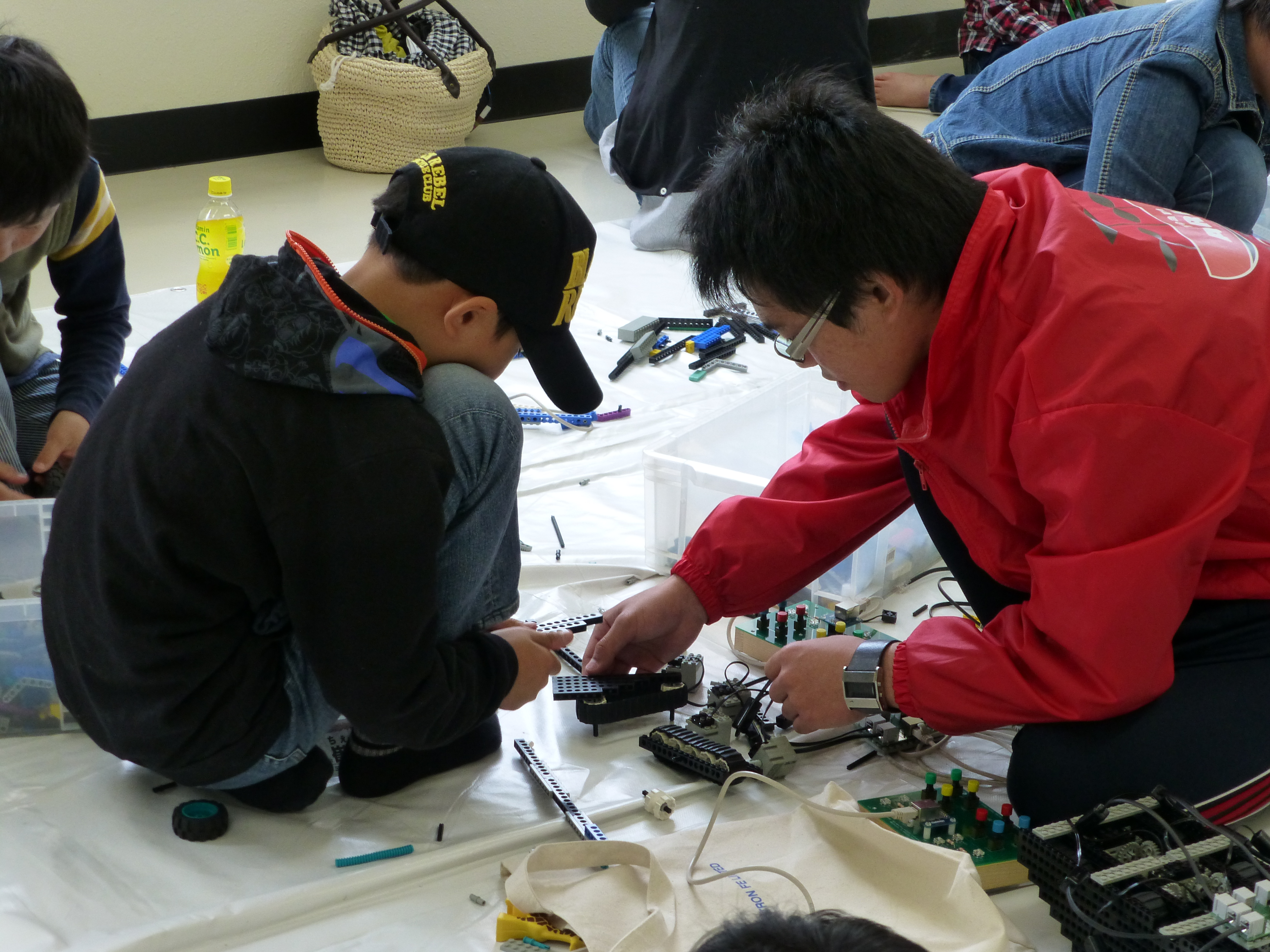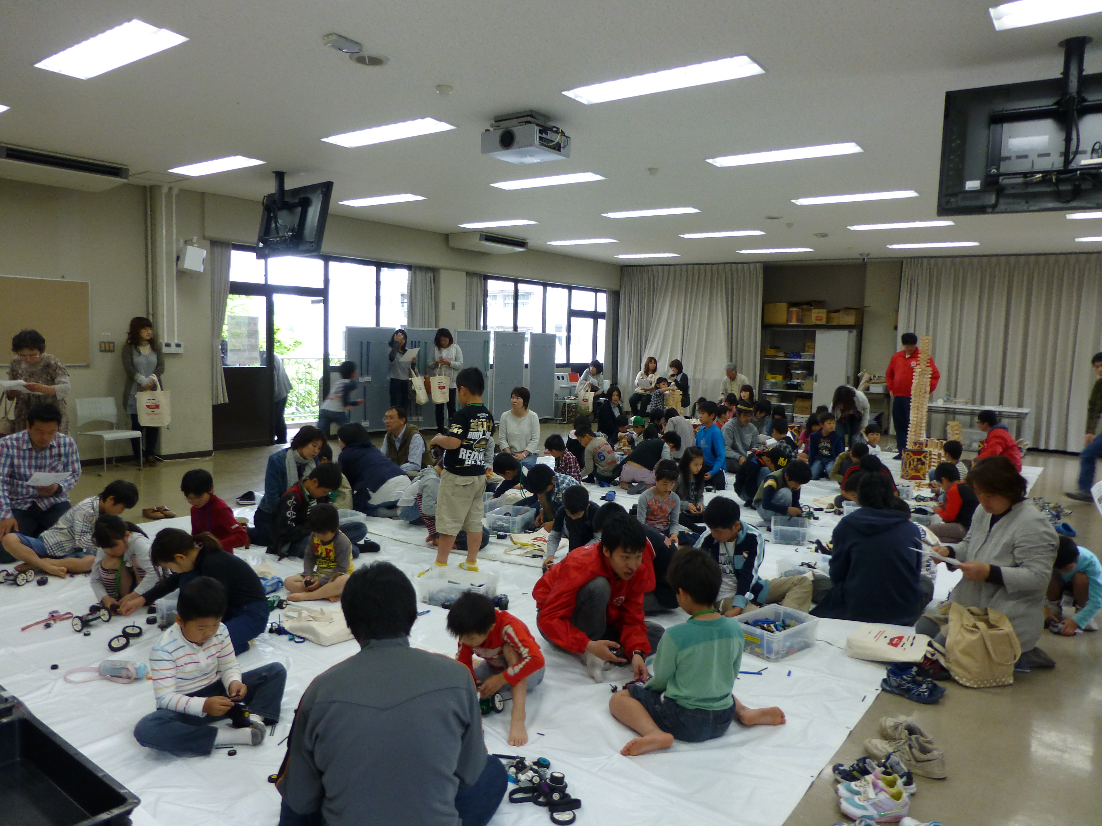 当日は大勢の子供達と保護者の方々が参加し、熱心にパーツを選びながらいろいろな形のロボットを製作し、リモコンを上手に操作して走らせました。また、基本のスパイボットの他に、高学年向けの「リモコンクラス」を設置し、このクラスの参加者は更に多彩な動作のロボット作りに励んでいました。