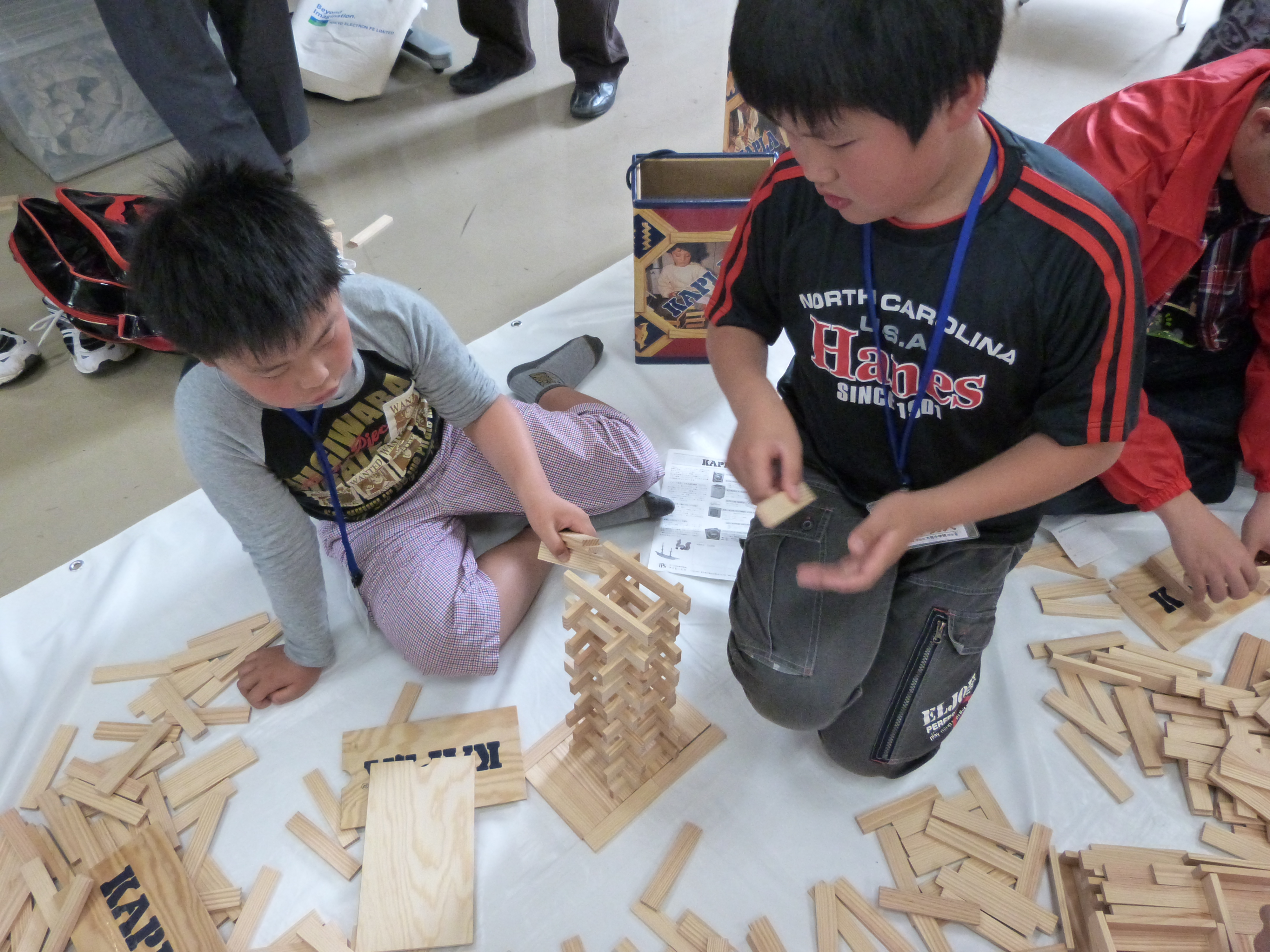 ロボット作りと並行して用意されていた造形ブロック「カプラ」コーナーも人気で、ブロックを背丈よりも高く積み上げたり、好みの造形を楽しんでいました。
