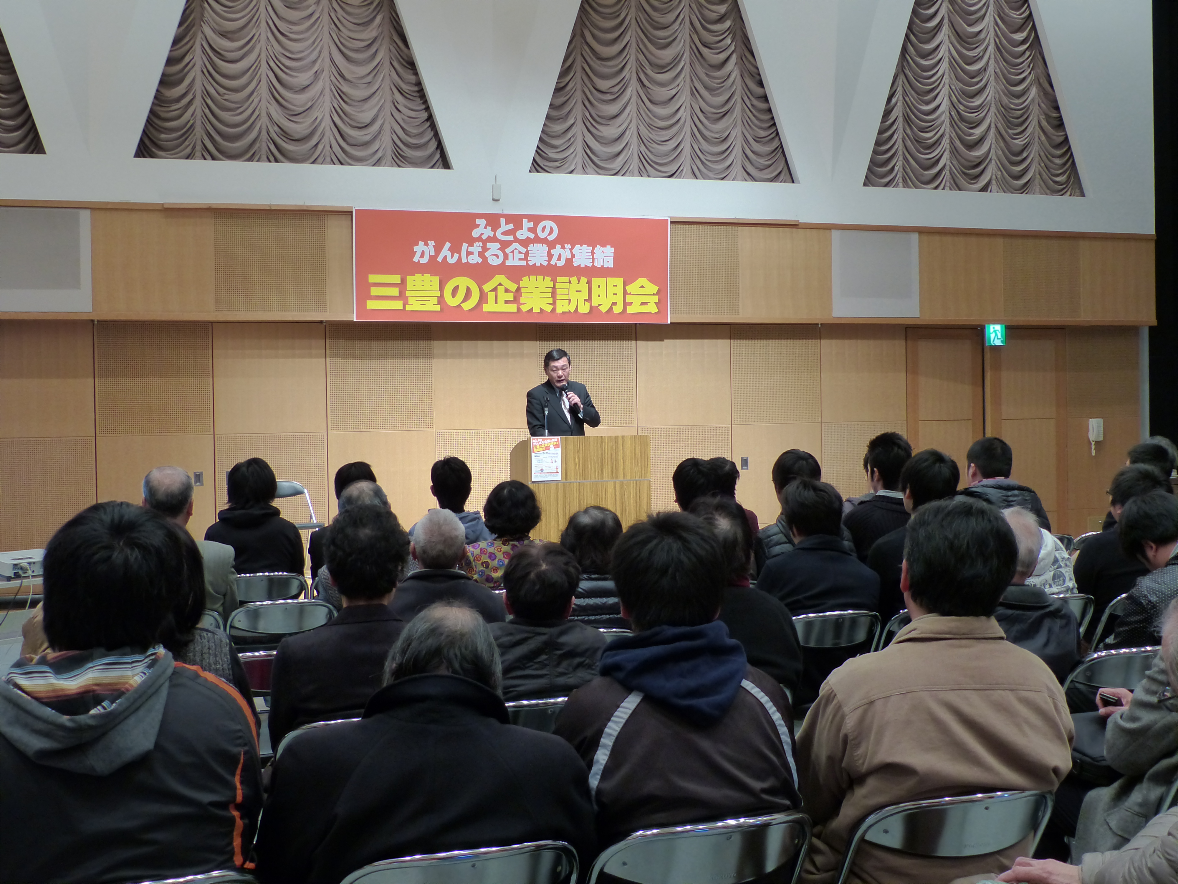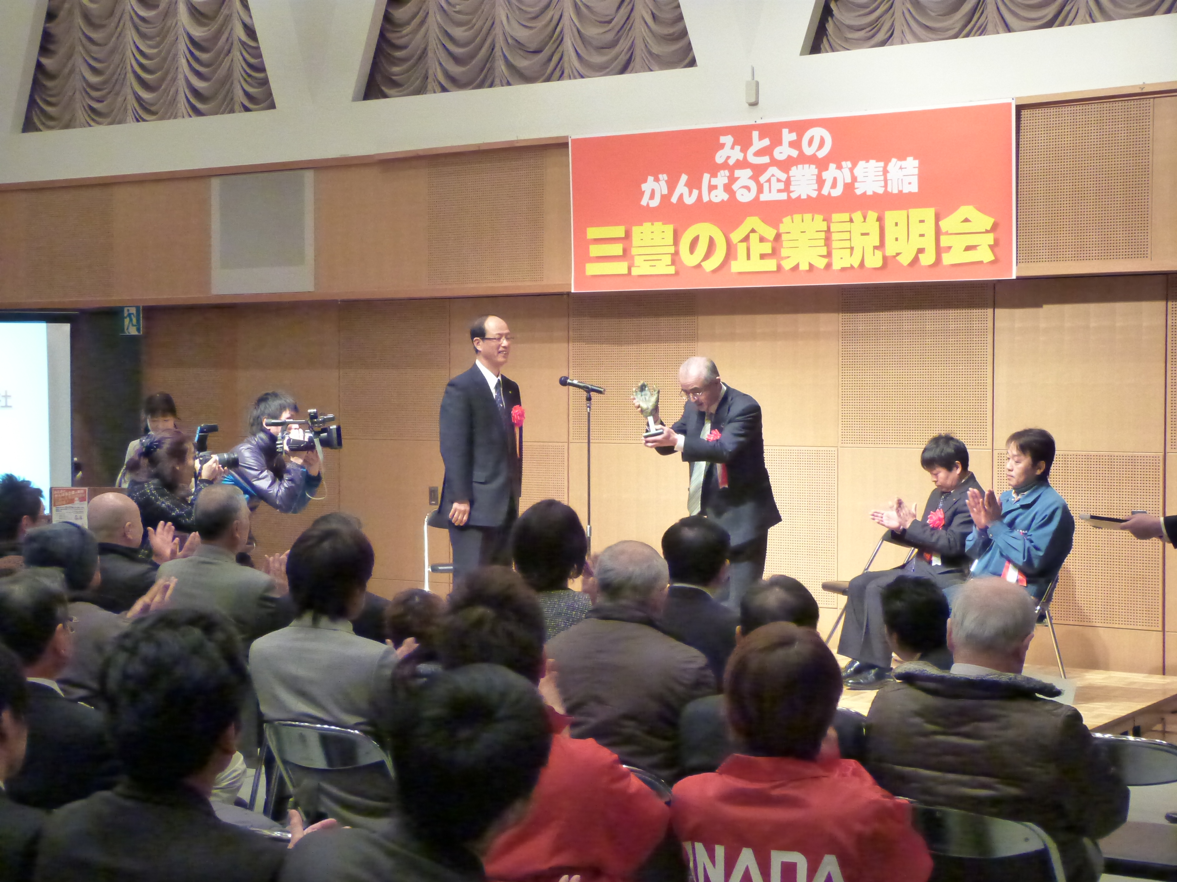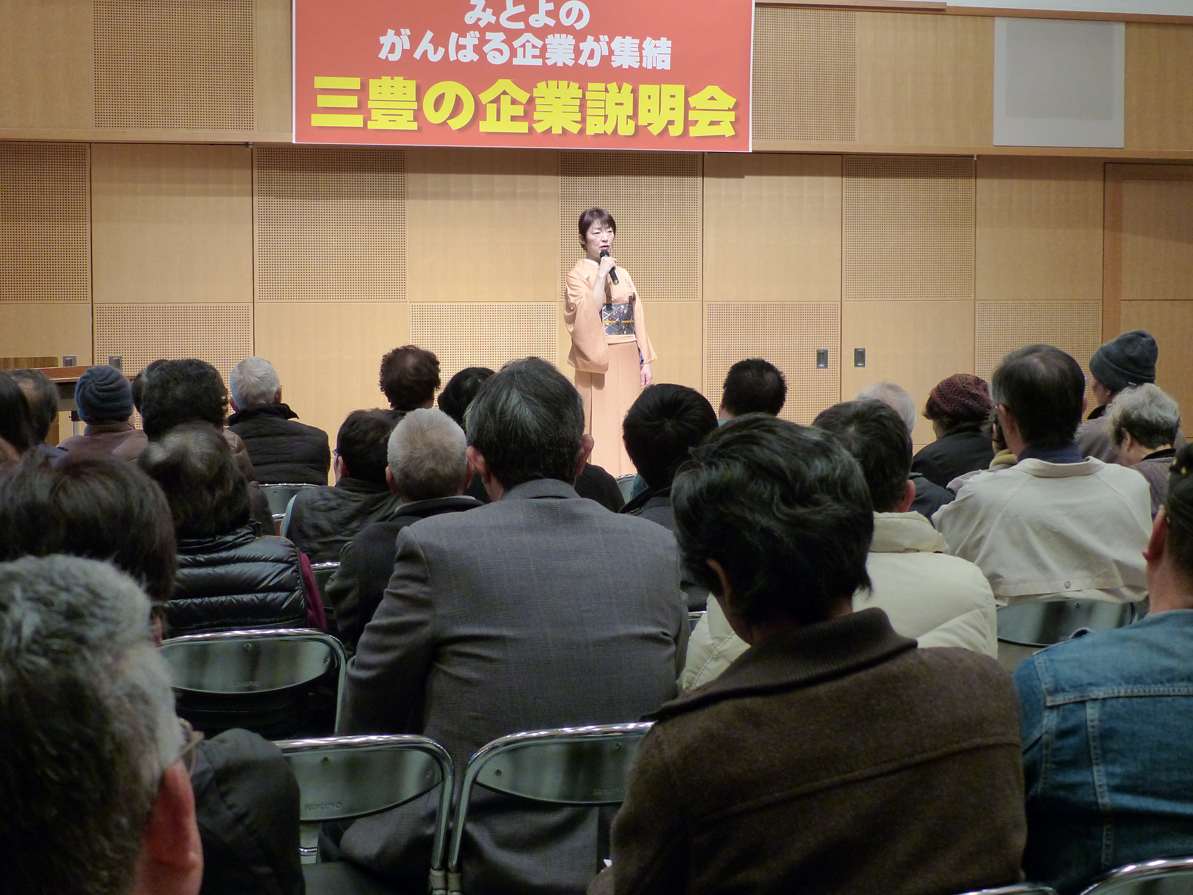 みとよのがんばる企業による企業説明会 2013/02/23 2013年2月23日(土) 三豊市文化会館マリンウェーブ 「みとよのがんばる企業による企業説明会」 オープニング 三豊市ものづくり大賞授与式 産業振興講演会第1部「転んでもただ起きない+α思考」 産業振興講演会第2部「未来の技術者たちへ」 企業説明会 みとよマルシェ