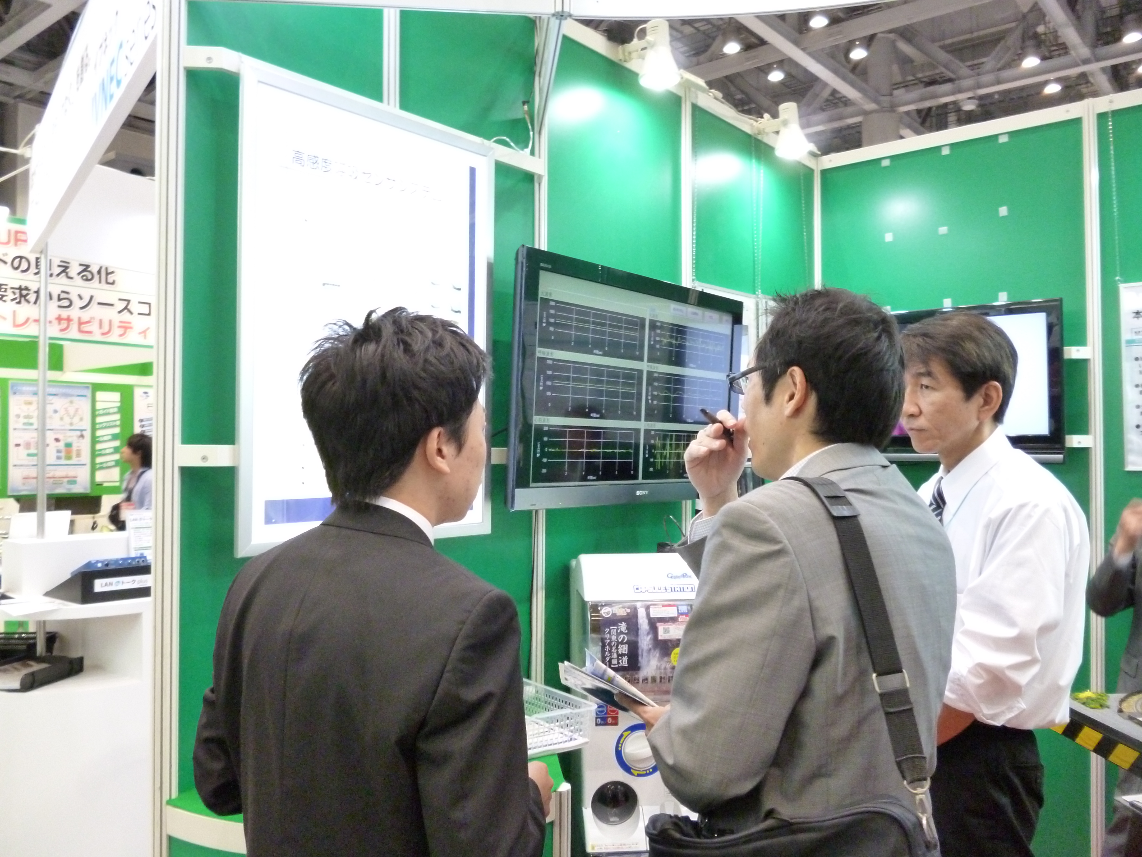 詫間キャンパス三崎研究室で開発された高感度呼吸センサは、㈱コーデックのM2M通信技術との組み合わせによる共同研究を行っており、新しいセンサ応用を考えている企業、高感度呼吸計測による応用を考えている企業に興味を持って頂き、多くの情報交換ができました。