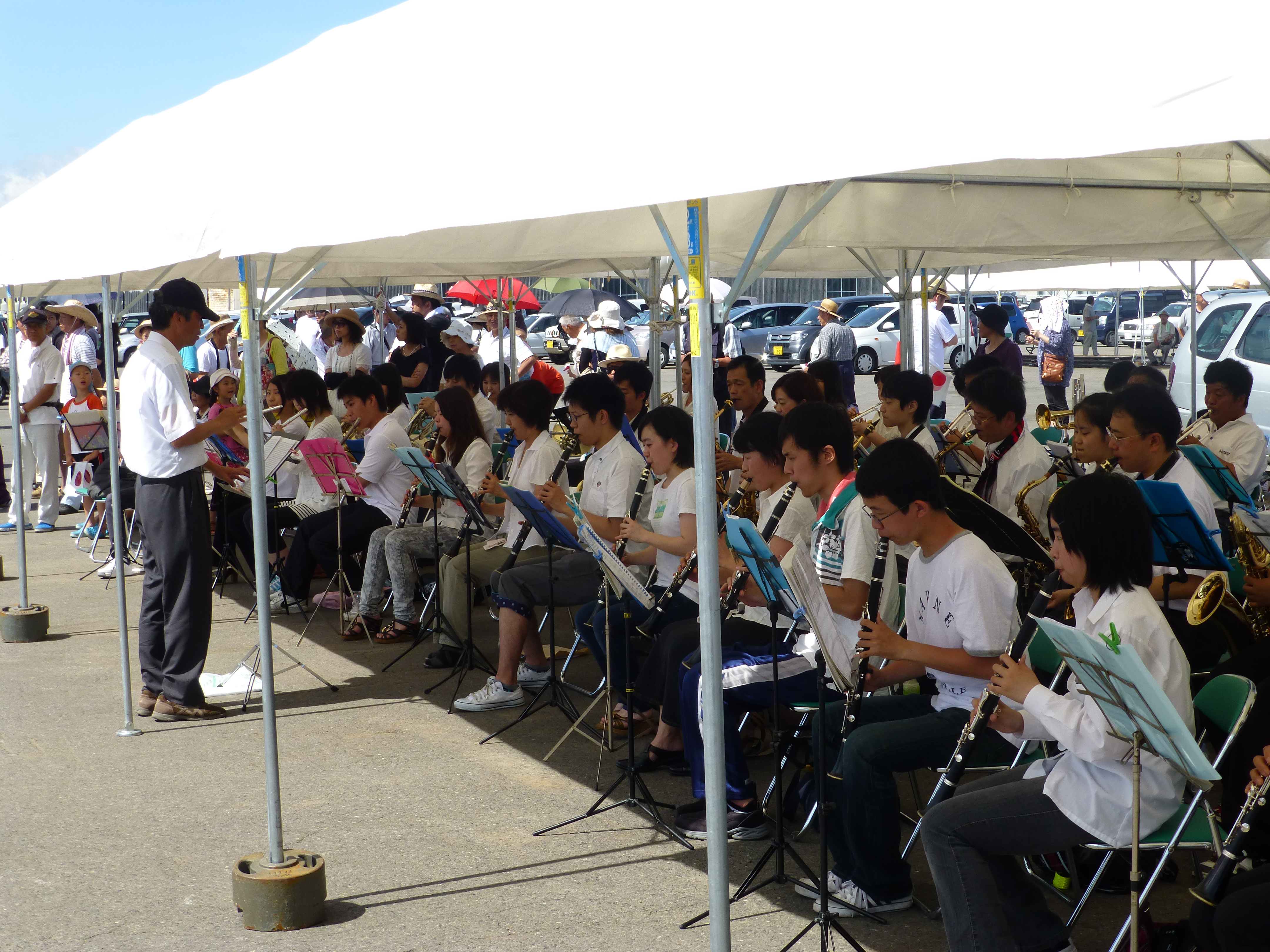 詫間キャンパス吹奏楽部と詫間町吹奏楽団は、のべ3日間、地元の人々を楽しませてくれた日本丸の出港を吹奏楽の演奏で見送りました。