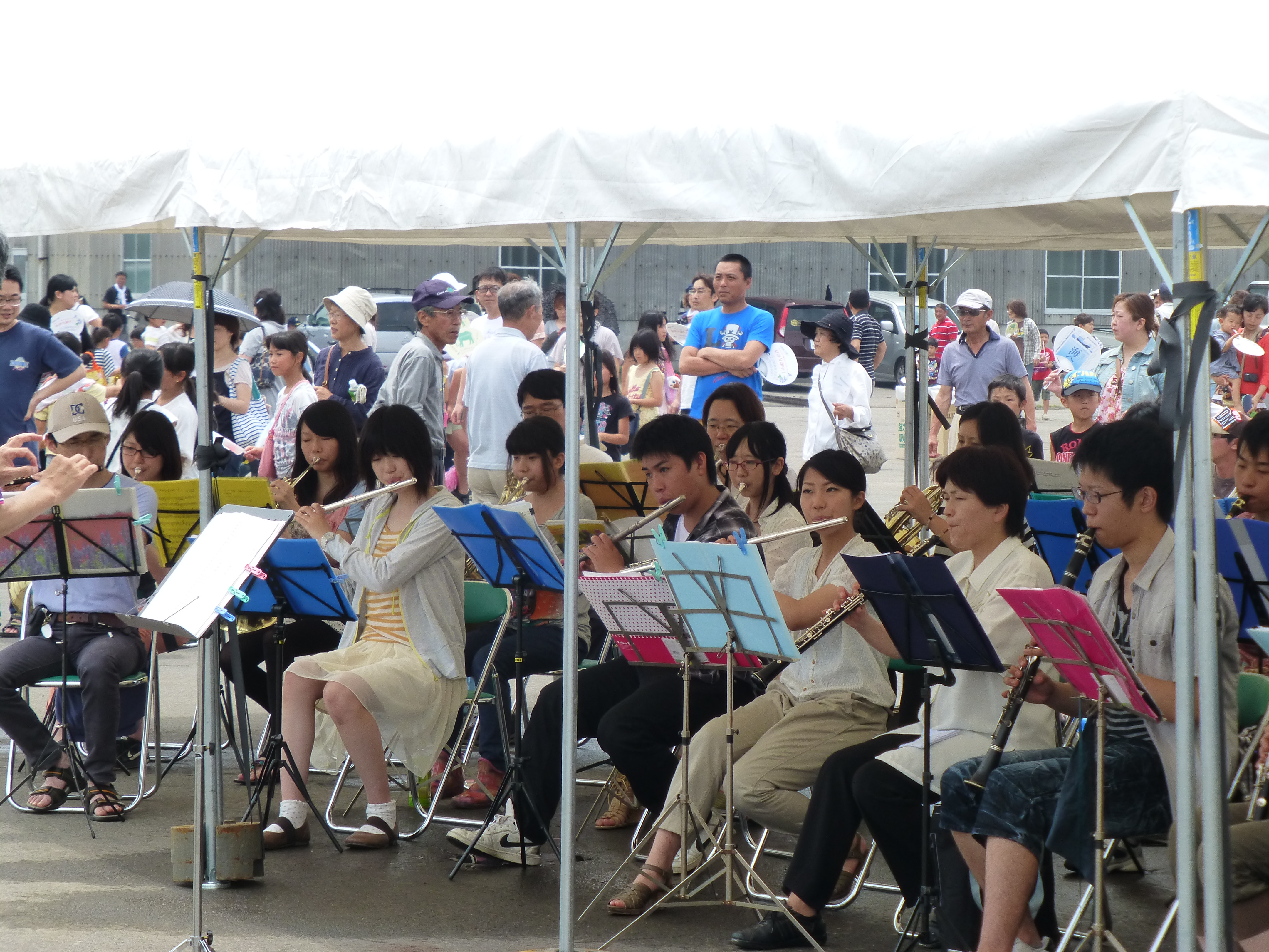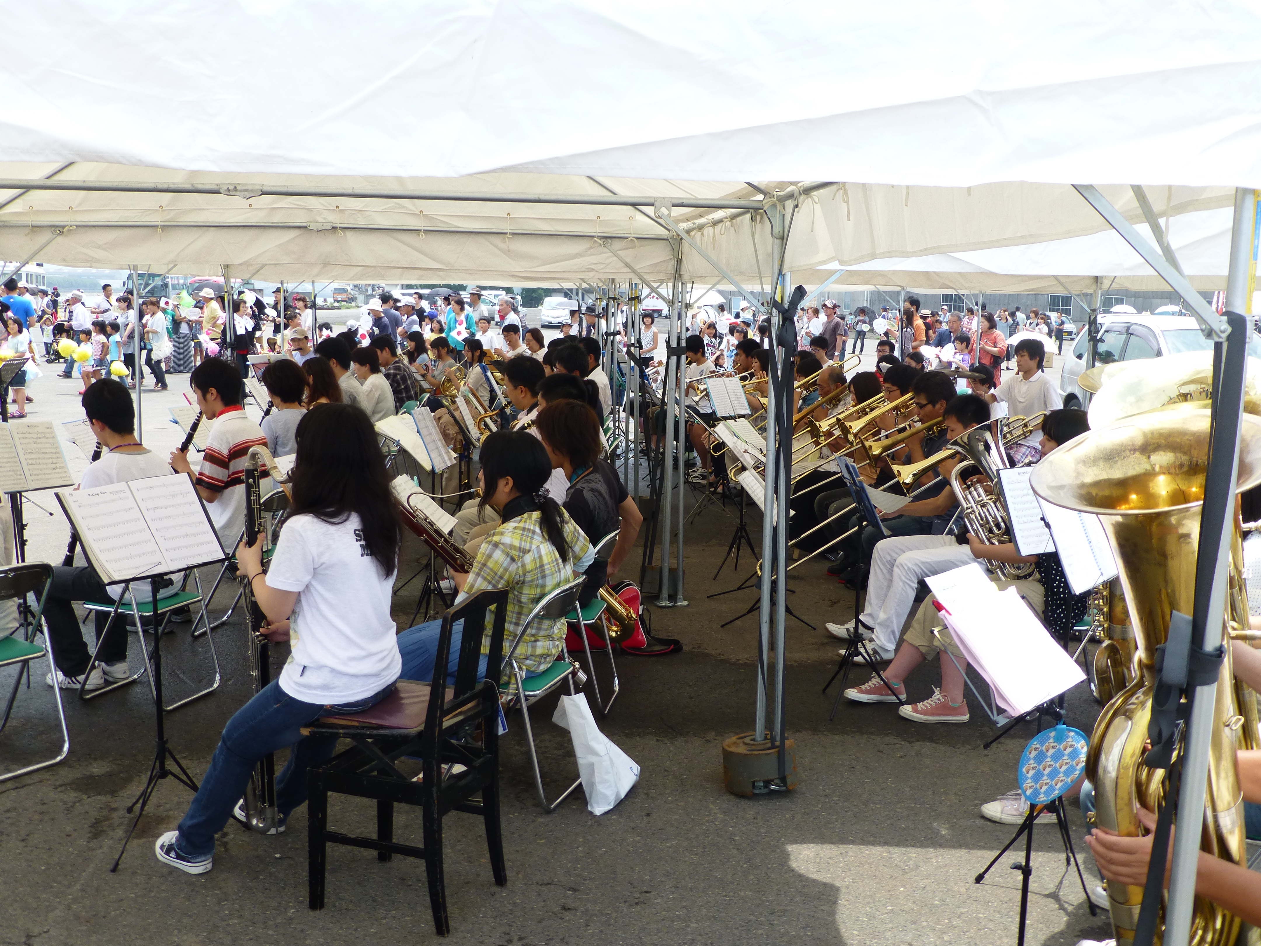 詫間キャンパス吹奏楽部は、詫間町吹奏楽団の方と一緒に歓迎演奏を行い、日本丸を出迎えました