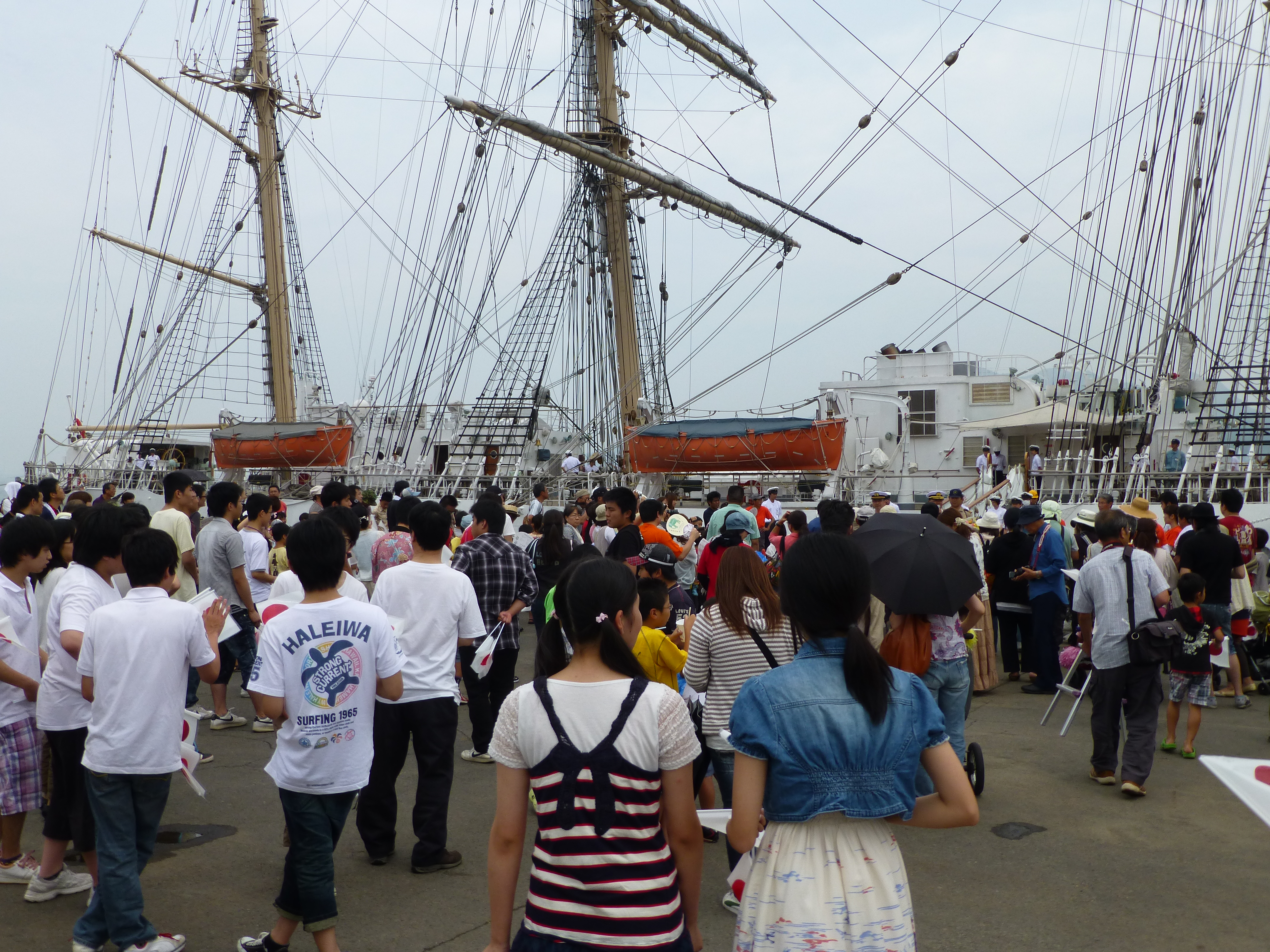 初めて三豊市に来た日本丸の勇壮な姿を一目見ようと、港はたくさんの人で賑わいました