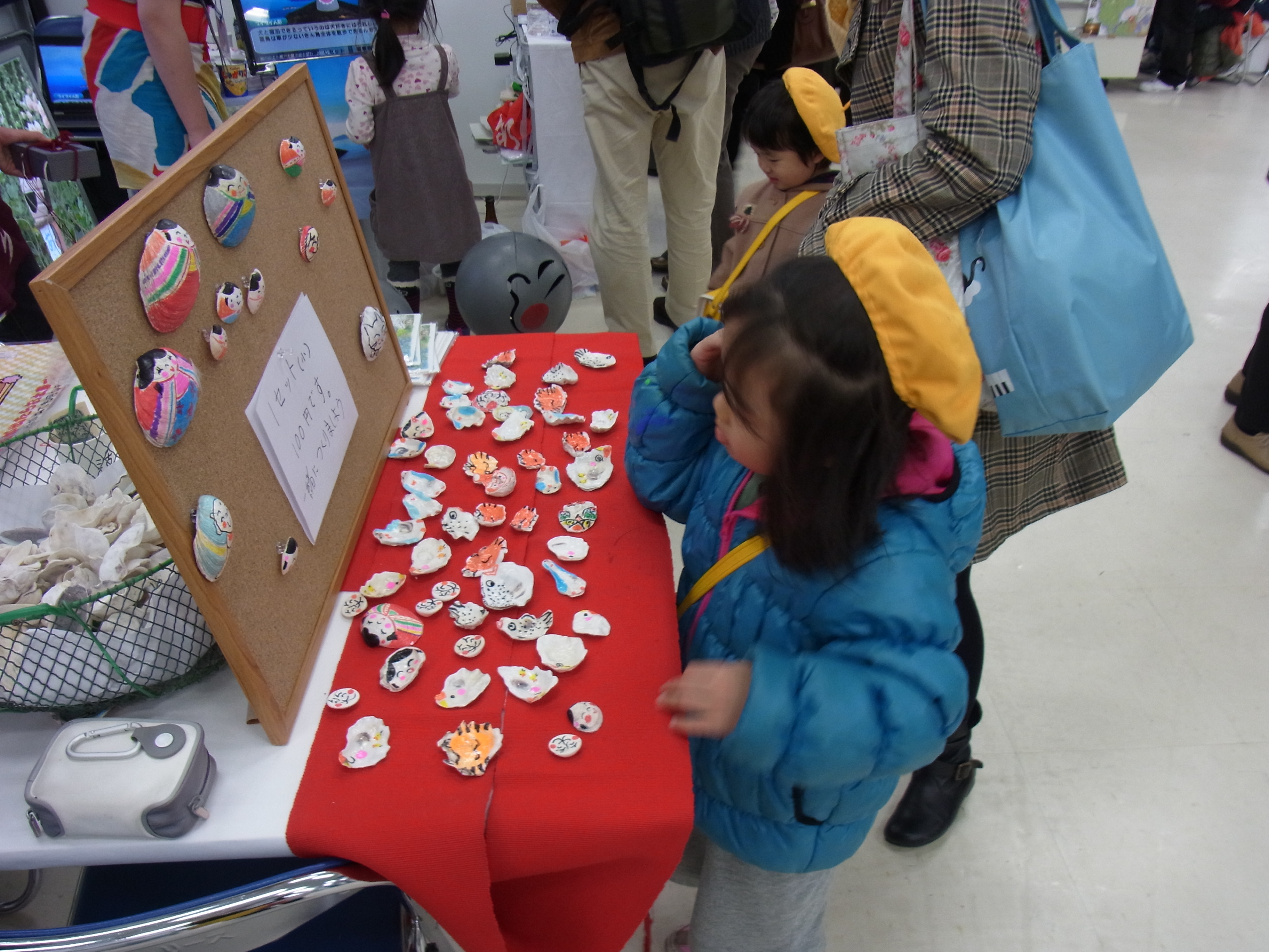 その他、島から持参した海ほたるを見たり、記念写真を撮影してプレゼントするなどの楽しいコーナーを用意し、多くの方が足を止め、粟島の美しい風景の写真や映像に感動した様子でした。また、島の貝に絵を描くワークショップでは、参加者が好みの貝に絵を描いて世界に一つだけの作品を作り、記念に持ち帰っていました。