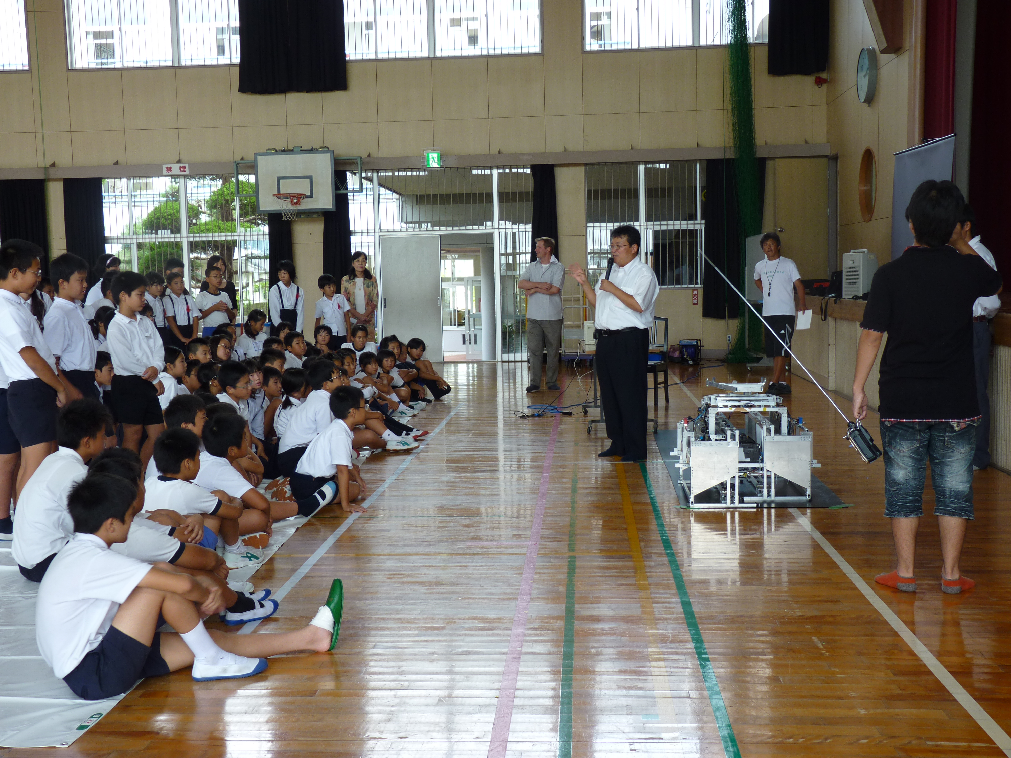 ロボット教室の説明後は「サイクロン」の実演を行い、操縦体験をしてもらいました