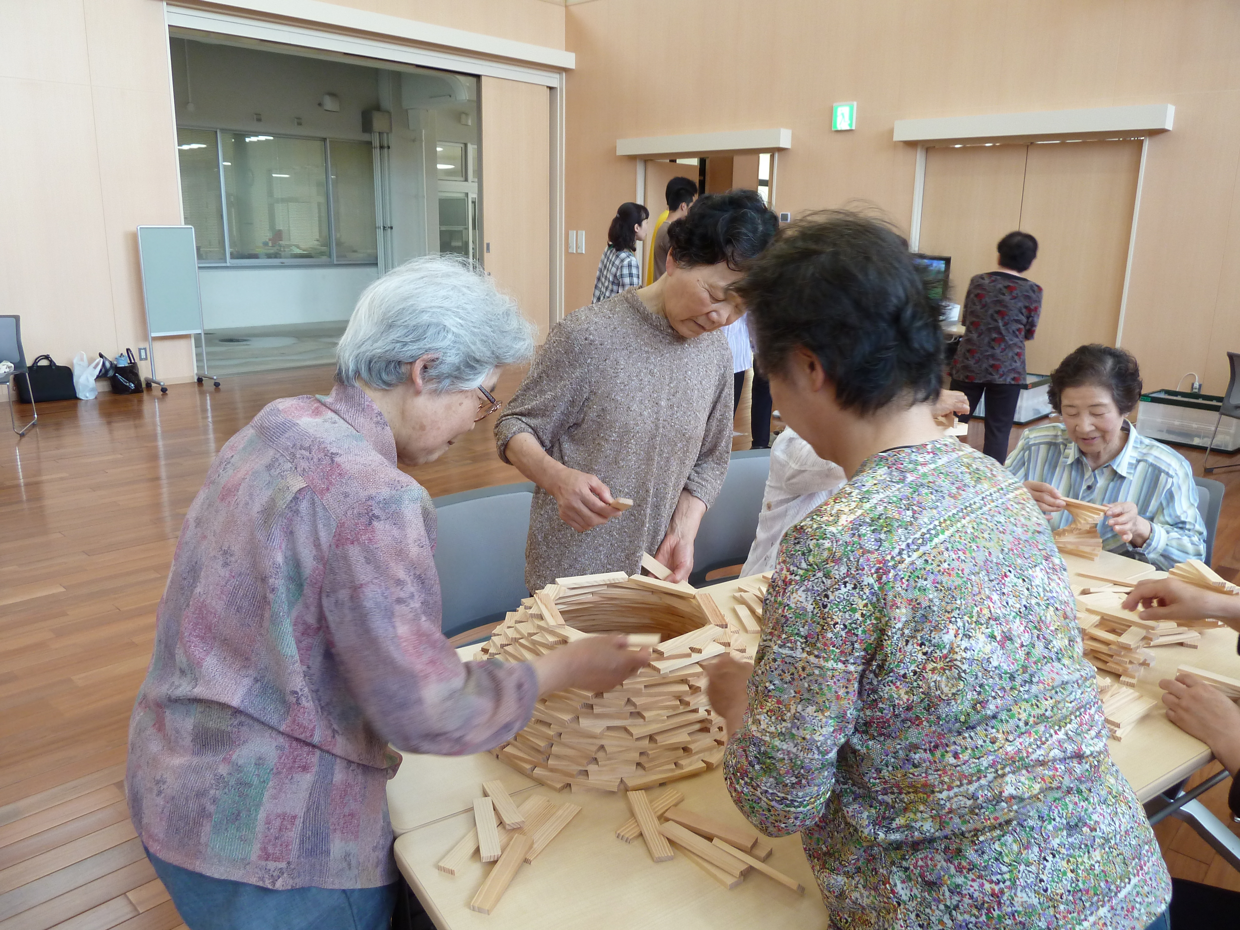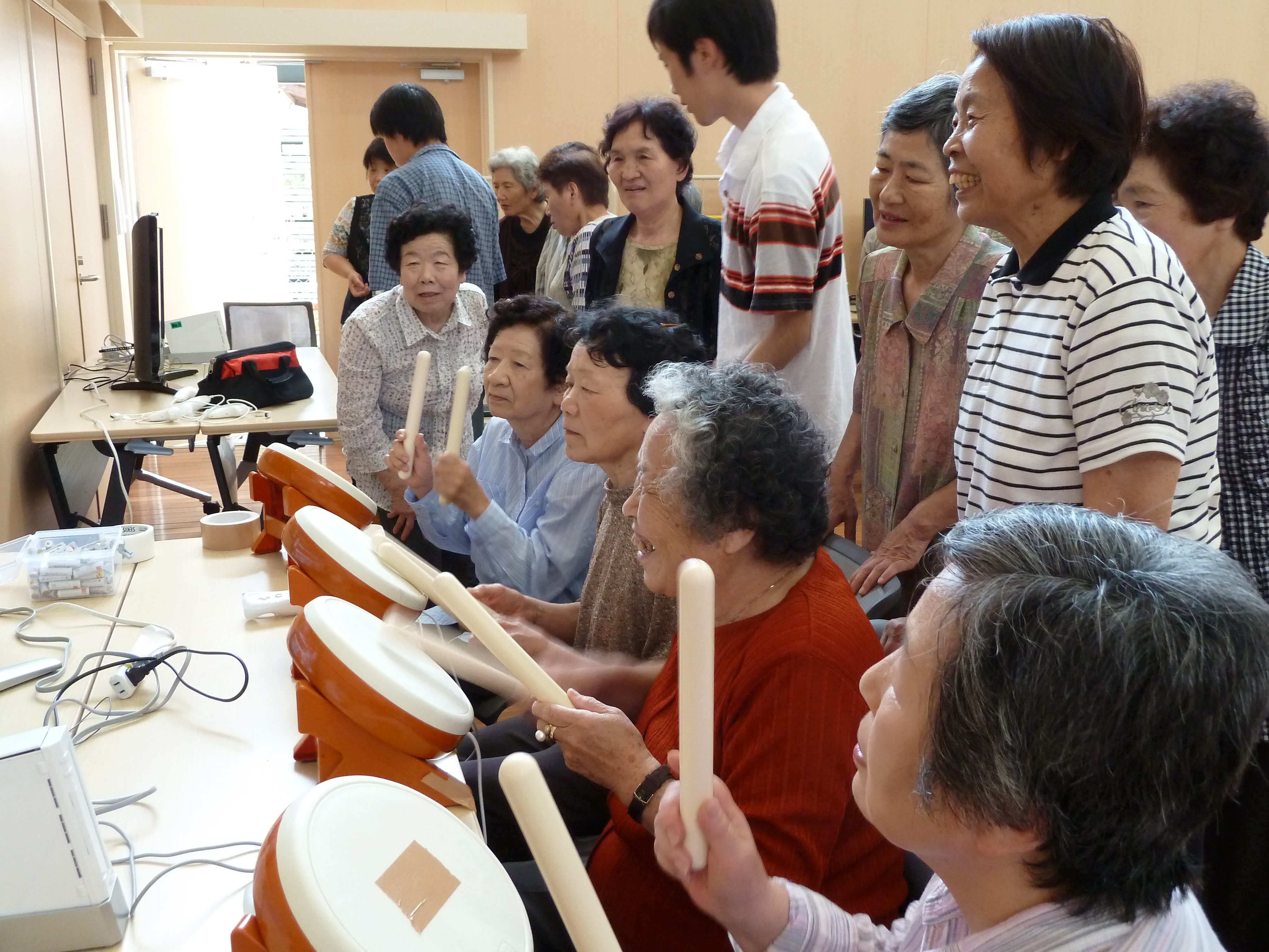 その後、「Wii」と「PS3」を使った簡単なゲームや、木のブロック「カプラ」を体験しました。会話をしたり、大きな声を出して笑う、考えて手足を動かす、目標に向かって根気よく続ける。これらの行動一つ一つが元気を保つ為に大切です。参加した方々は大きな歓声を上げながら、様々なゲームを楽しんでいました。