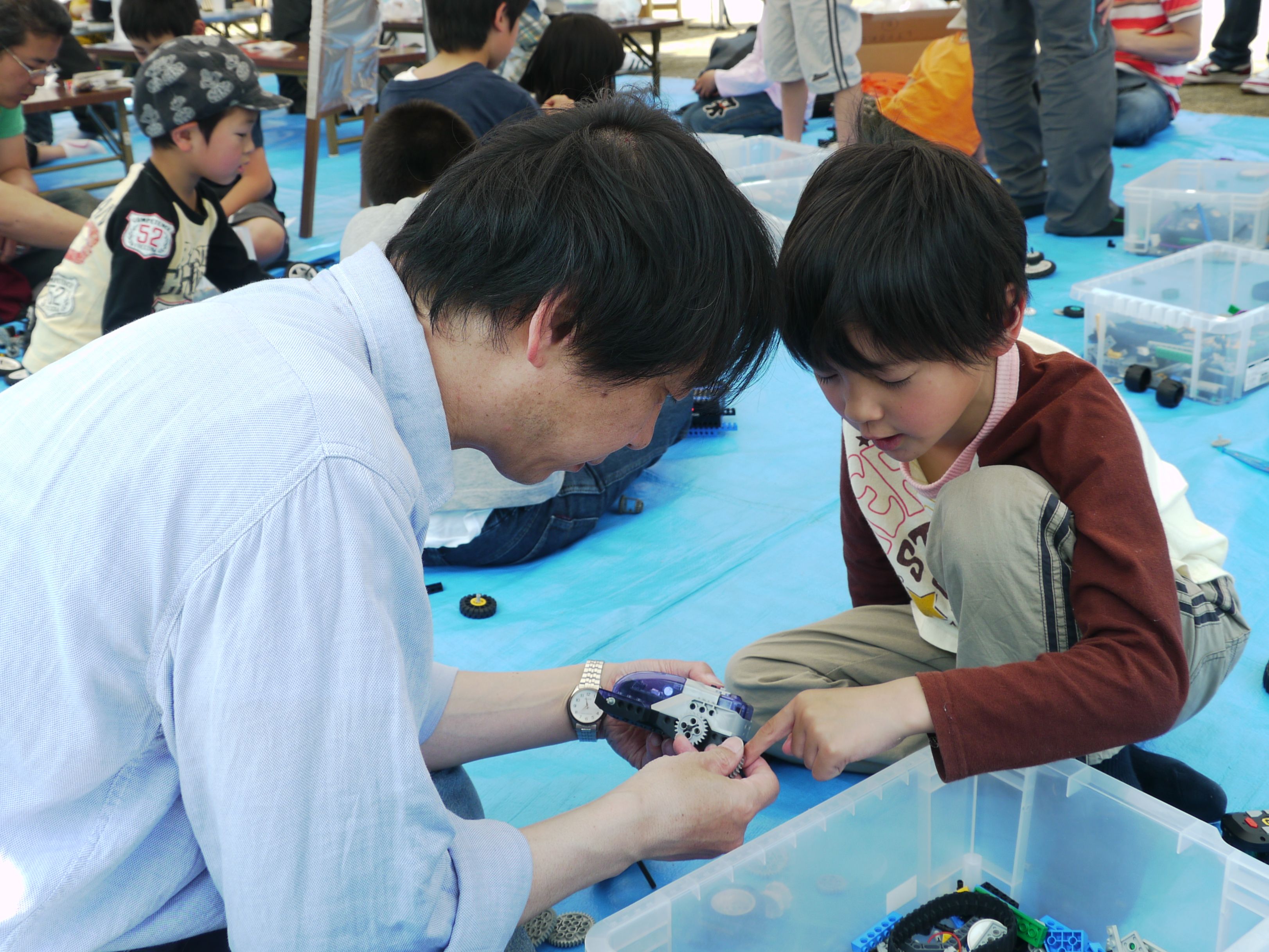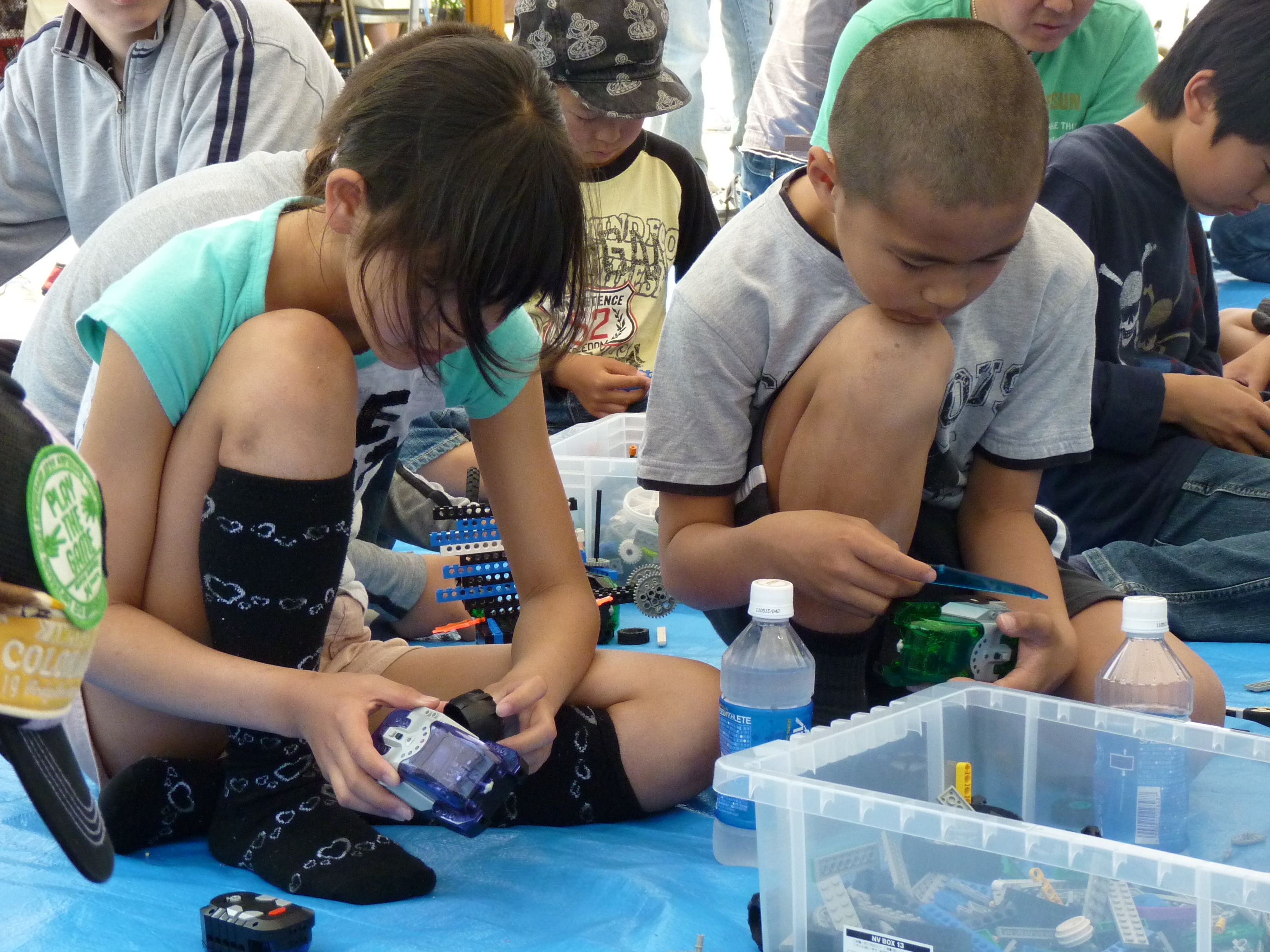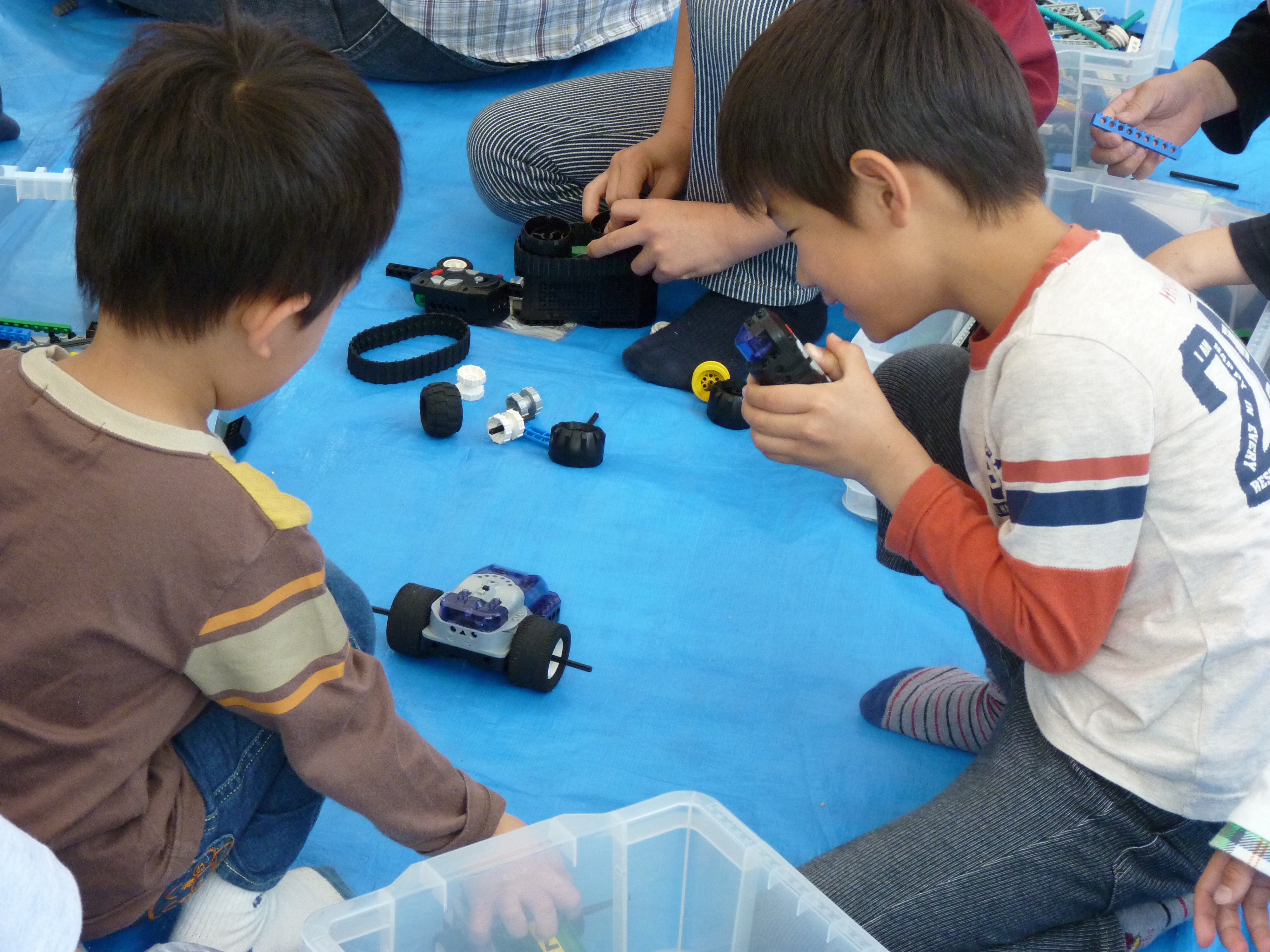 たくさんの部品を組み合わせて自分だけのオリジナルロボット作りに熱中しています