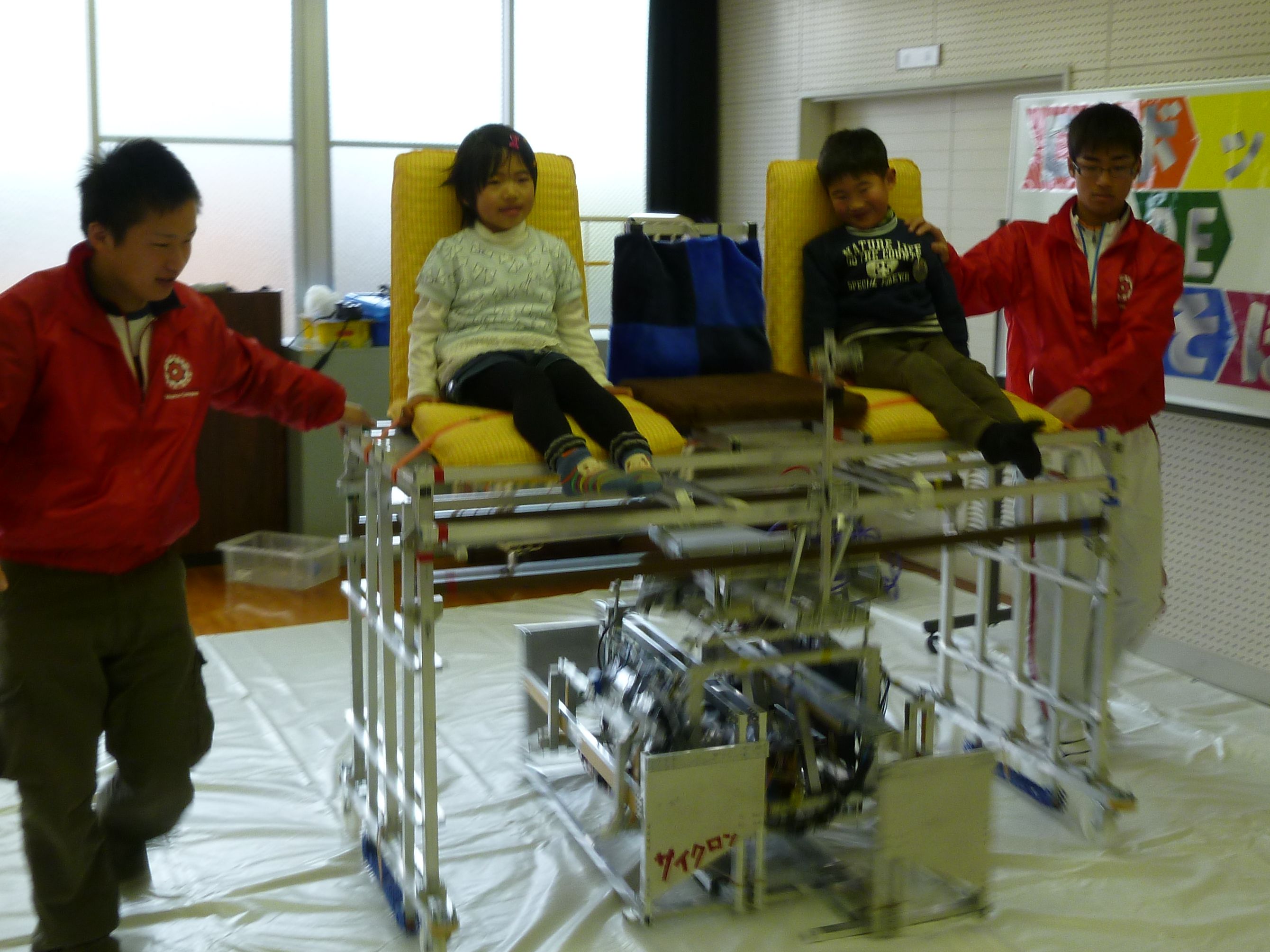 「サイクロン」操縦体験では、ロボットの素早い動きに驚き、大喜びしていました。