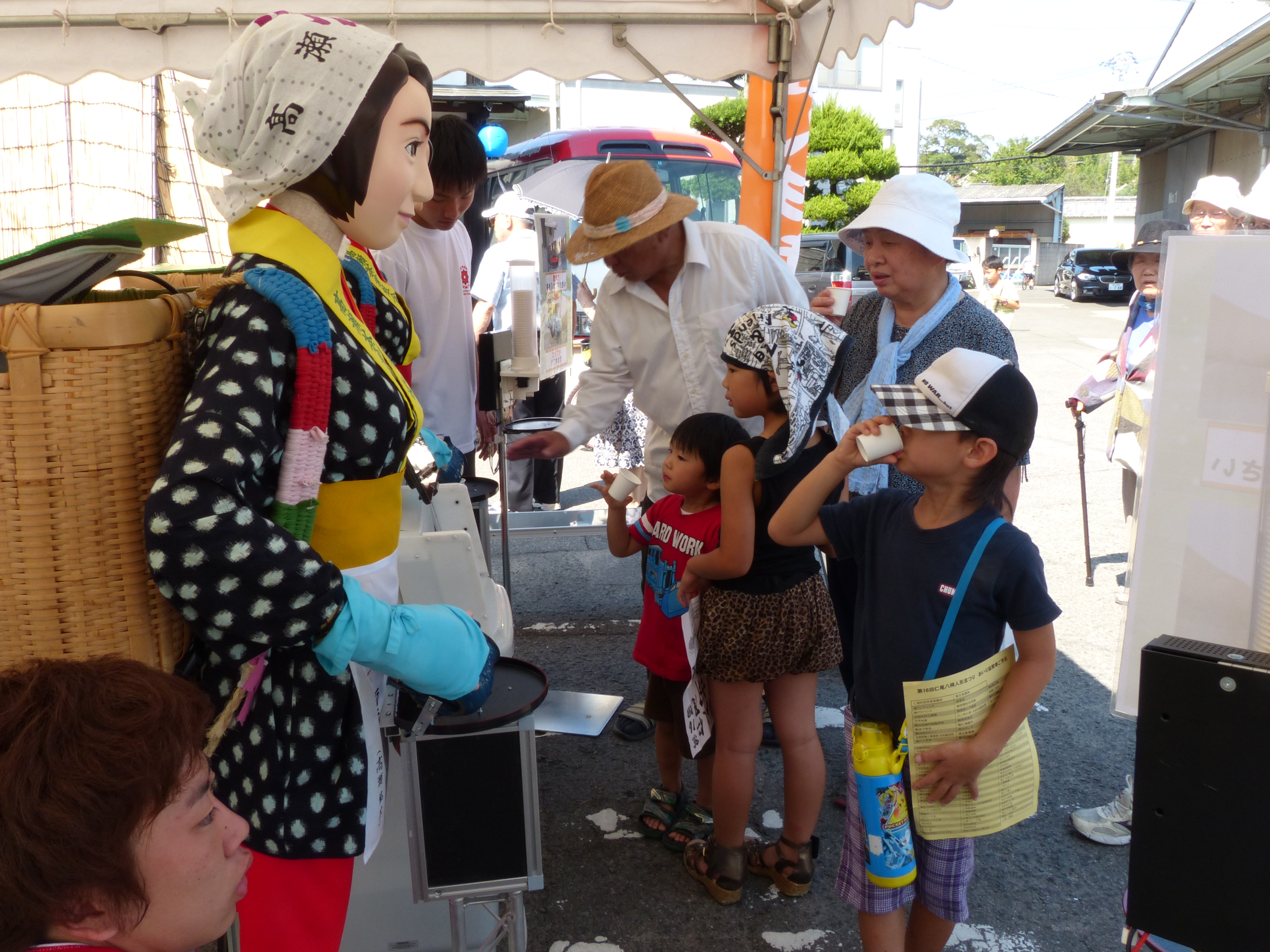 仁尾町文化会館周辺 第16回仁尾八朔人形まつり「みっちゃん・とよさんの冷茶サービス、お菓子販売」
