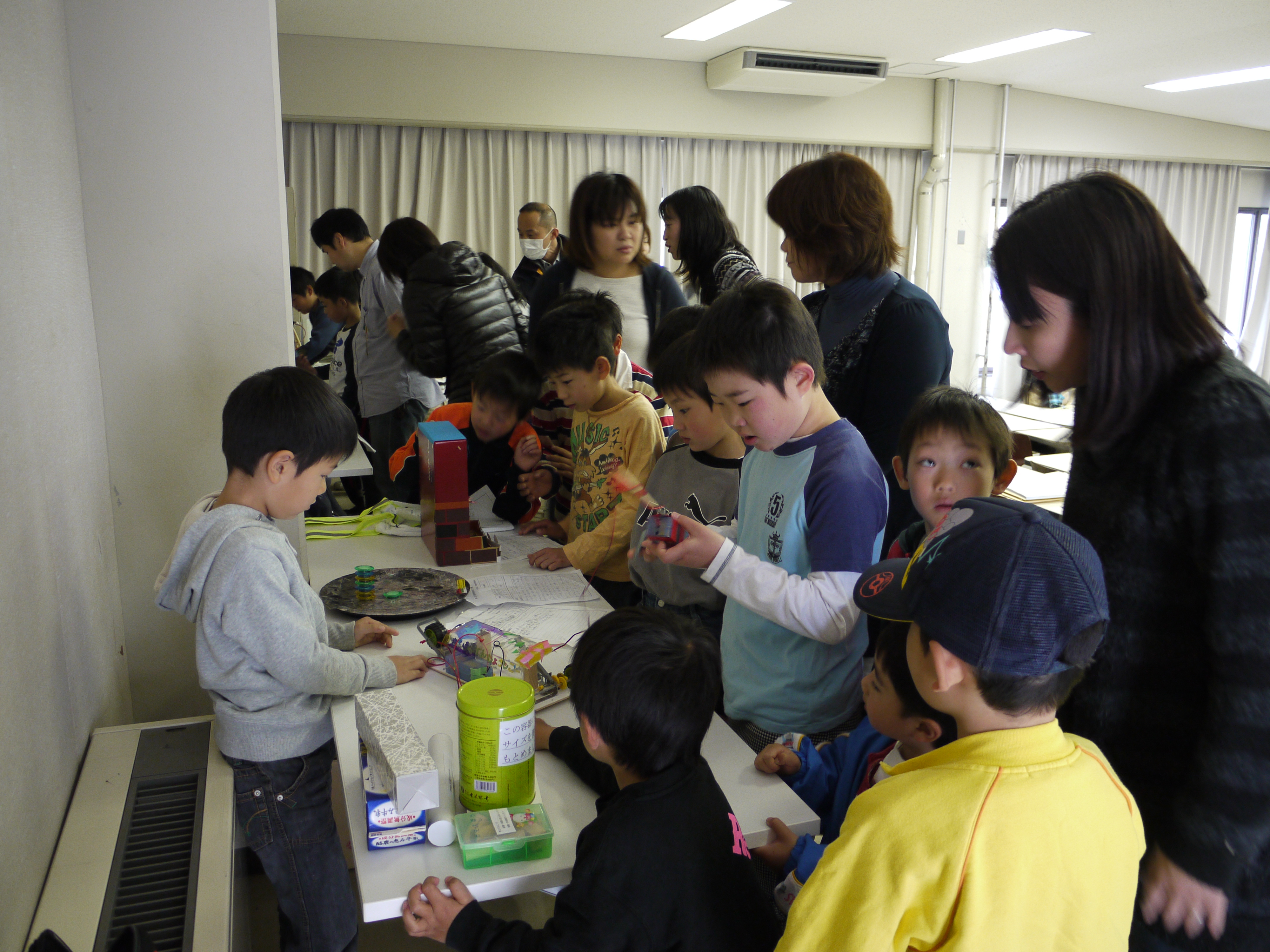 会場では昨年の高専ロボコン全国大会出場ロボット「Cyclone(サイクロン)」のロボット実演のほか、みとよ少年少女発明クラブの「平賀源内発明くふう展」の作品展示もありました。