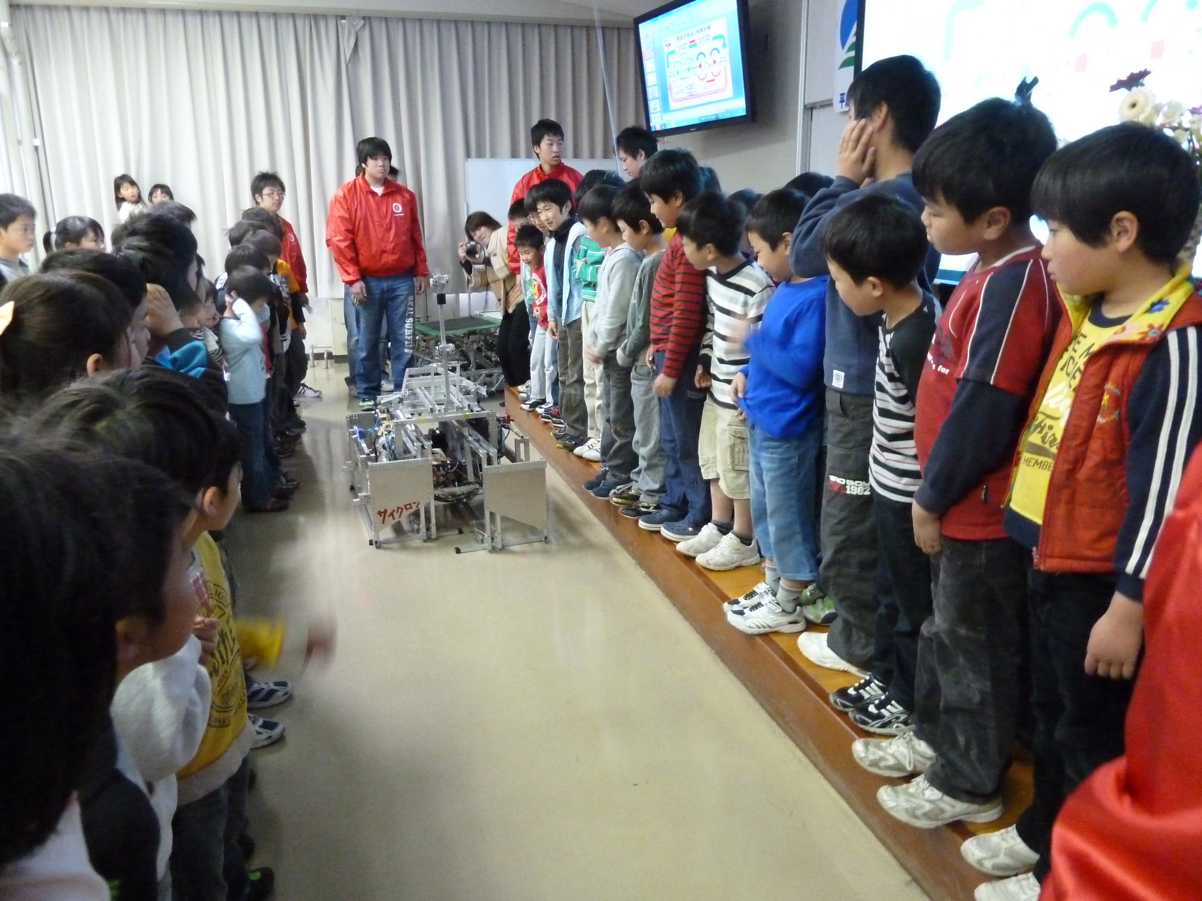 昨年の高専ロボコン全国大会出場ロボット「サイクロン」の実演をしました
