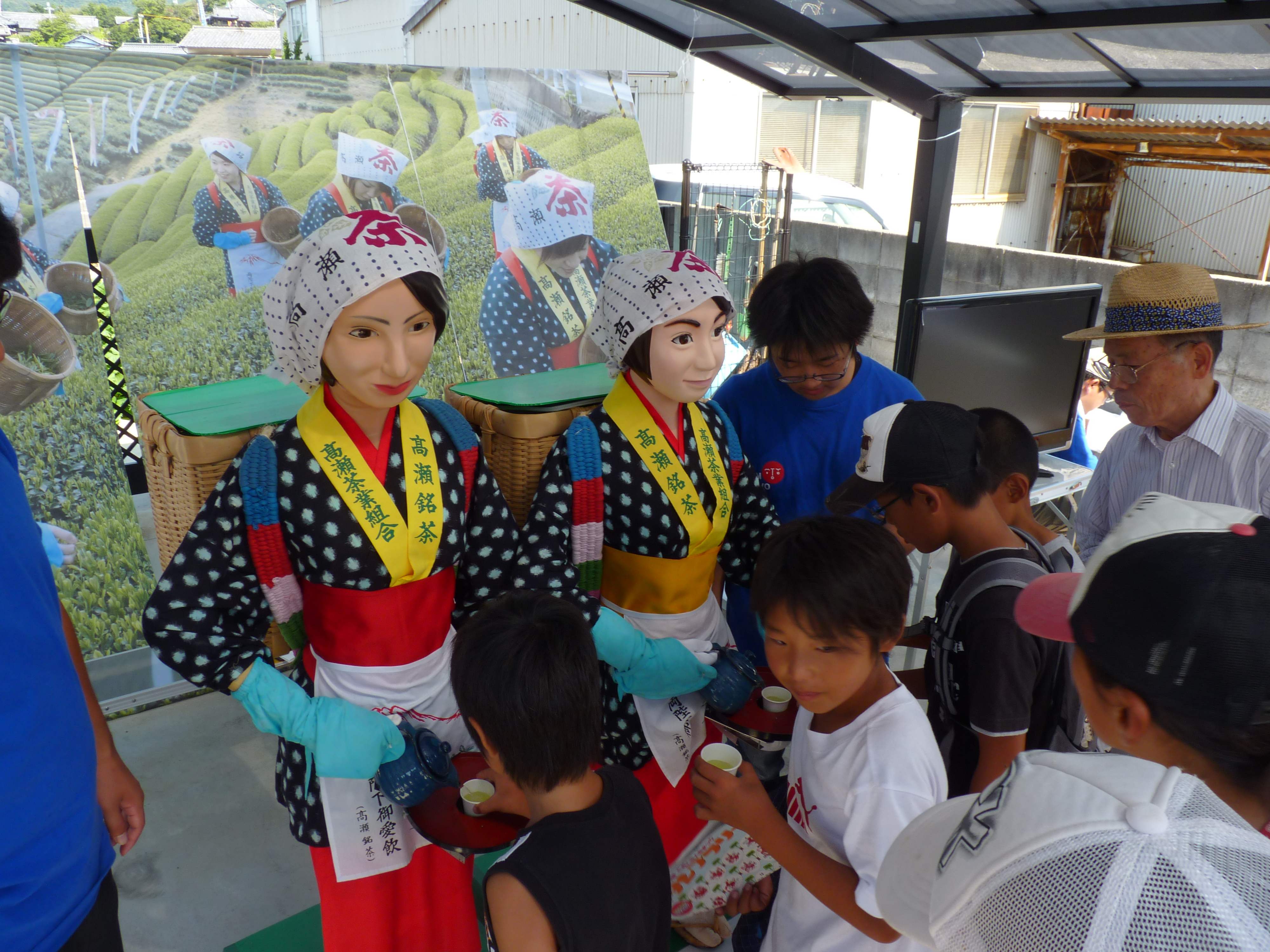 天候にも恵まれ、本校から持参したお茶娘ロボット「みっちゃん、とよさん」のお茶接待は終始行列のできる大好評ぶりでした。