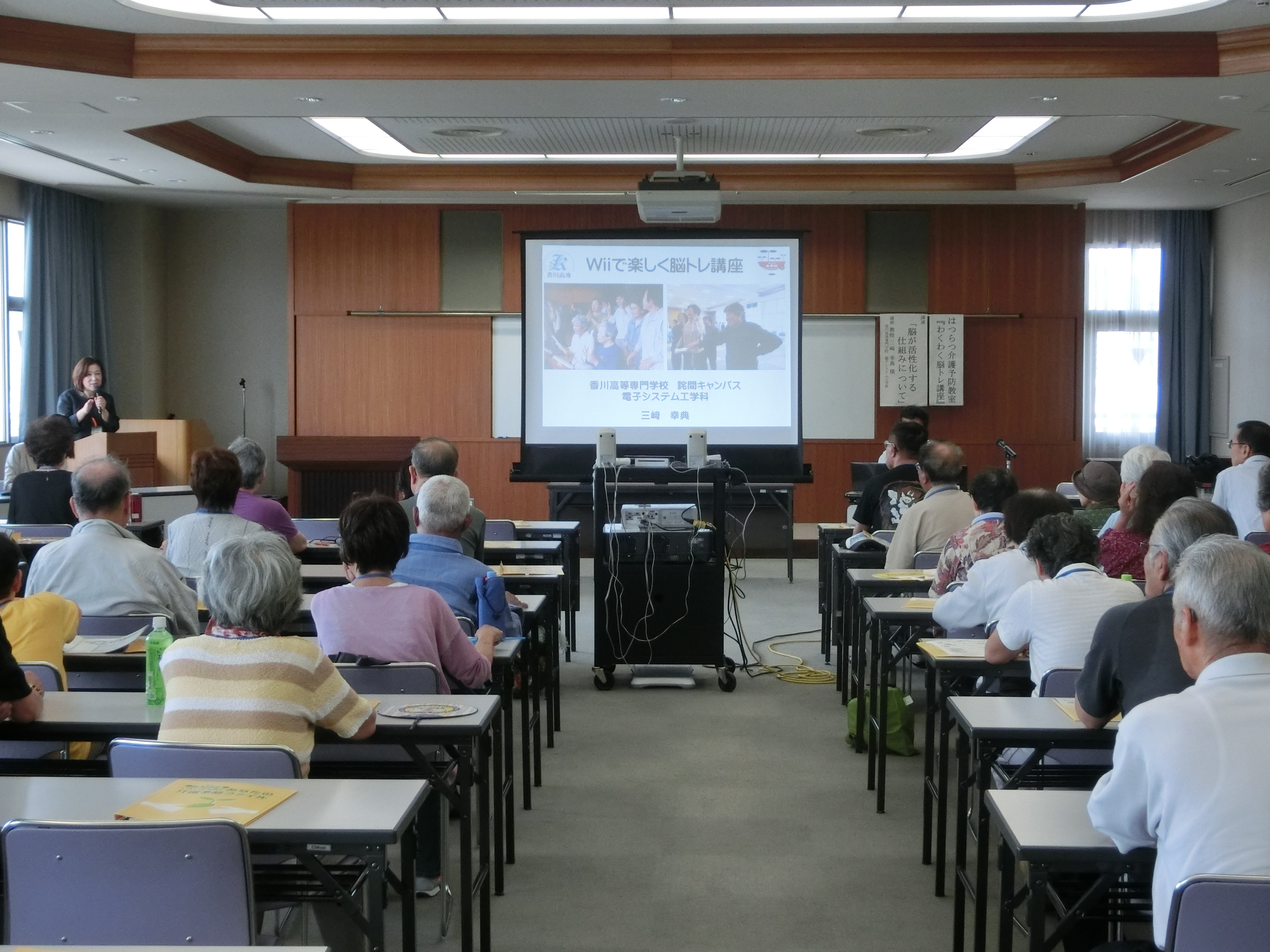 7月4日(金)高松市保健センター大研修室において、高松市地域包括支援センター主催の平成26年度はつらつ介護予防教室「わくわく脳トレ講座①」が開催されました。この講座は高松市内のお元気な65歳以上の希望者を対象に、生活や健康状態を振り返りながら元気な身体を保つことを目的に開催されています。詫間キャンパスでは、過去に三豊市と連携して介護予防講座「脳きらり教室」を開催しており、今回高松市から初めて依頼を受けて実施の運びとなりました。