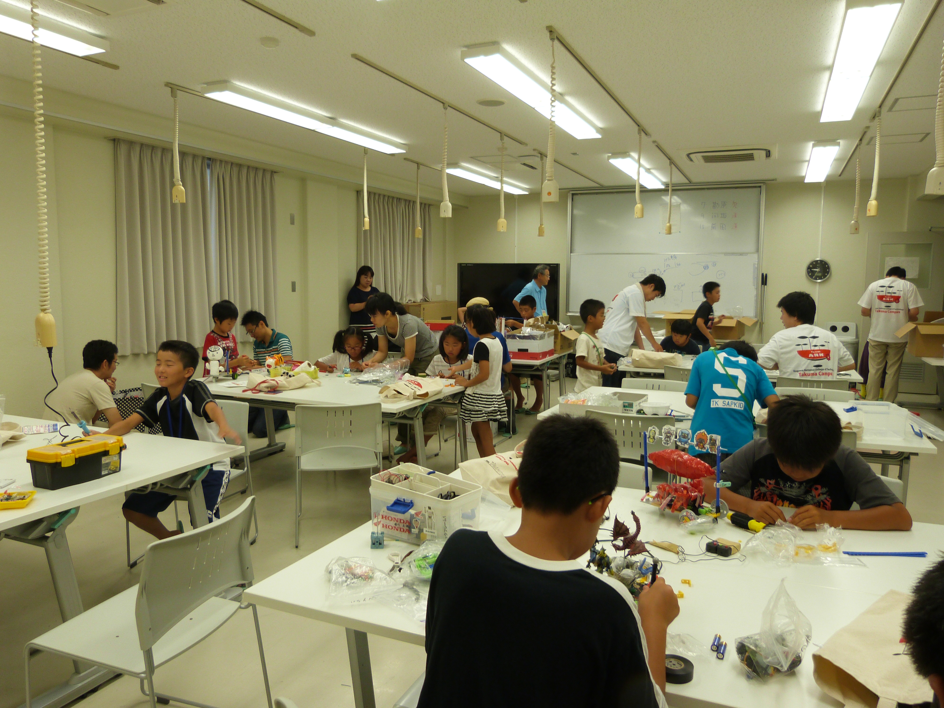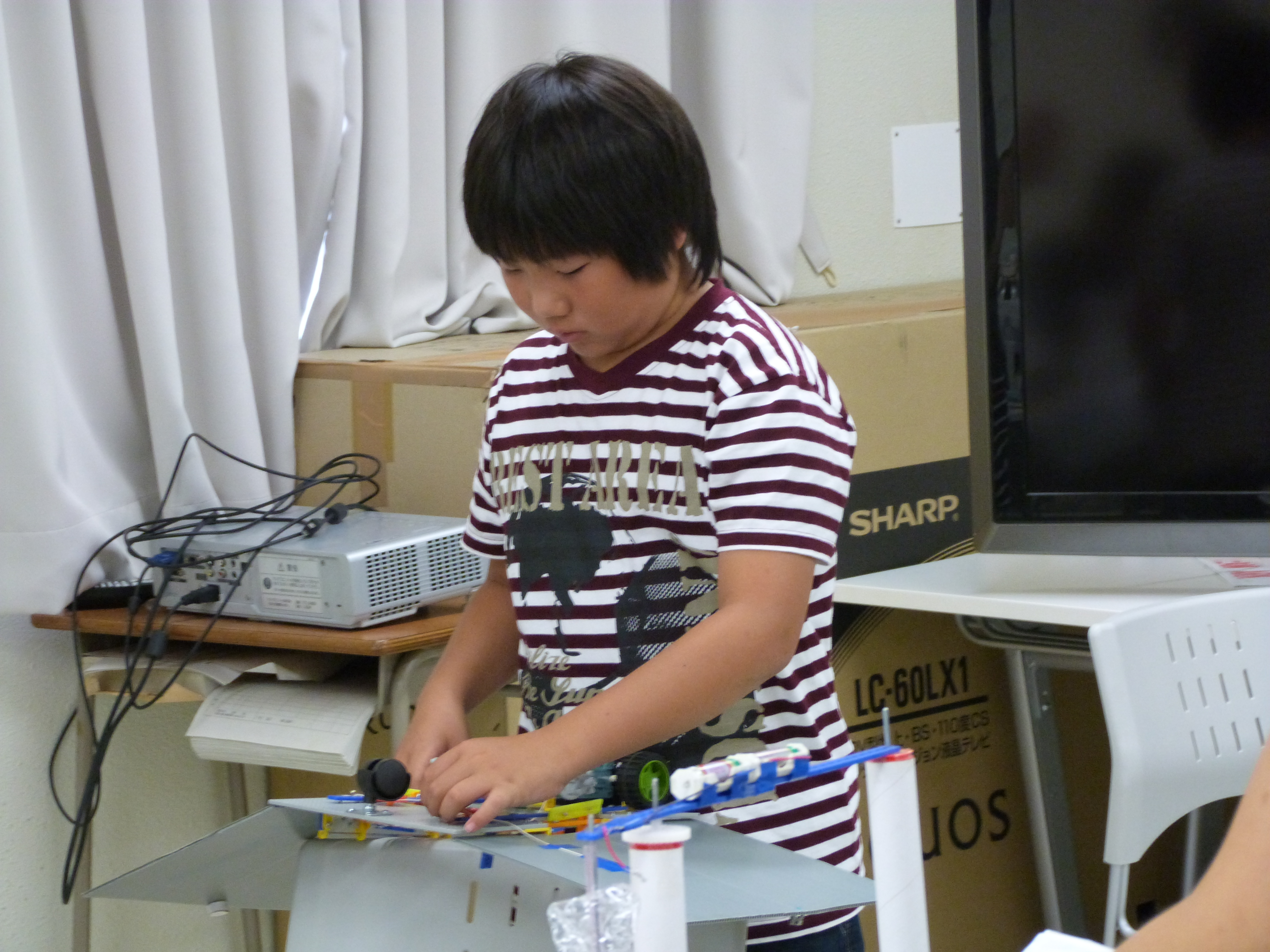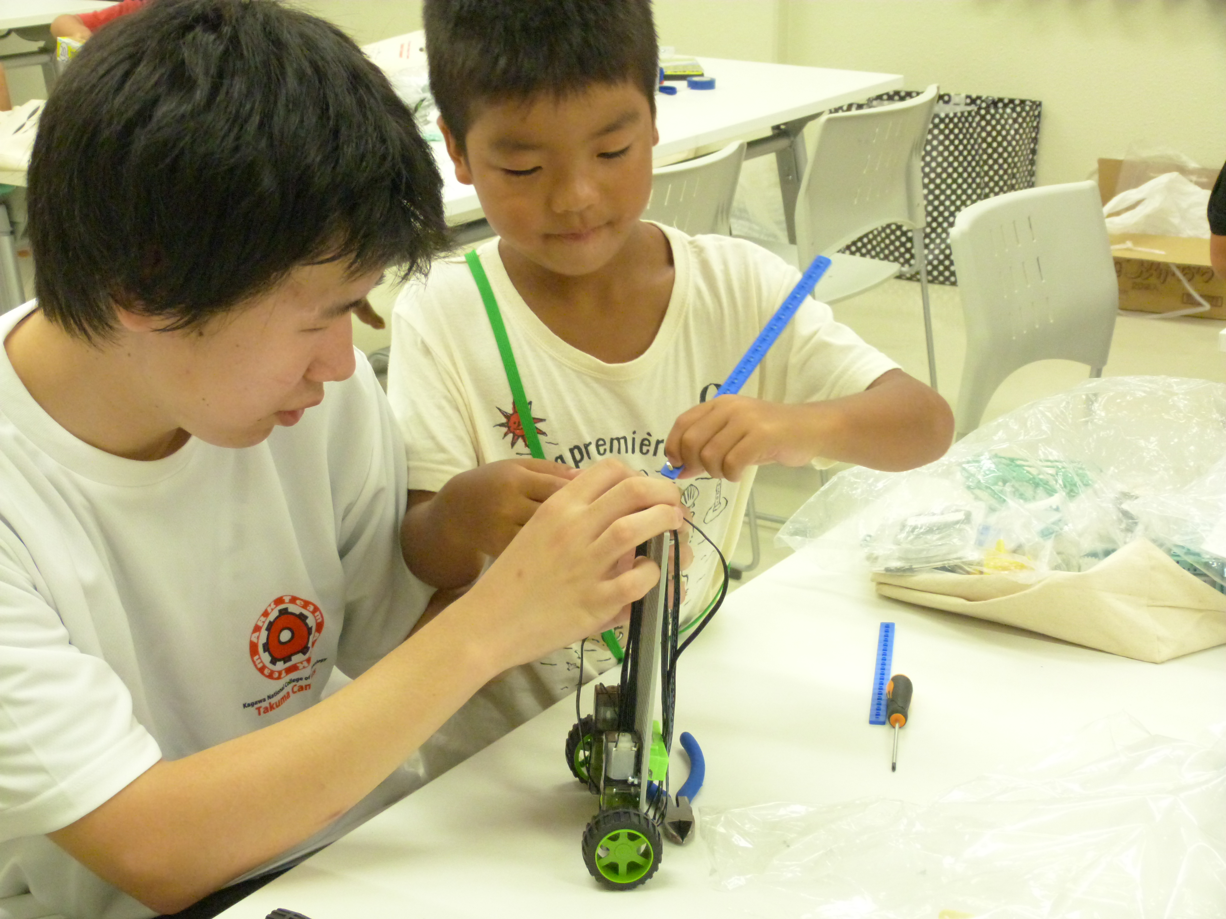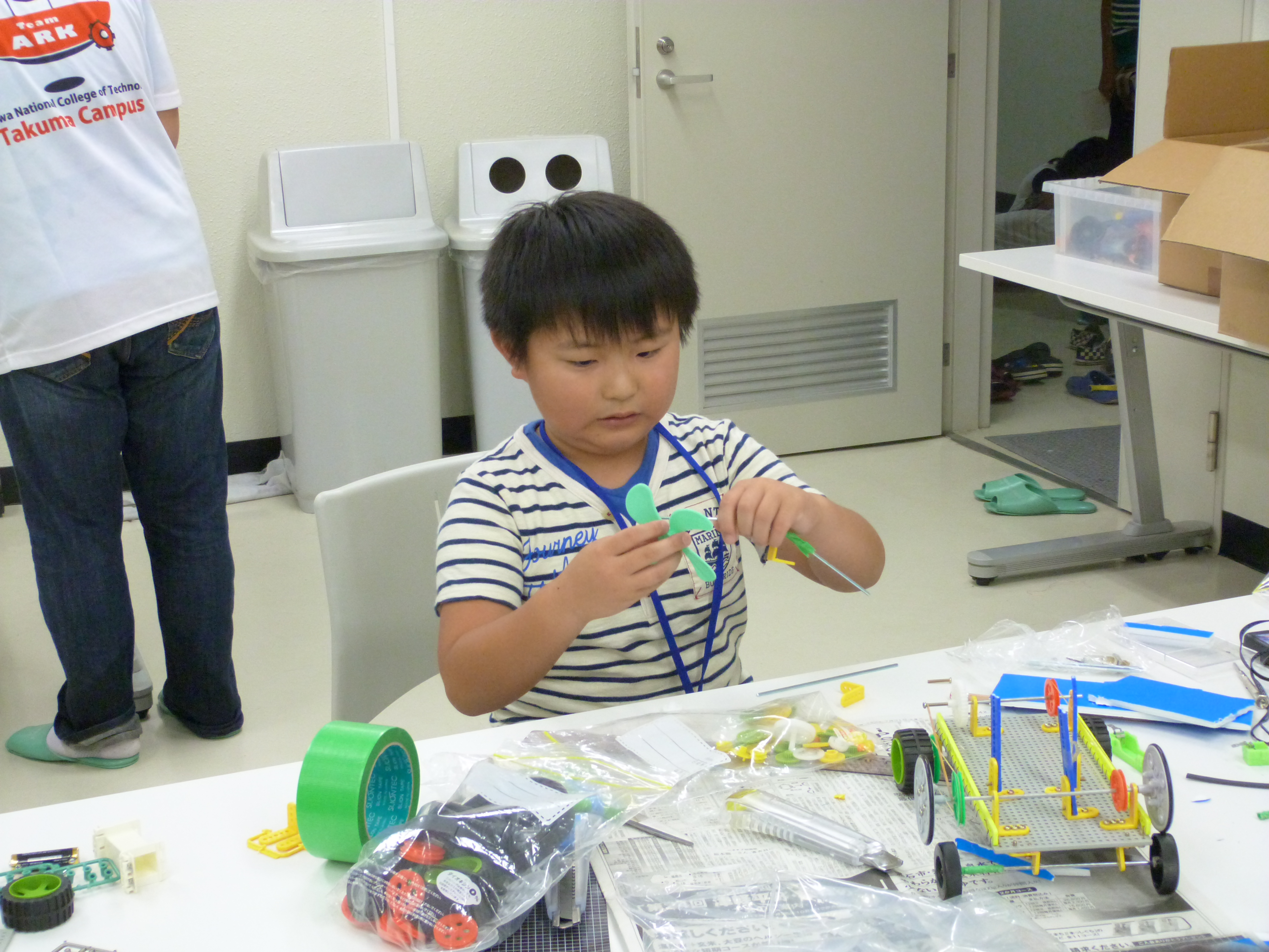 8月2日(土)午前9時~11時まで、詫間キャンパスにおいて三豊市少年少女発明クラブ「チャレコン作品づくり(4)・楽しいアイディア工作(2)・発明くふう展作品づくり(2)」が開催され、ロボコンチーム「TEAM ARK」が活動に協力しました。