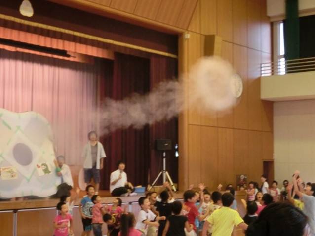 8月8日(金)三豊市立詫間小学校において、三豊市放課後児童クラブうらしまキッズ詫間の子供たちに「科学教室」を実施しました。「スーパーボールによる実験」・「巨大空気砲による実験」・「真空ポンプによる実験」など、体験しながら科学に興味を持ってもらう実験を行いました。その後、自ら作成し遊びながら科学の不思議を実感してもらうために「ストロー笛」・「エックスジャイロ」の作成を行いました。