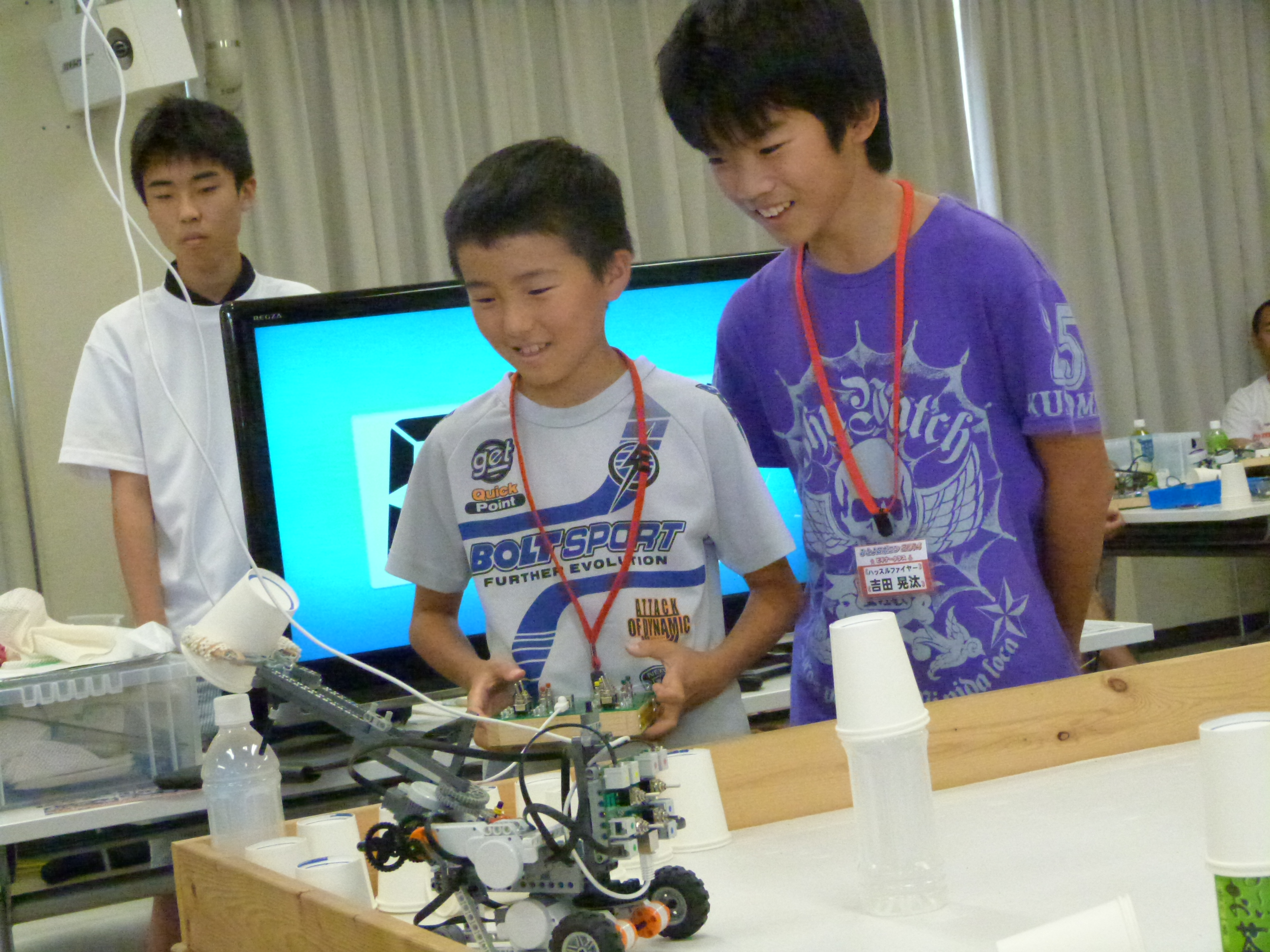 ハイレベルクラスでは、プログラムで動くロボットの動作に減点ルールを採用し、予測不能なロボットの進路にハラハラする場面や、笑いが起こる場面がたくさんあり、こちらも目が離せませんでした。