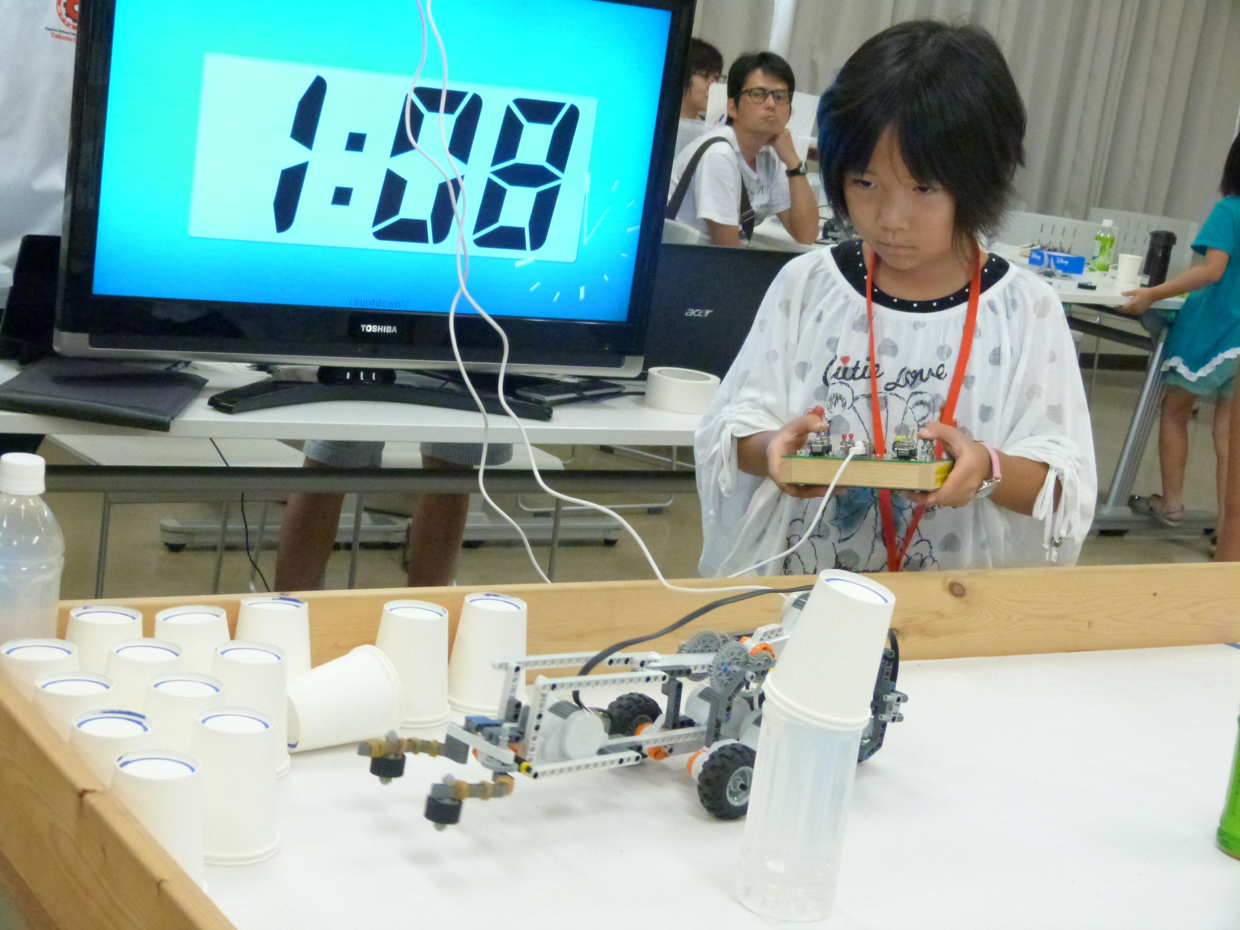 ビギナークラスはルールが一新され、決勝トーナメントでは対戦形式を採用しました。ロボットの操作に集中しながらも、相手ロボットの動作によって臨機応変に対応していく判断力も求められ、観ている者も力が入る展開もあり、最後の1秒まで勝敗がわからない試合は大変見応えがありました。