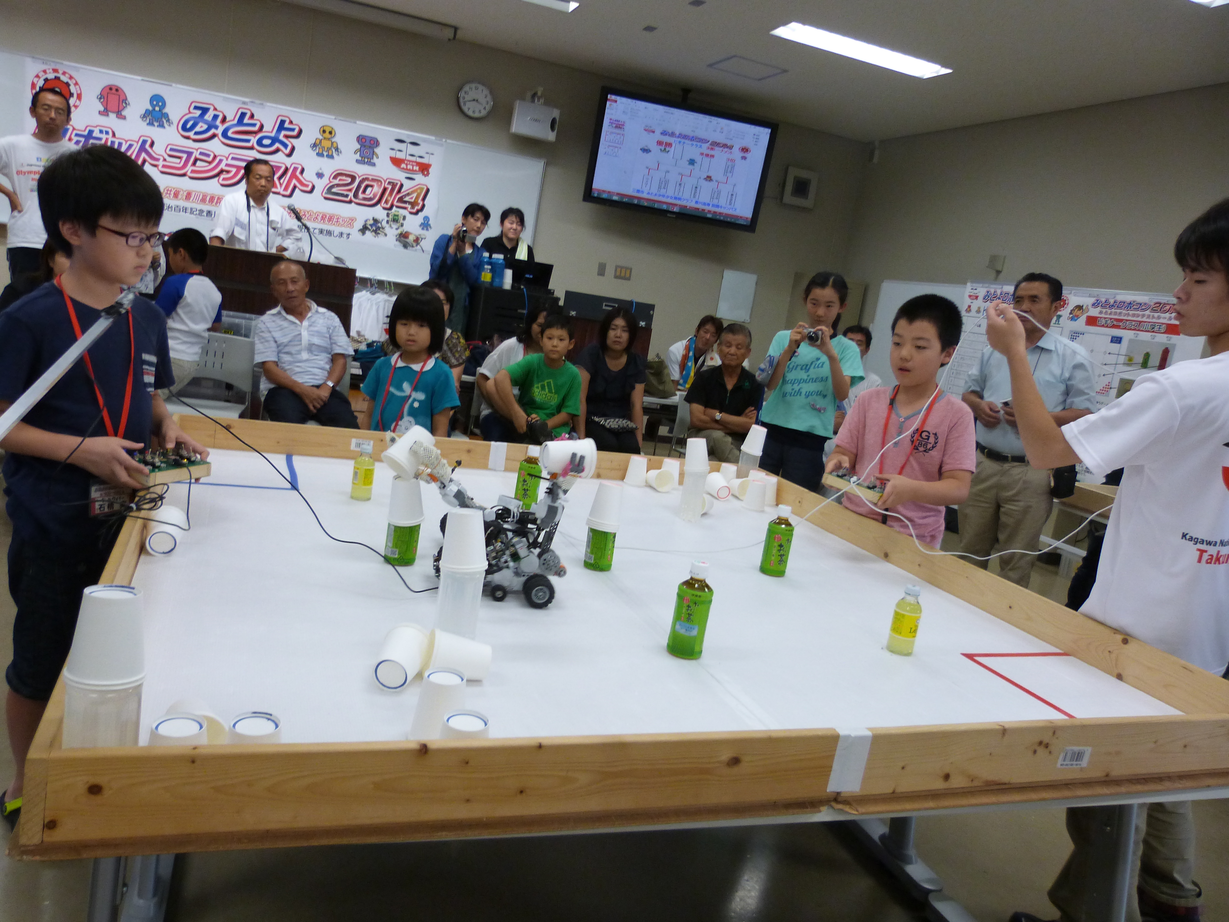 8月24日(日)詫間キャンパス第二講義棟第四講義室において三豊市主催の「みとよロボコン2014」を開催し、ロボコンチーム「TEAM ARK」の学生が競技の運営を行いました。