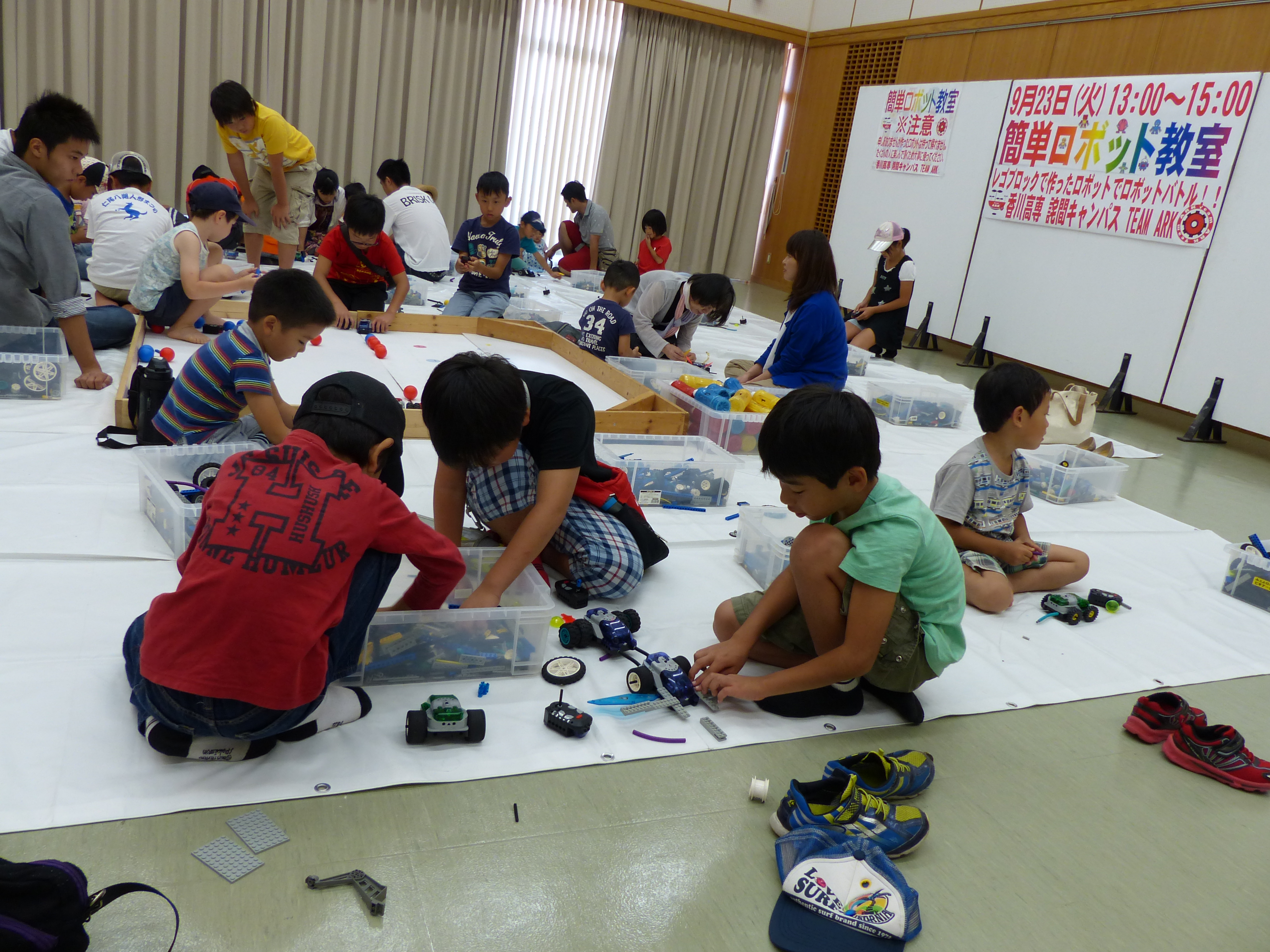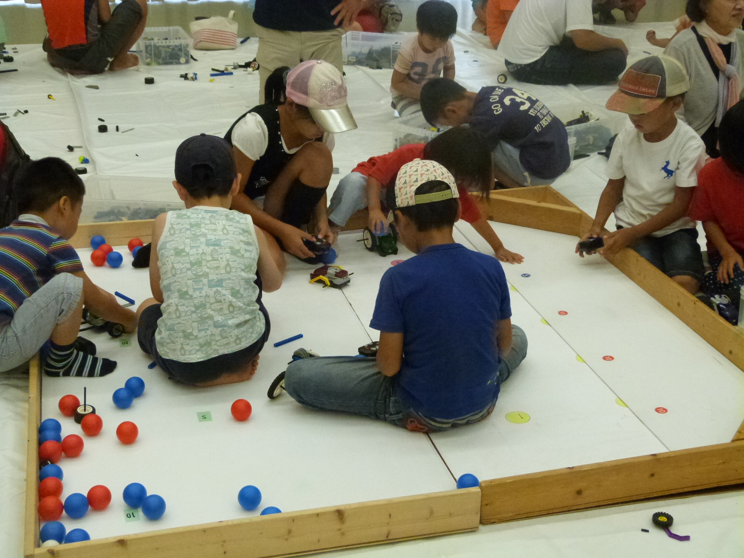 「簡単ロボット教室」会場では子ども達が賑やかにロボット作り