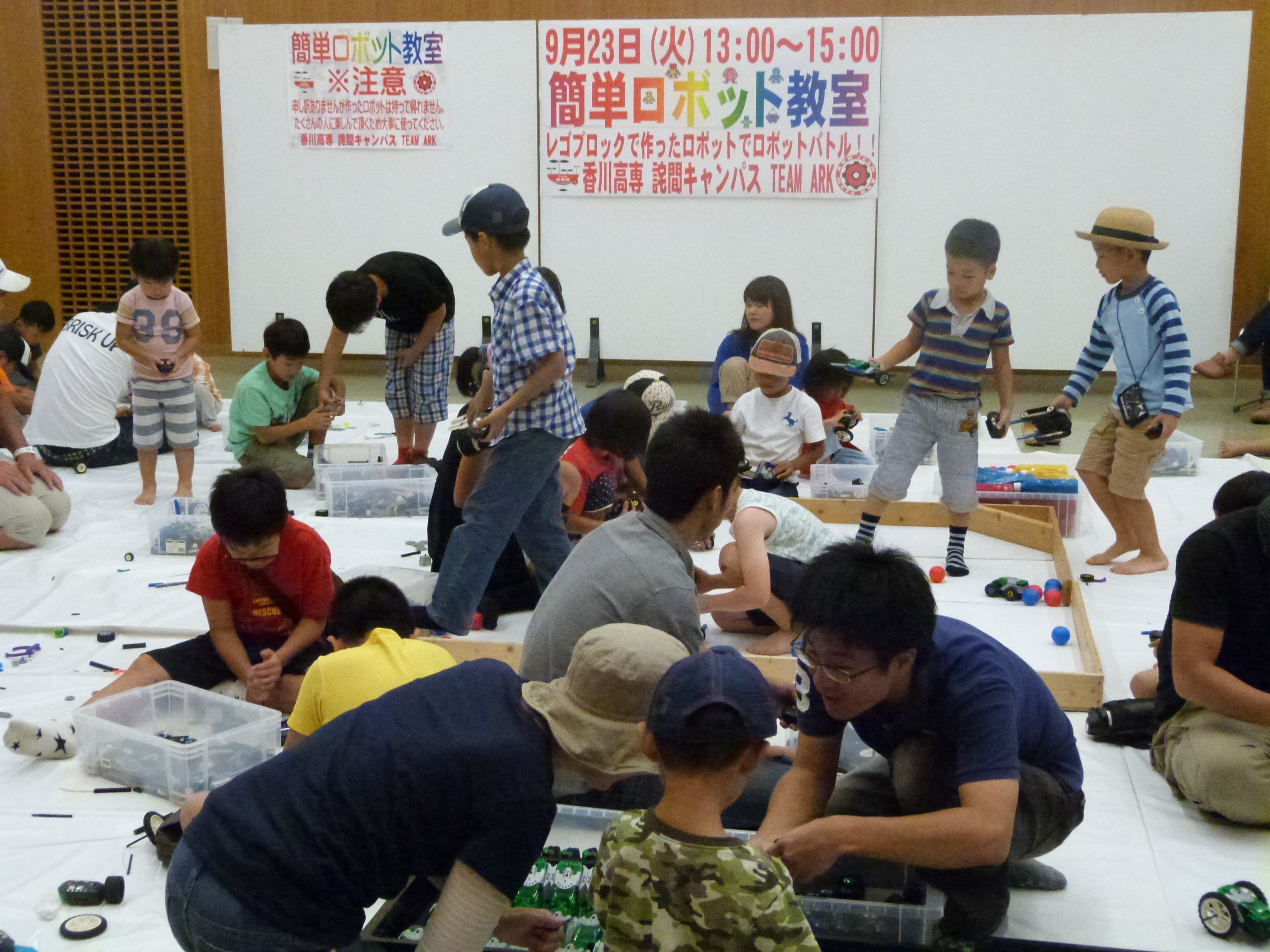 ロボコンチーム「TEAM ARK」は、23日13:00~15:00まで仁尾町文化会館にて「簡単ロボット教室」を開催しました。会場はロボットを作ってリモコンで動かして楽しむ子ども達で賑わいました。