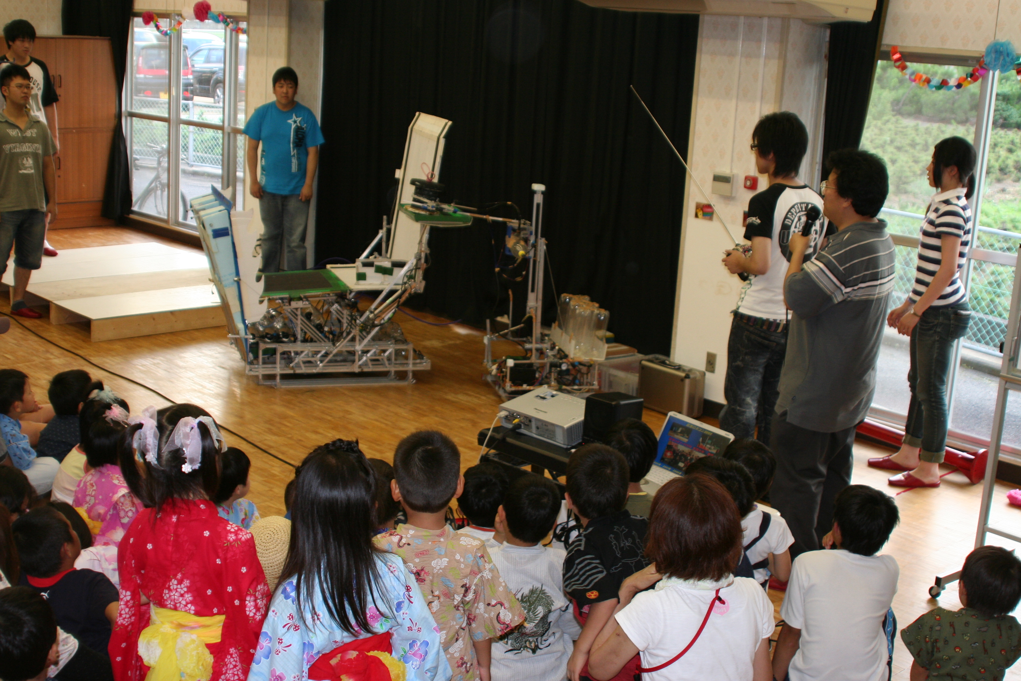 国分寺北部保育所「ロボコンロボット実演」 2010/07/17 2010年7月17日(土) 国分寺北部保育所 「ロボコンロボット実演」 国分寺北部保育所にて、ロボコンチームTEAM ARKによるロボット実演が行われました。 昨年の高専ロボコンで優勝したロボットの細かな動きに園児達は身を乗り出して見入っていました。