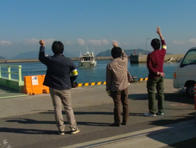 本校から参加したボランティア学生は、JR詫間駅・須田港にて案内チラシの配布や交通機関への案内、説明等を行いました。また、須田港には車での来場者が非常に多く、駐車場の案内を重点的に行いました。