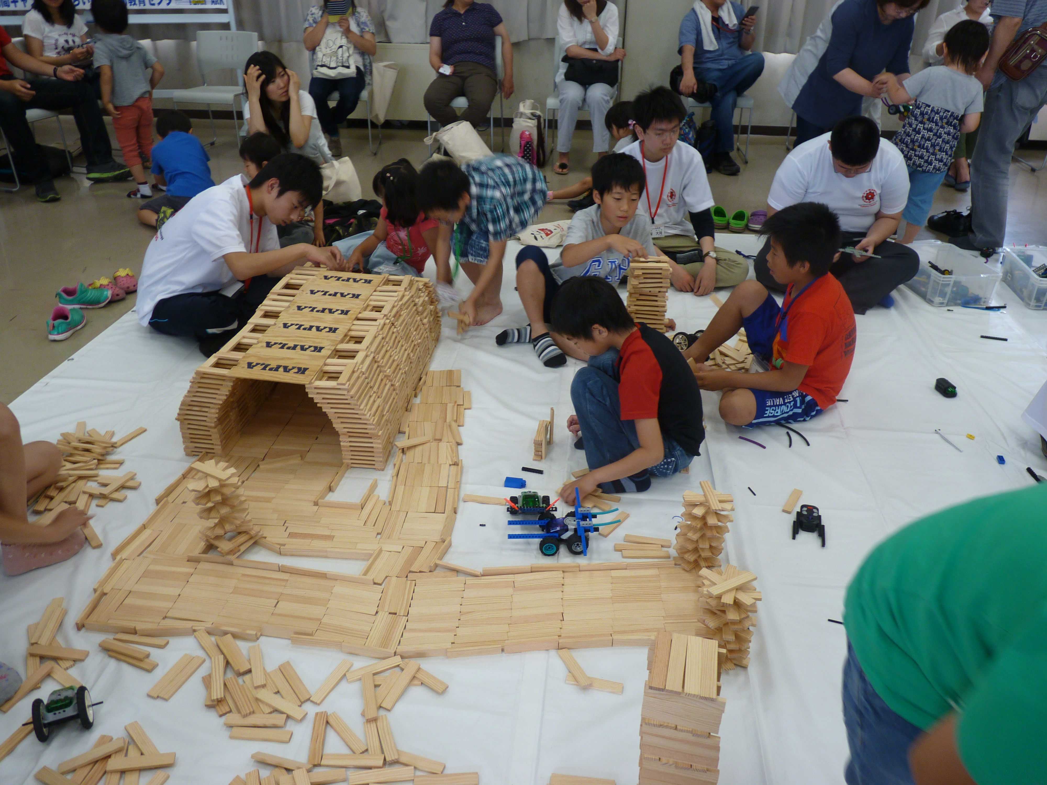 また、「カプラ」という造形ブロックも用意して高く積み上げたり、スパイボットのコースを作ったりと、学生達も一緒になってレゴスパイボットとは違った「ものづくり」を楽しみました。