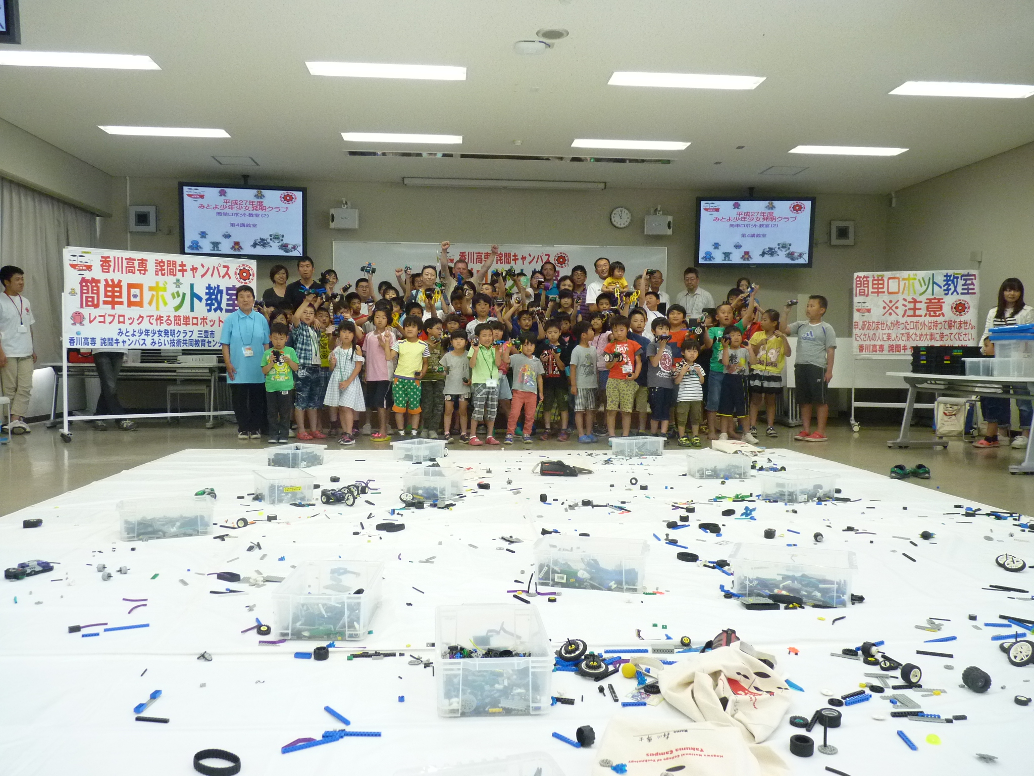 5月30日(土)、詫間キャンパスにて三豊市少年少女発明クラブの活動「簡単ロボット教室(2)」を開催しました。「簡単ロボット教室」は発明クラブの活動に協力している詫間キャンパスロボコンチーム「TEAM ARK」が主催している活動です。1回目に引き続き、今回もたくさんの子ども達が参加をしてくれました。