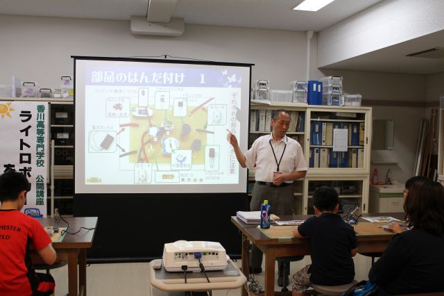 詫間キャンパス 第二基礎通信工学実験室 平成27年度公開講座「ライトロボカーをつくろう」