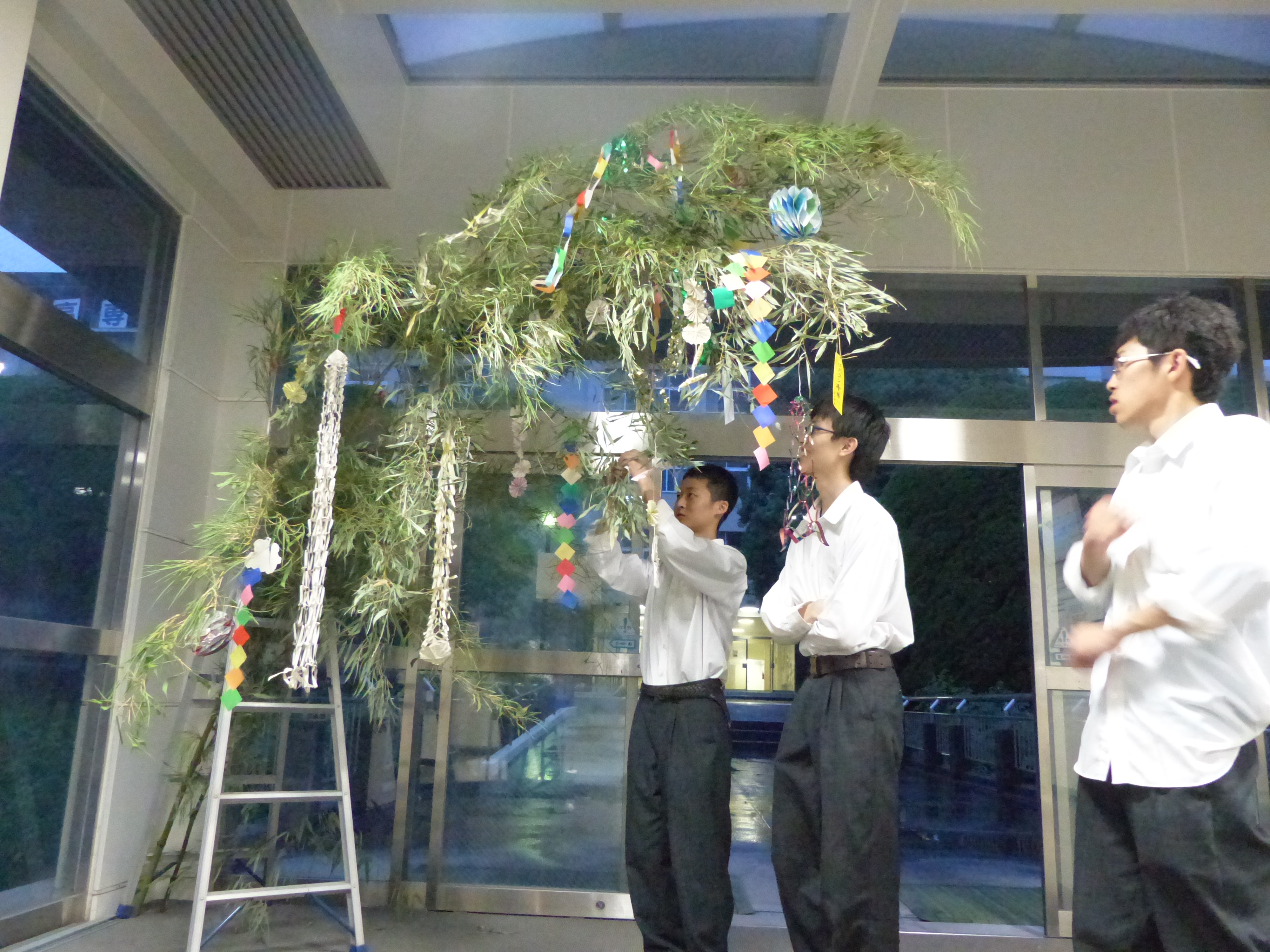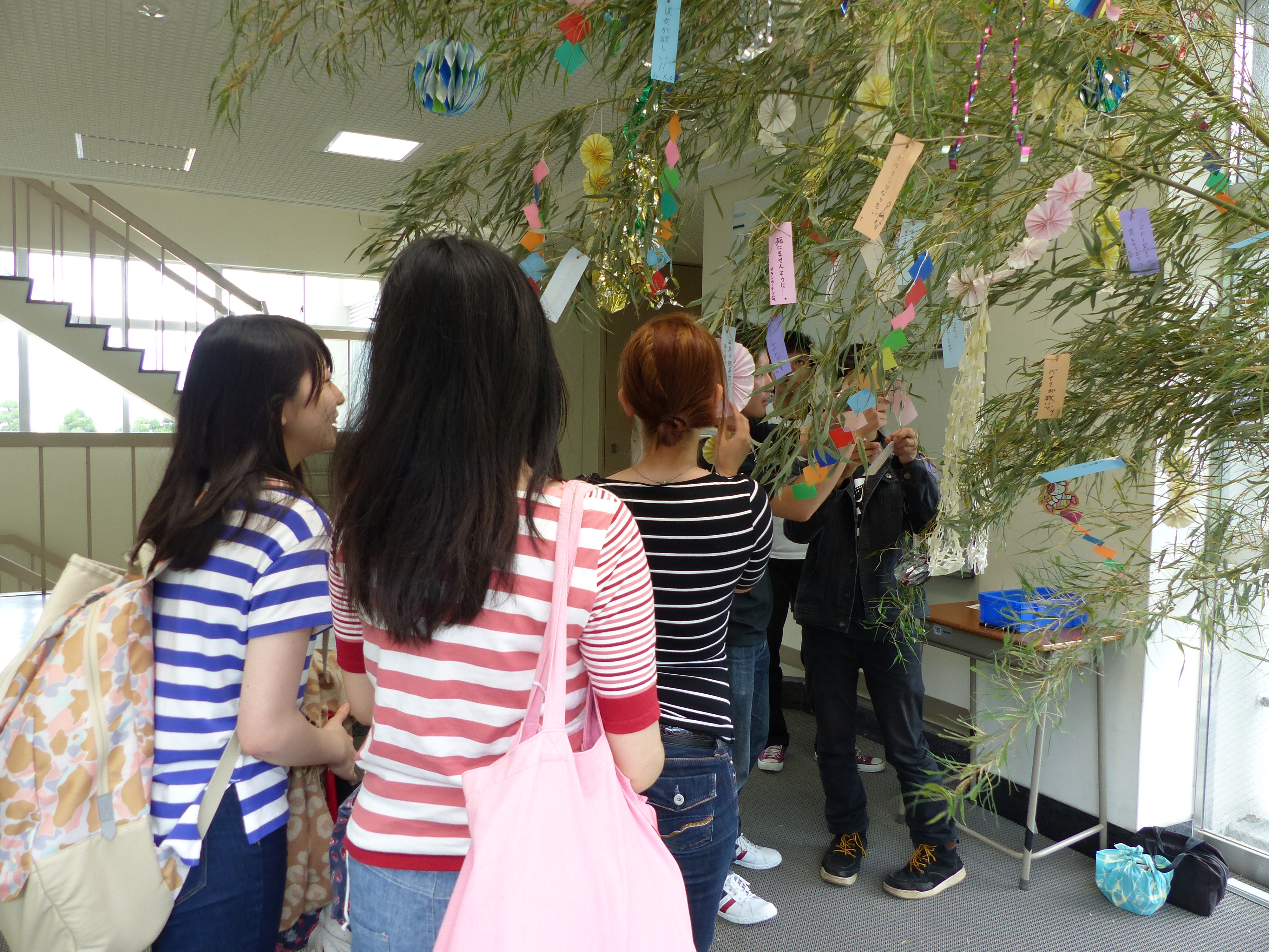 翌日からは、七夕飾りを目にしたたくさんの学生達が願い事を書いた短冊に祈りを込めて笹に結び、色とりどりの短冊でいっぱいになりました。