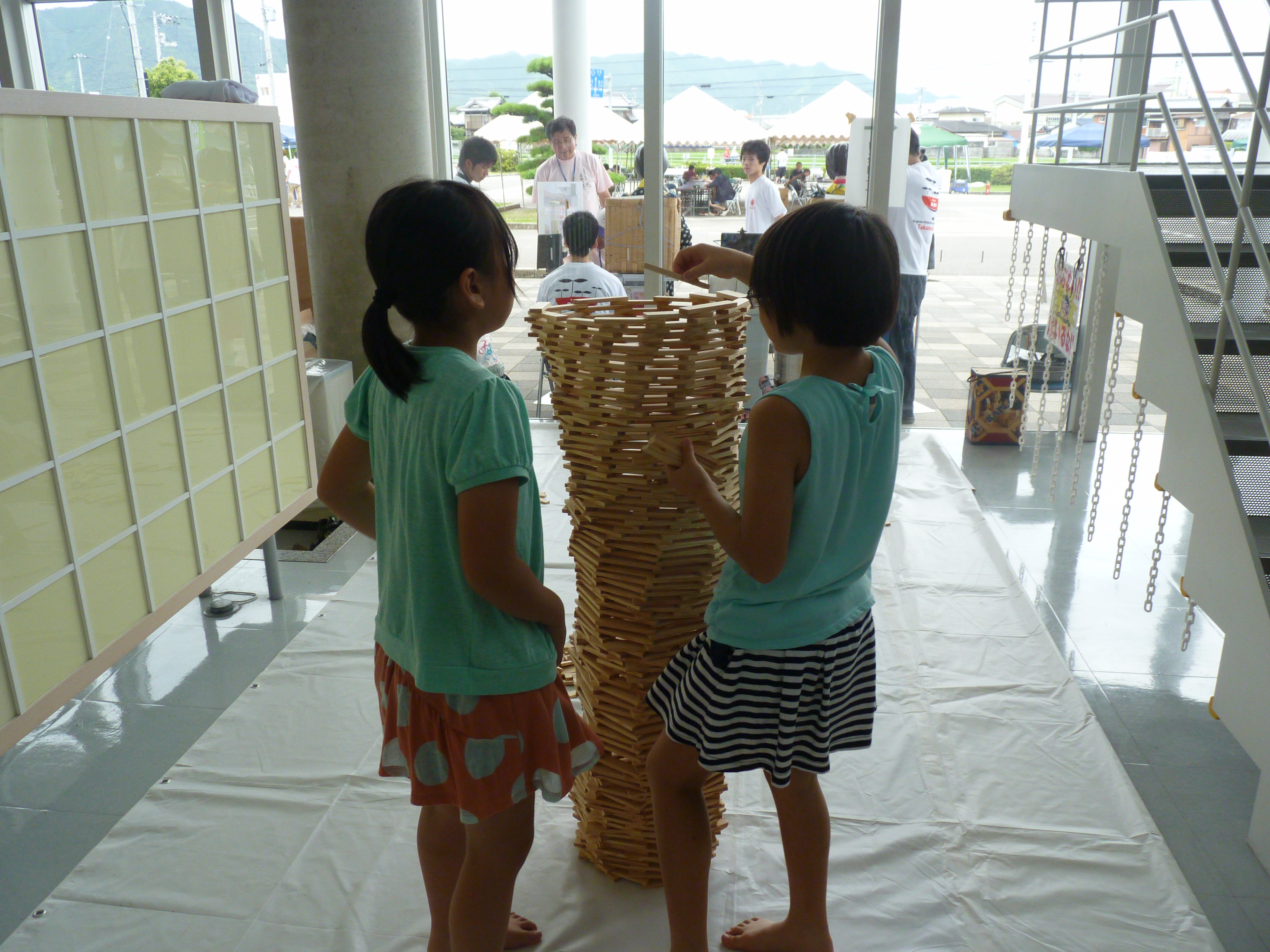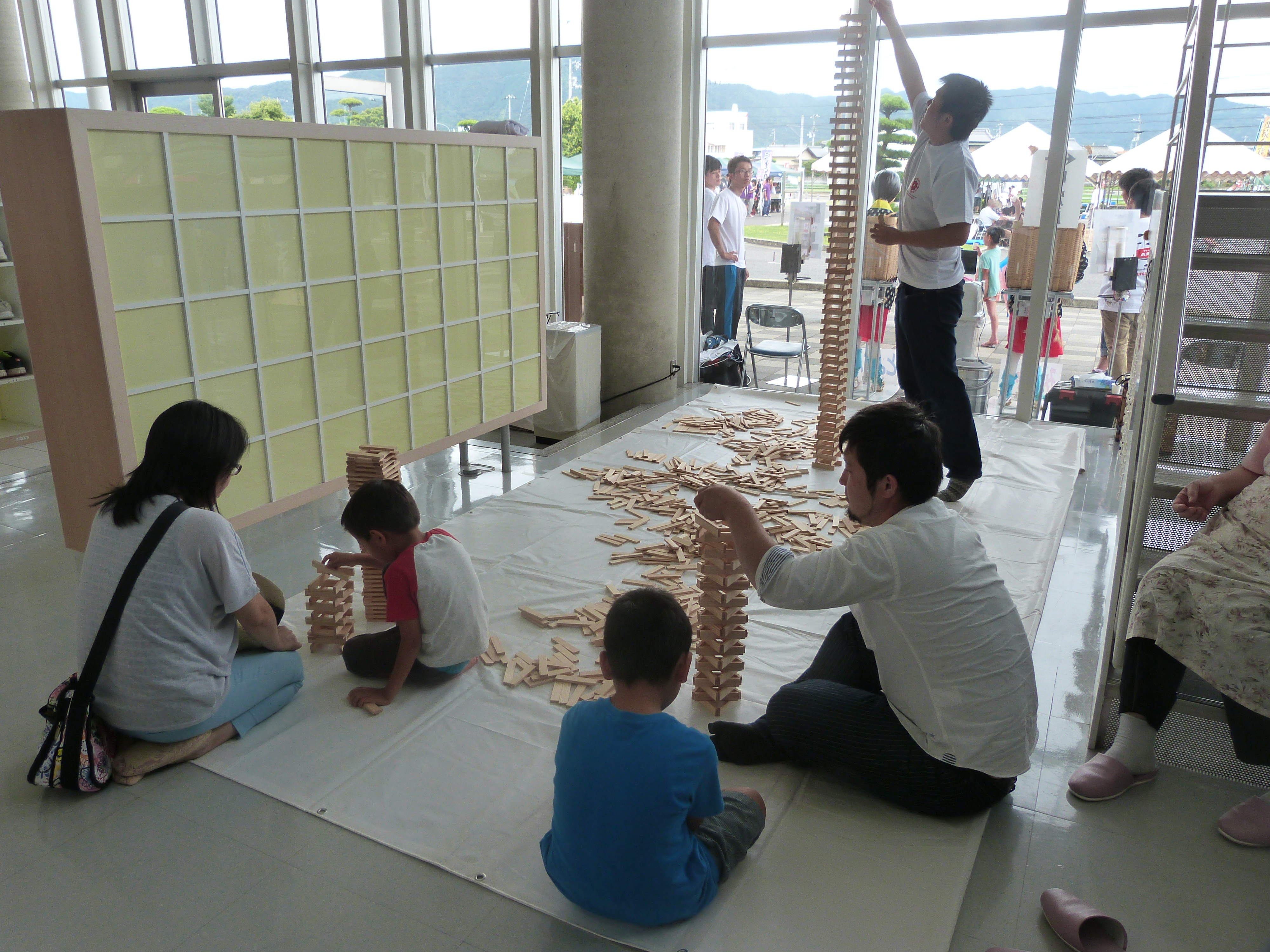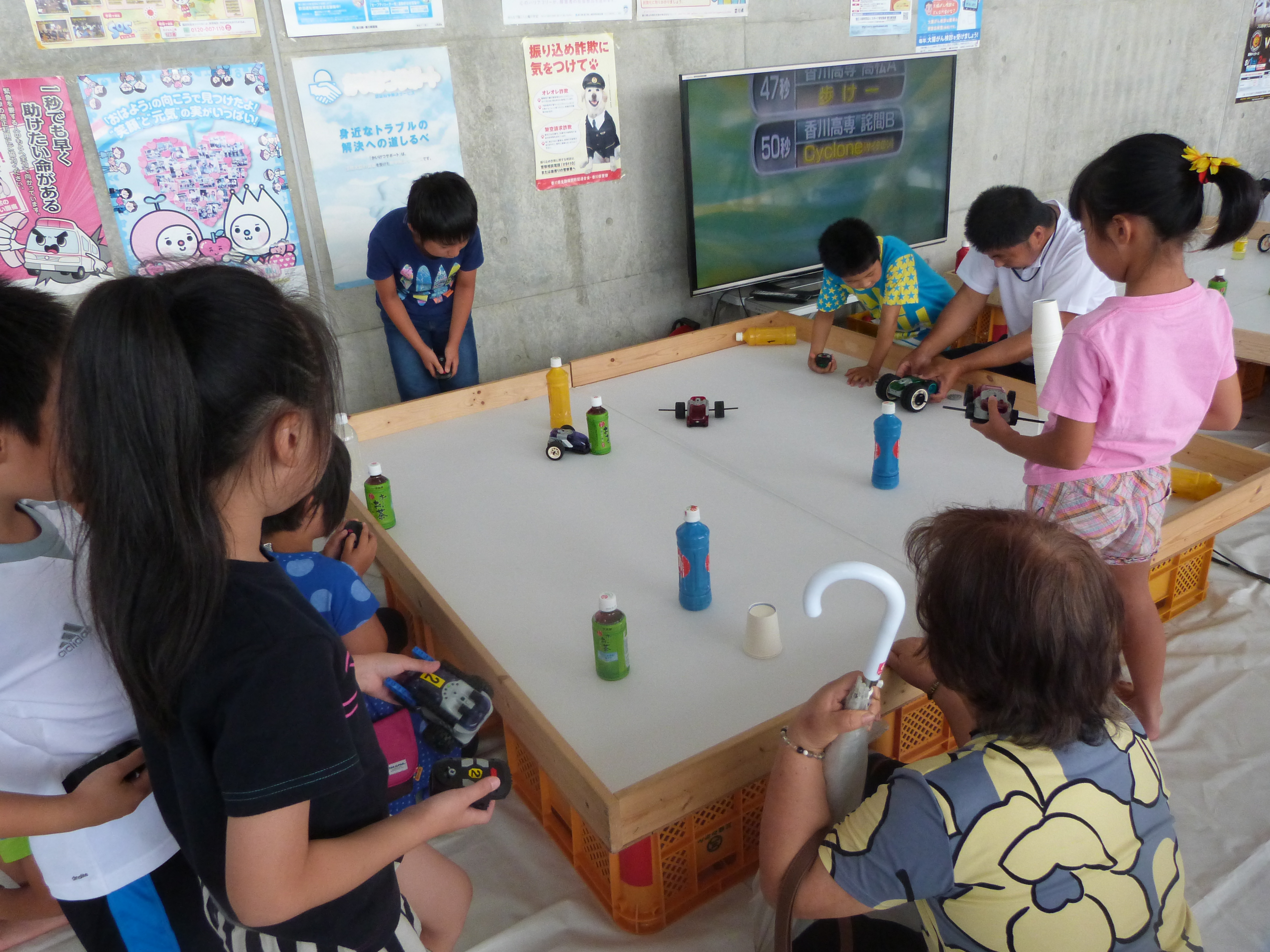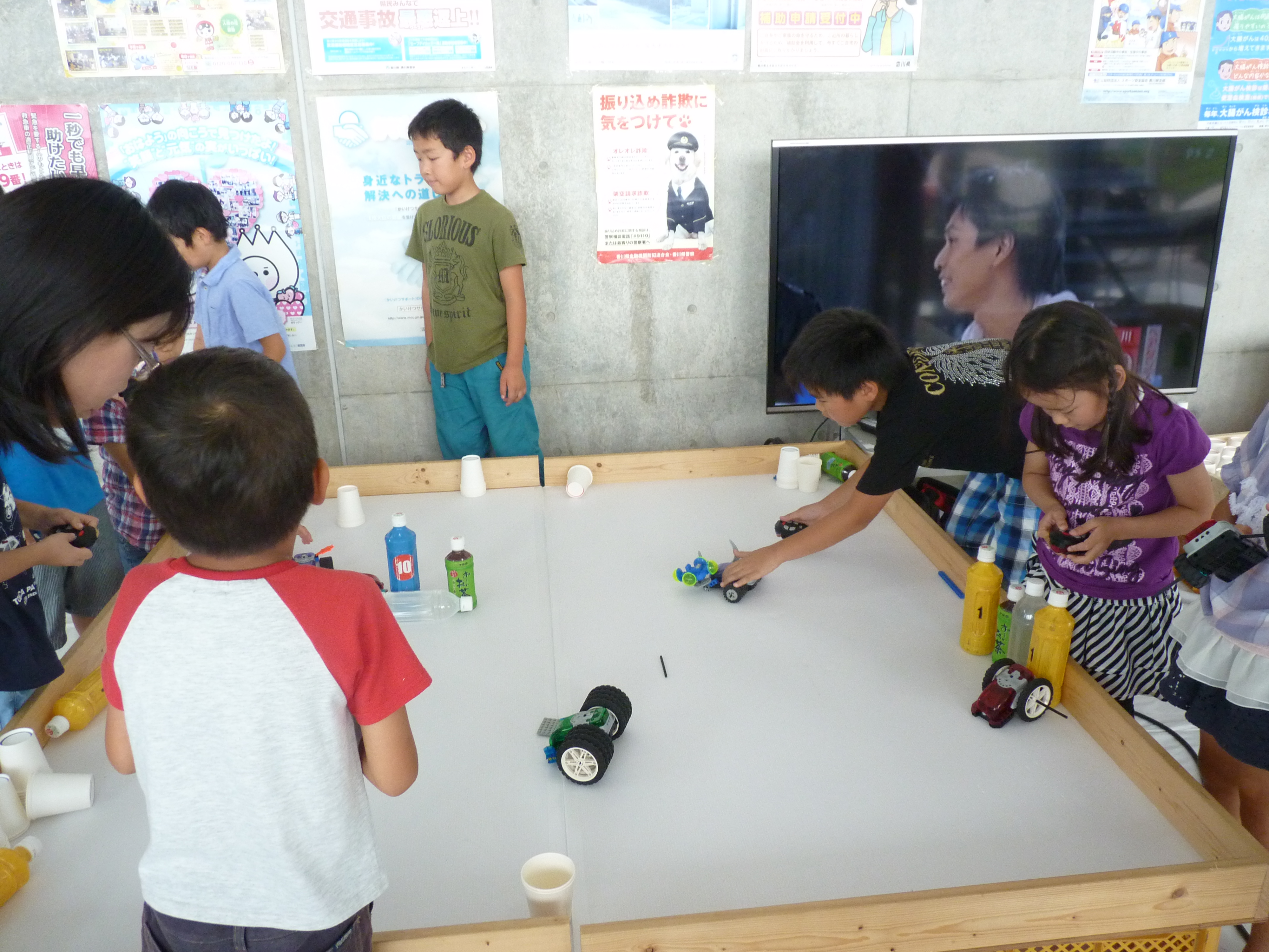 レゴブロックを用いた簡単ボット製作教室、オリジナルリモコンを使ったロボットコンテストも行いました。また不思議な積み木「カプラ」も用意し、いろいろな「ものづくり」体験でたくさんの子ども達に遊んでもらいました。初対面のお友達ともみんなで楽しく取り組んでいました。