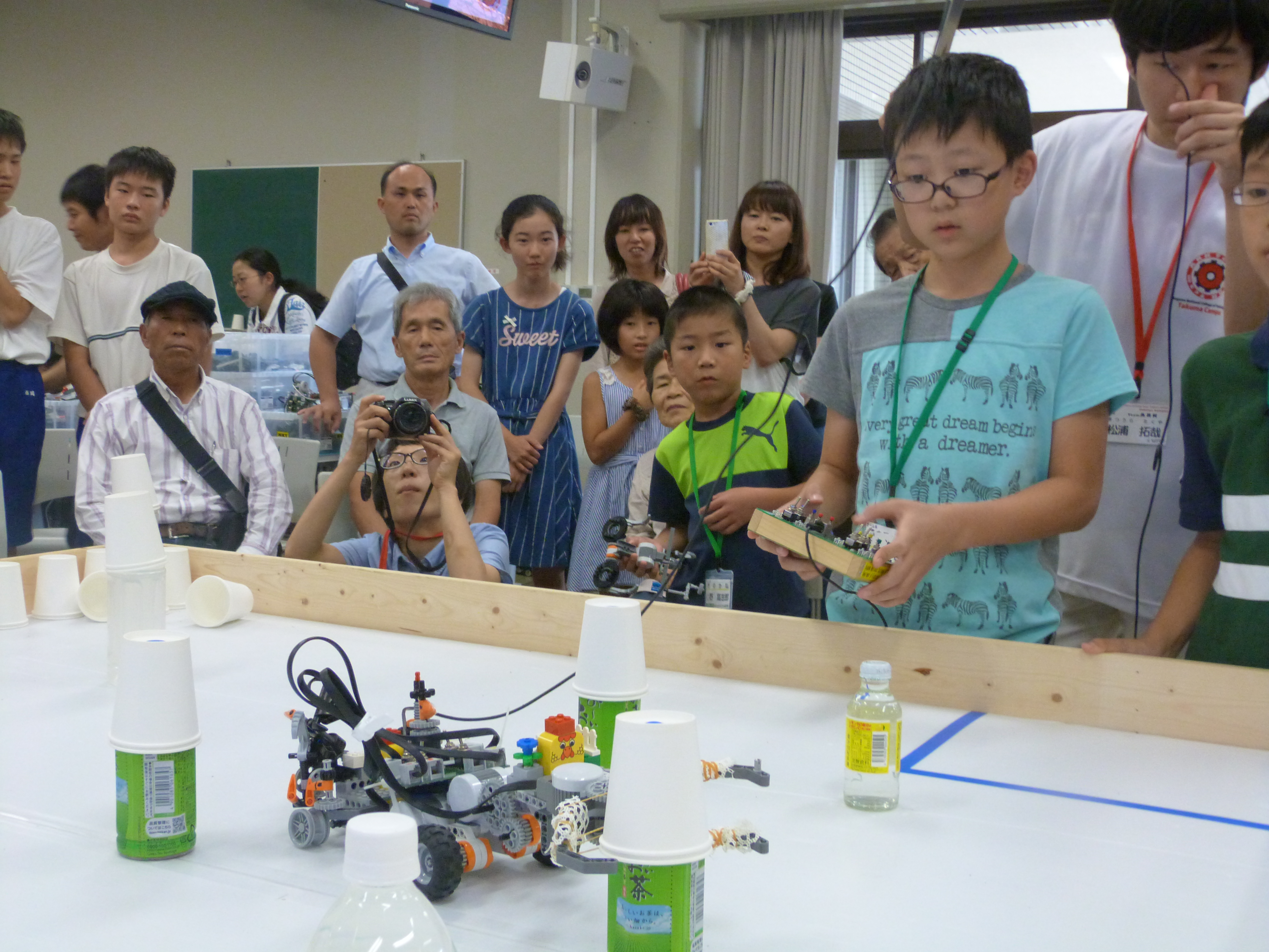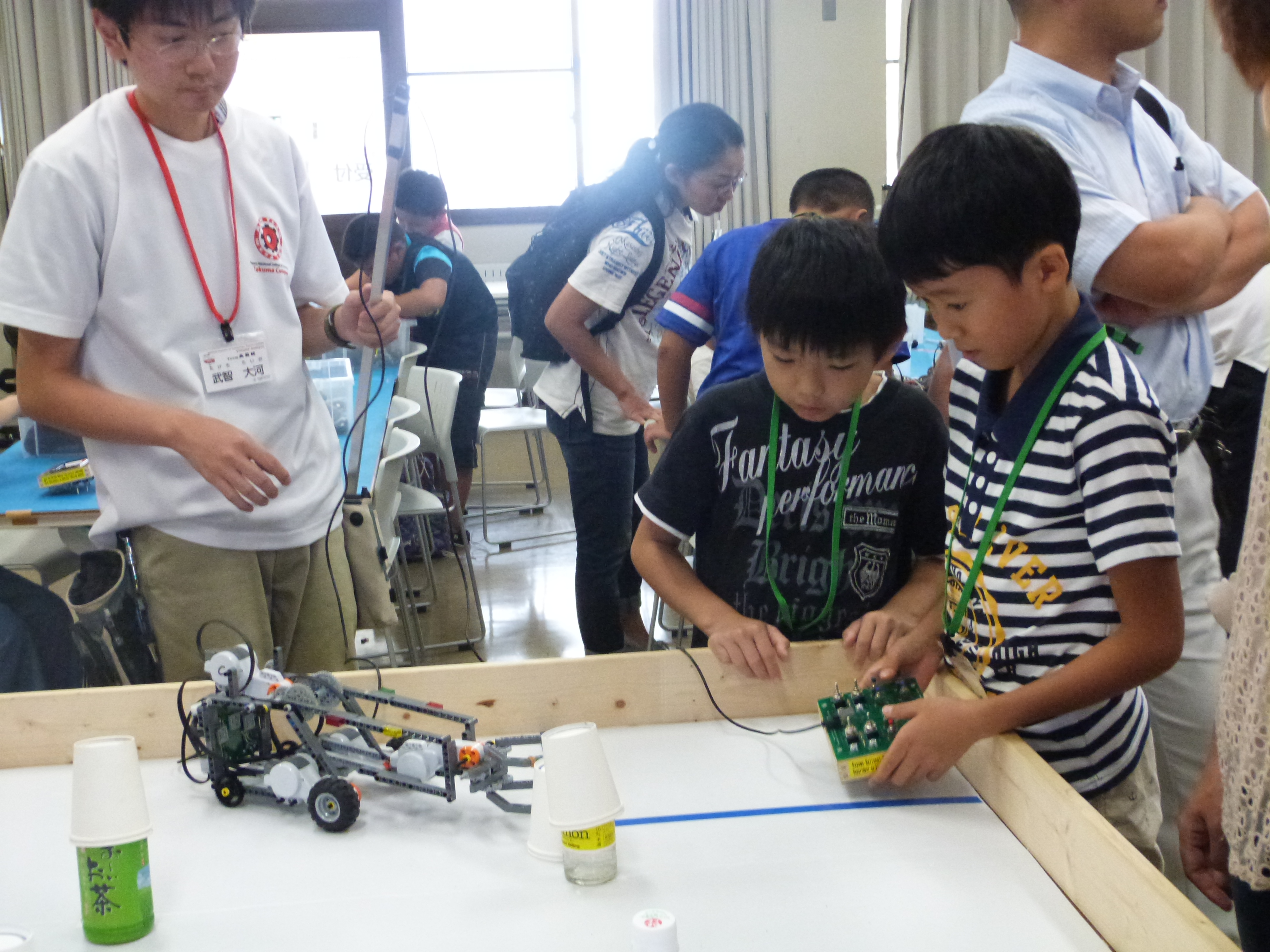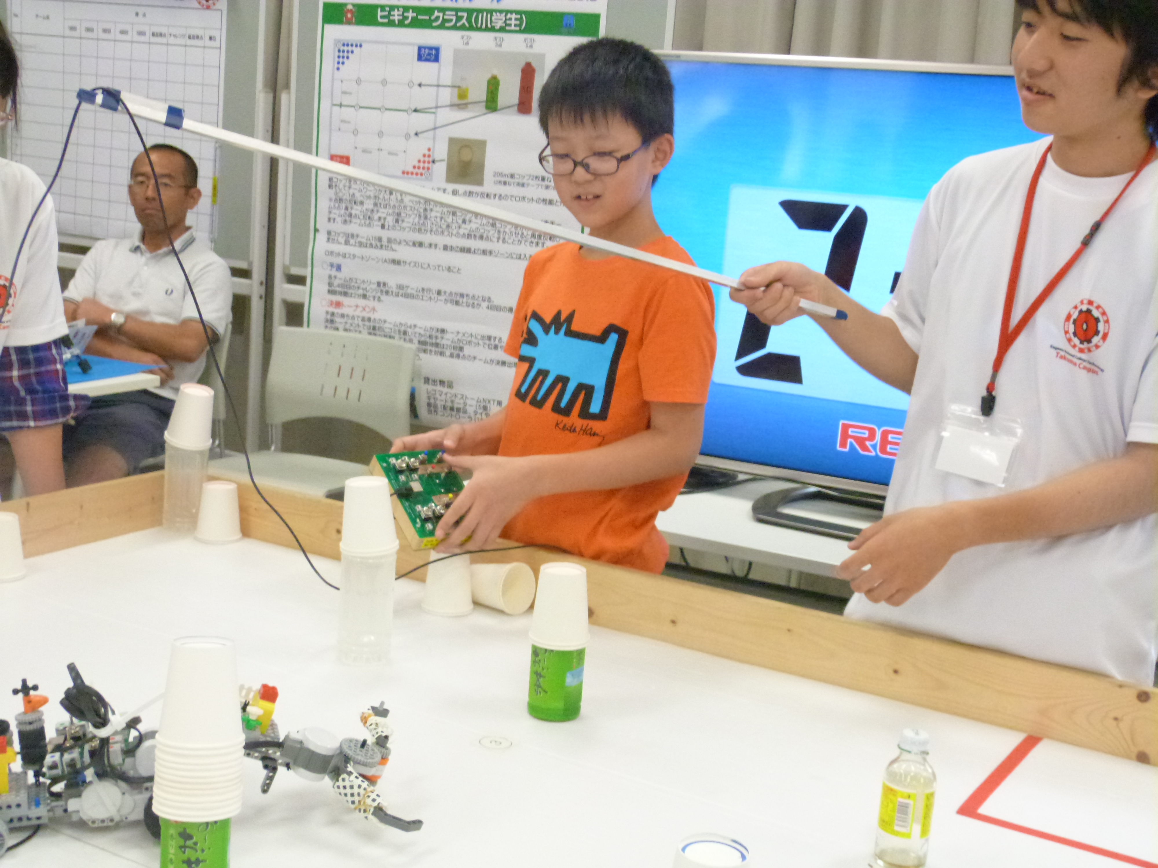 ビギナークラスは予選は時間内に取った得点を競い、決勝トーナメントは予選とは違って対戦形式となっています。ロボットの操作に集中しながらも、小学生とは思えない高専ロボコン並みの白熱した攻防戦が繰り広げられていました。