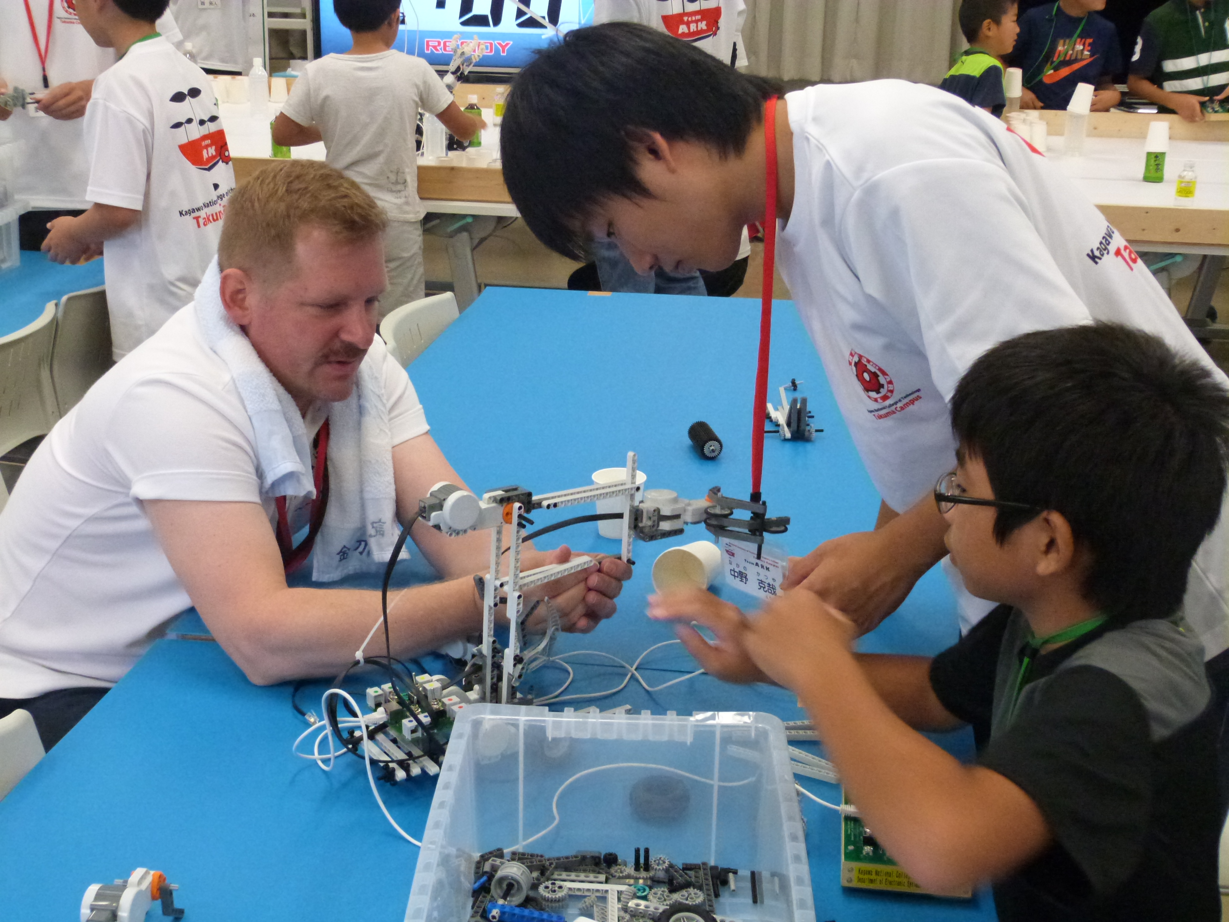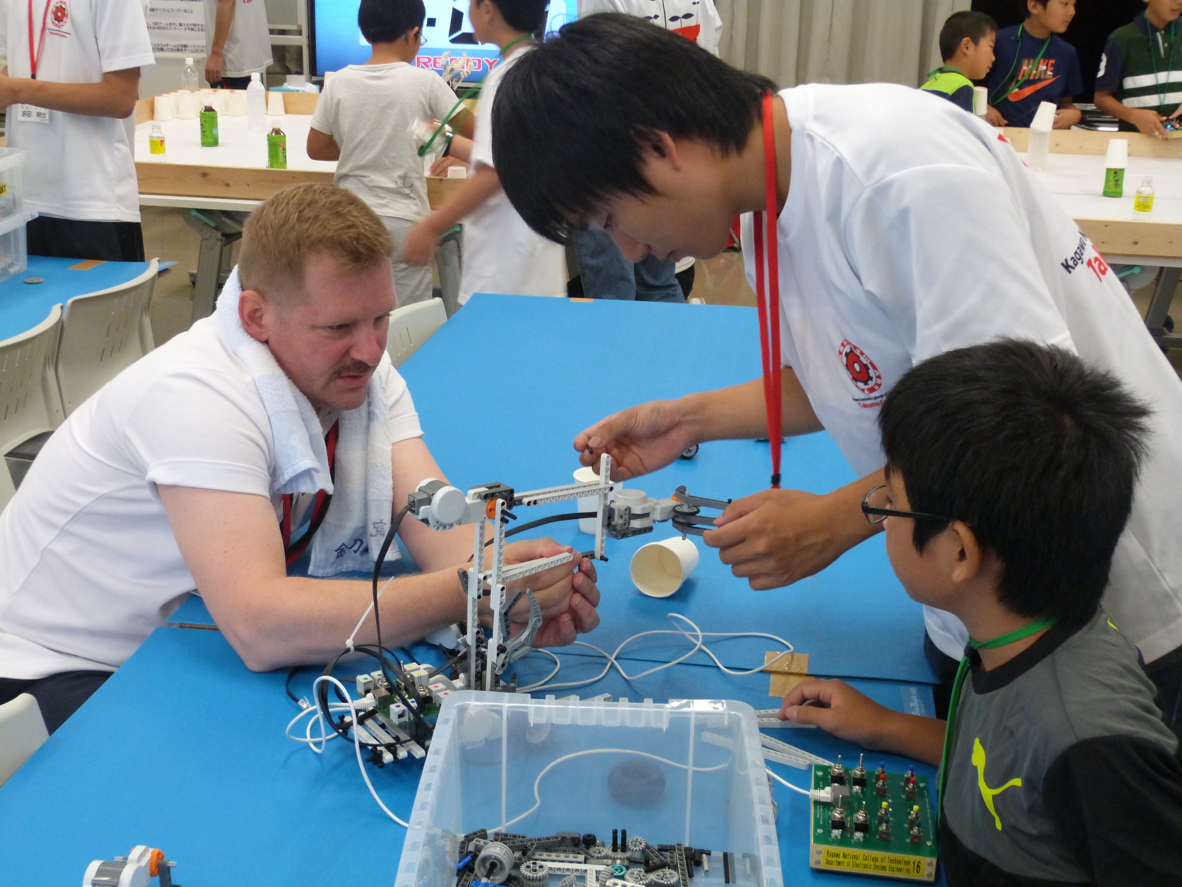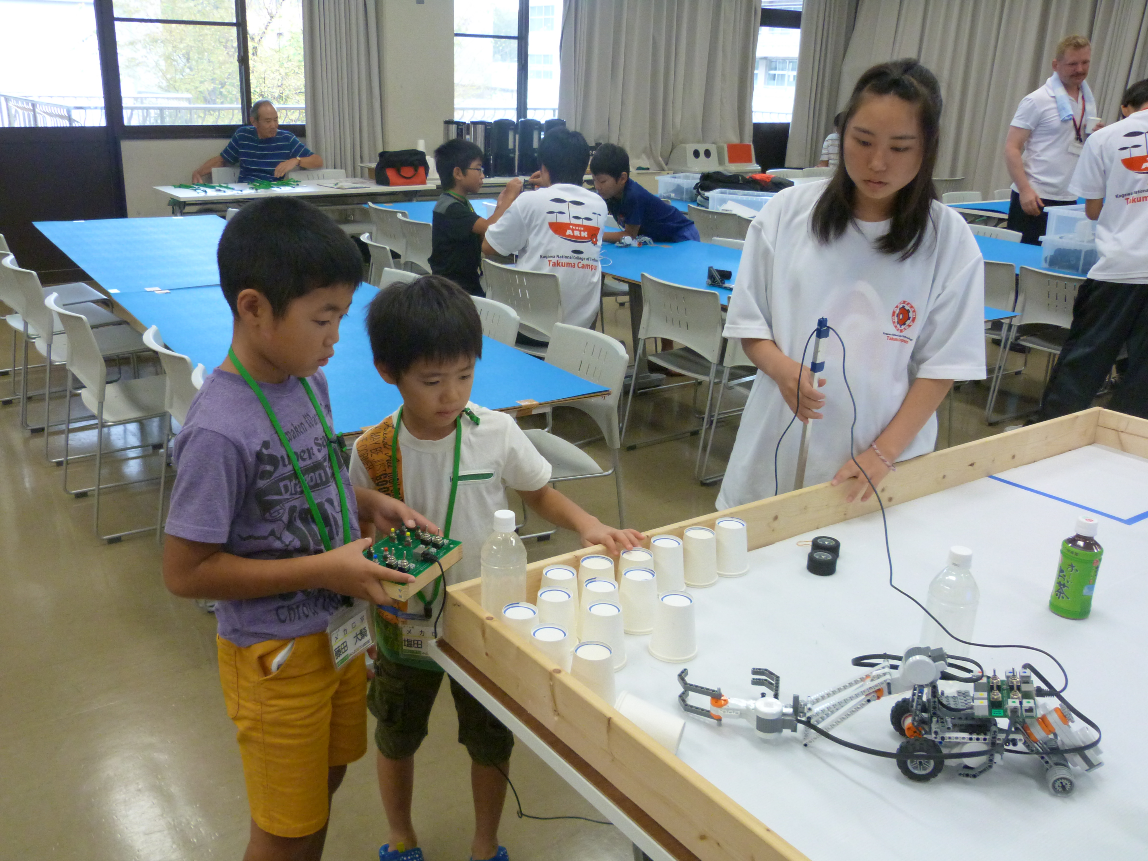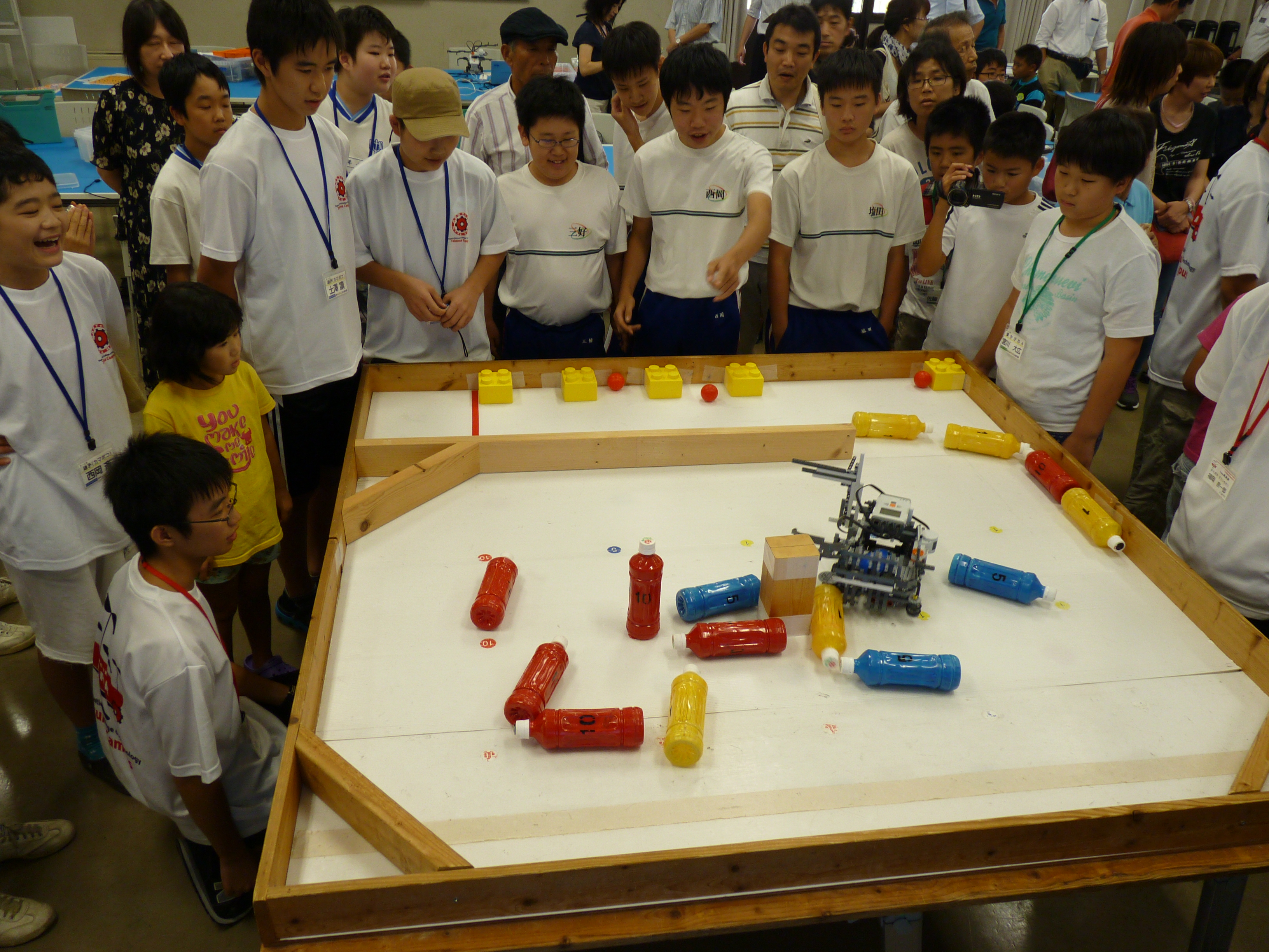 ビギナークラスは予選は時間内に取った得点を競い、決勝トーナメントは予選とは違って対戦形式となっています。ロボットの操作に集中しながらも、小学生とは思えない高専ロボコン並みの白熱した攻防戦が繰り広げられていました。