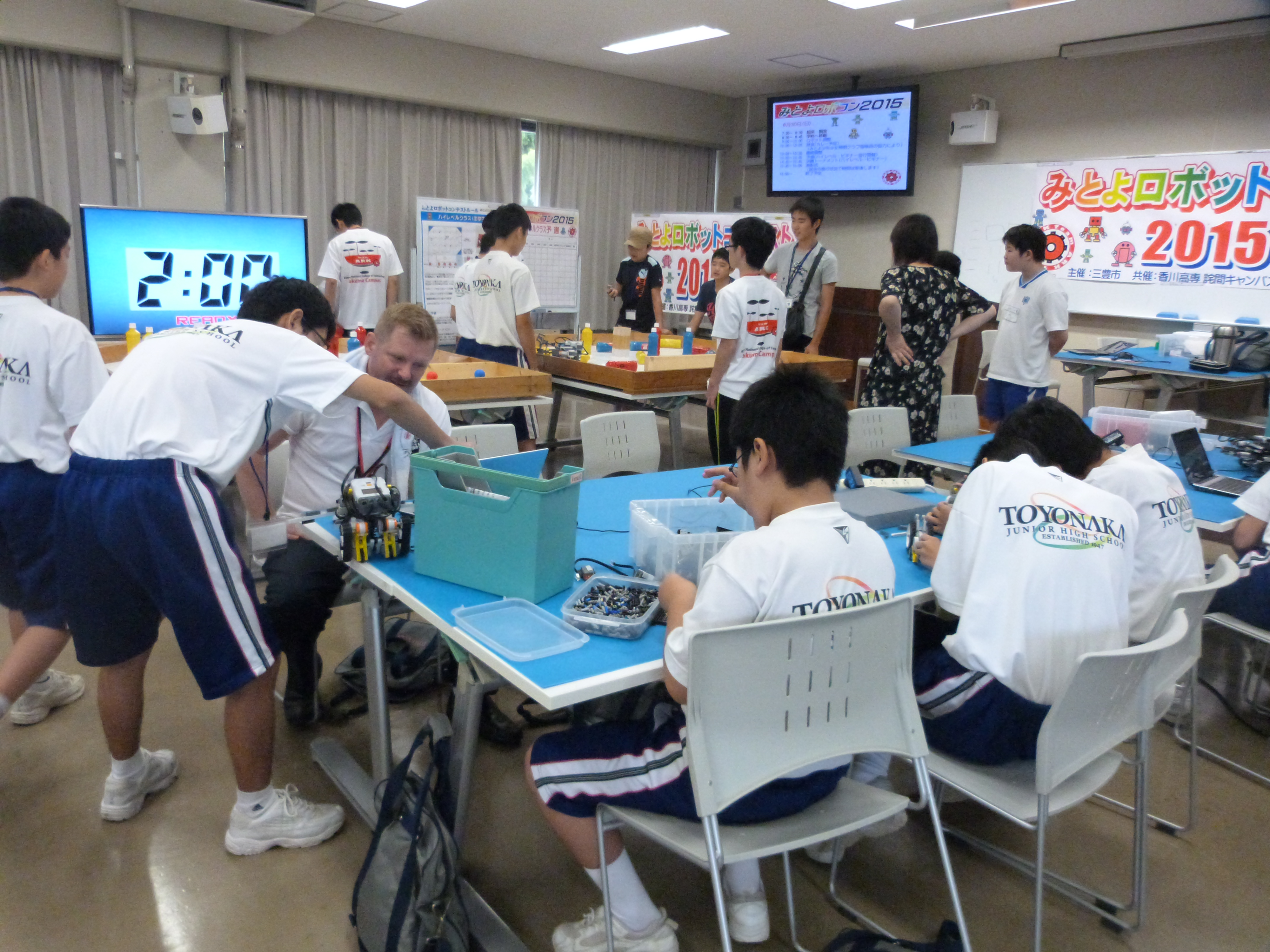 8月30日(日)、詫間キャンパス第二講義棟第四講義室において、三豊市主催の「みとよロボコン2015」を開催し、ロボコンチーム「TEAM ARK」の学生が競技の運営を行いました。