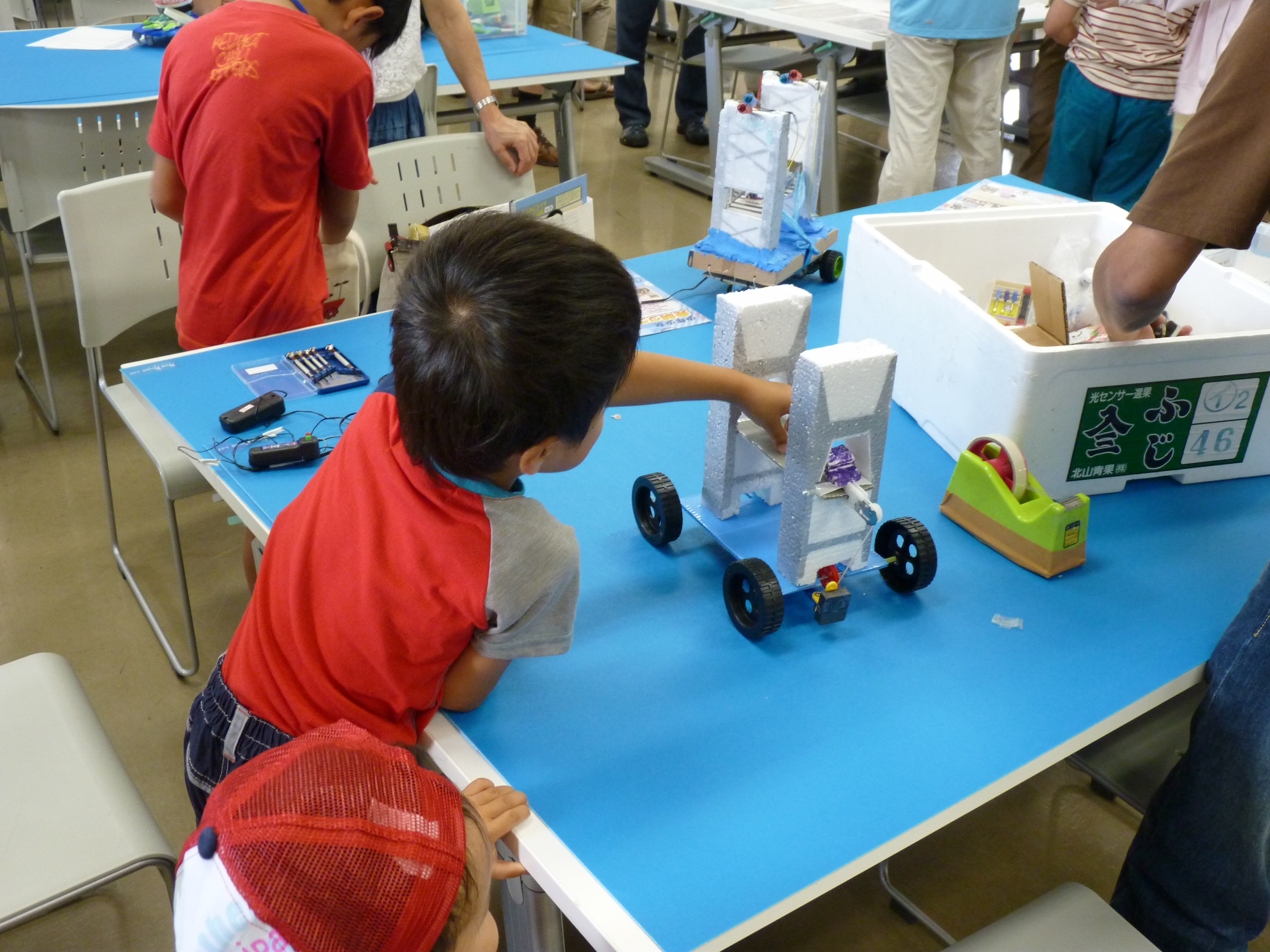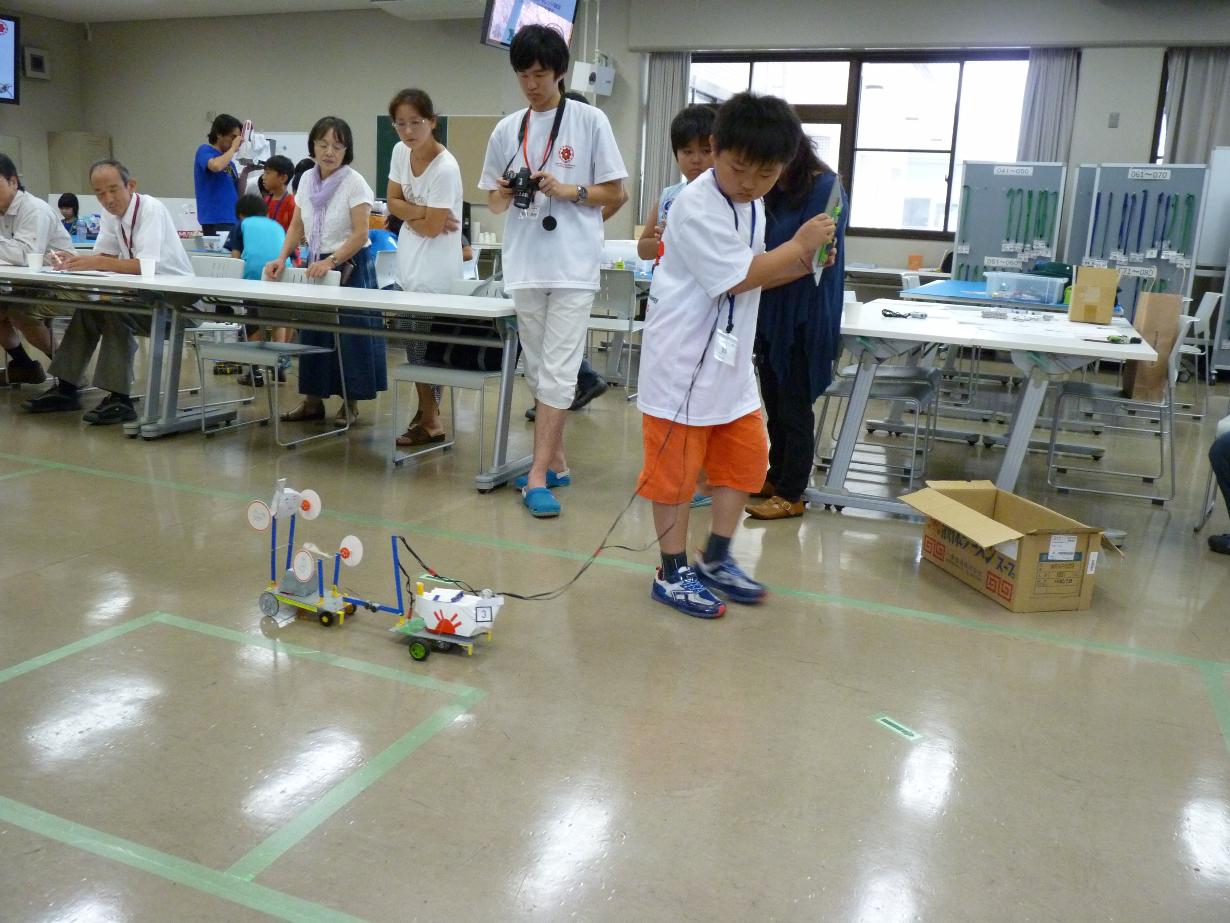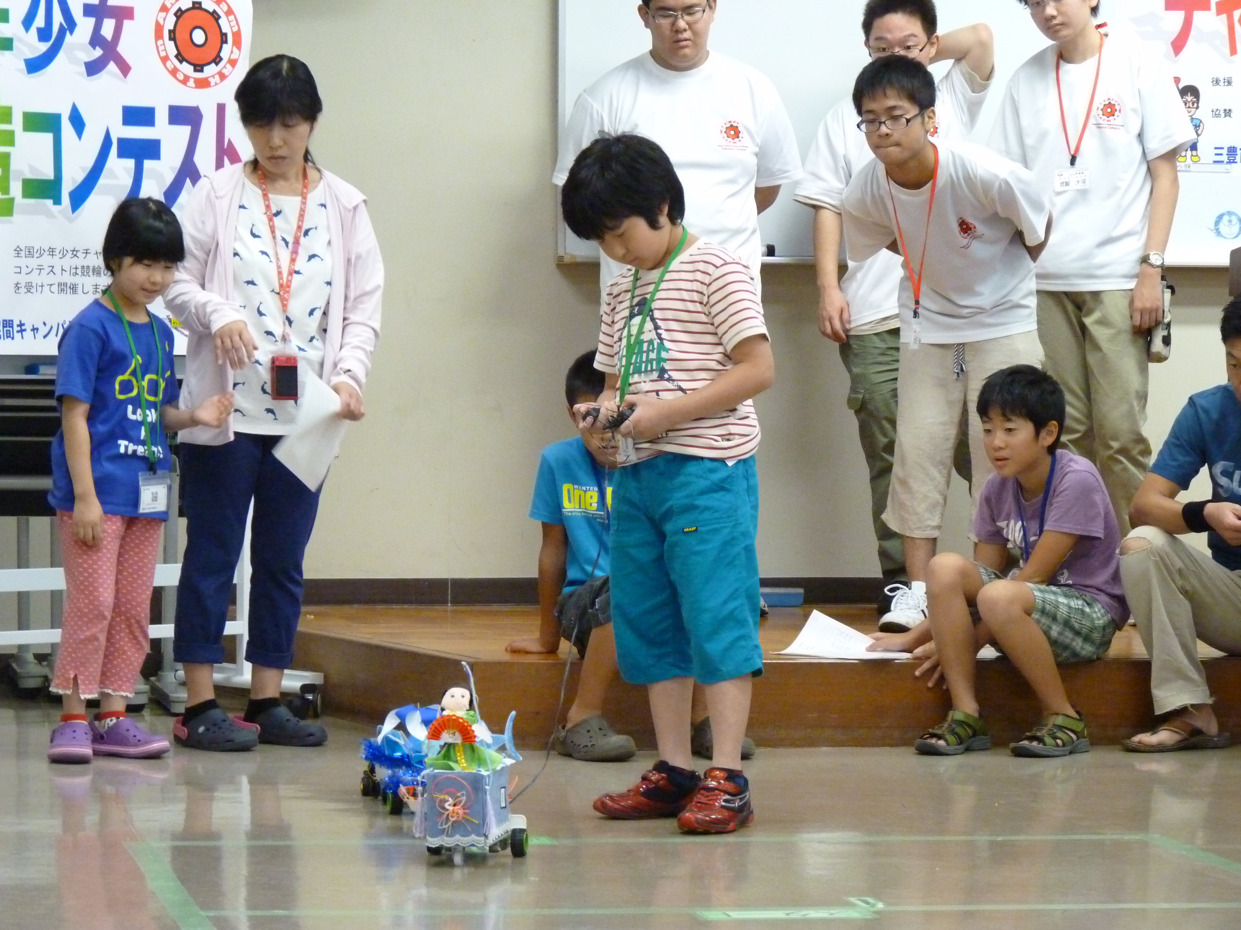 今年のテーマは昨年に引き続き「からくりパフォーマンスカー」です。地元地域の紹介を行う山車と、山車をけん引する動力車を製作し、リモコン操作で設定コースを走行して時間内にゴールさせる競技です。