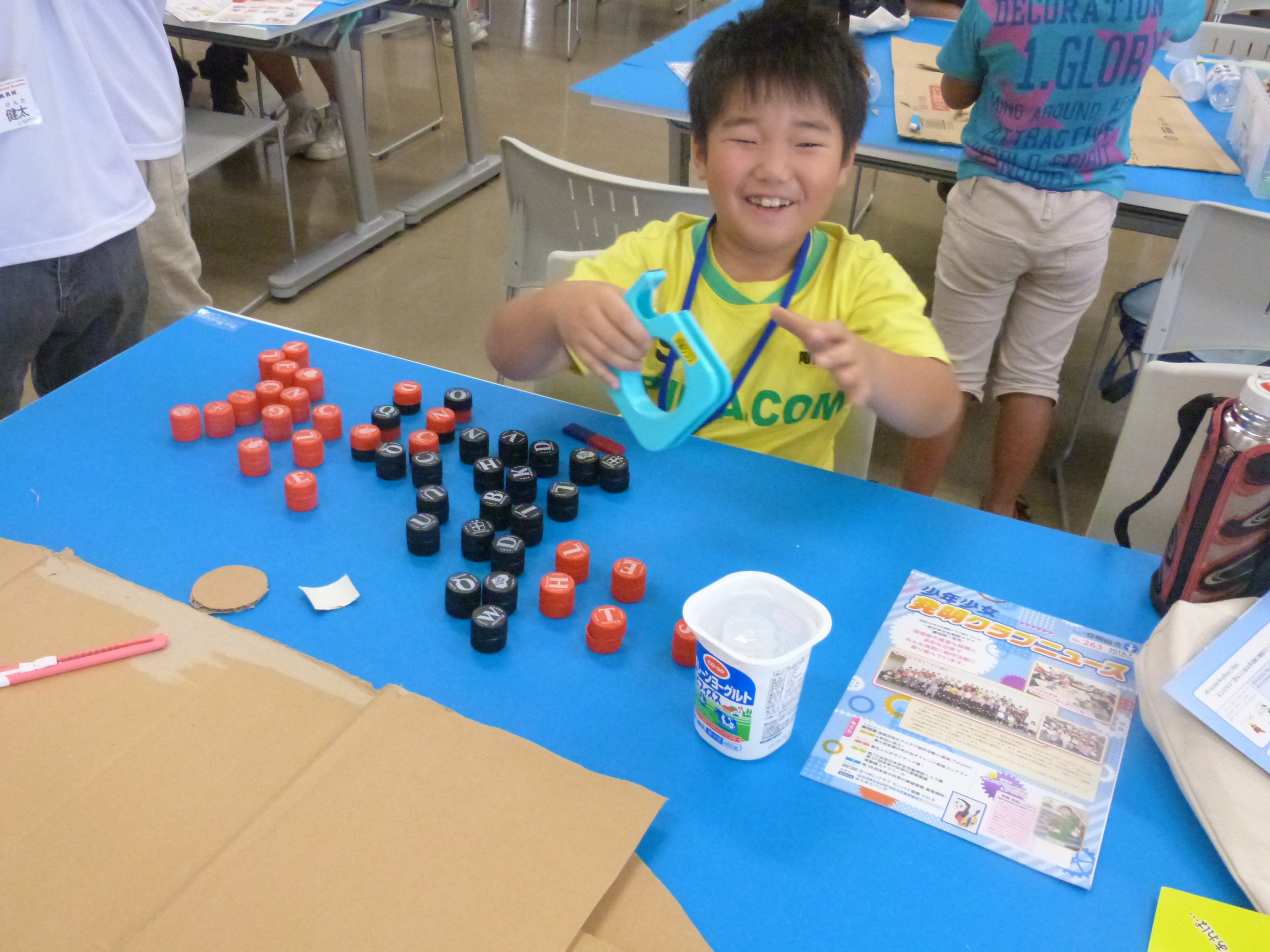 今回は、「全日本学生児童発明くふう展」に向けての最後の活動日となり、家庭から持ち寄った廃材などを使用して、日常生活に活かせるアイディア工作をしました。夏休みの始め頃から取り組み、たくさんの作品が仕上がったようです。