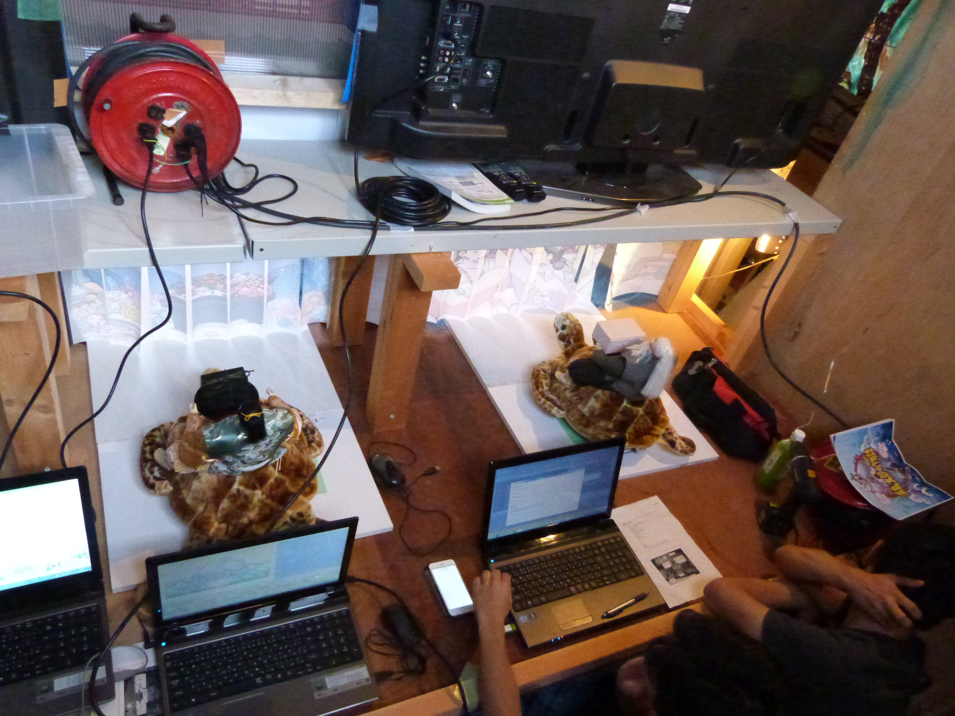 当日に向けて数日前からまつりの準備が行われ、香川高専では、学生による「浦島太郎」、技術教育支援室による「かぐや姫」のからくり人形の展示をしました。工夫を凝らしたからくりで、訪れて下さる皆さんを楽しませようと頑張って準備をしました。