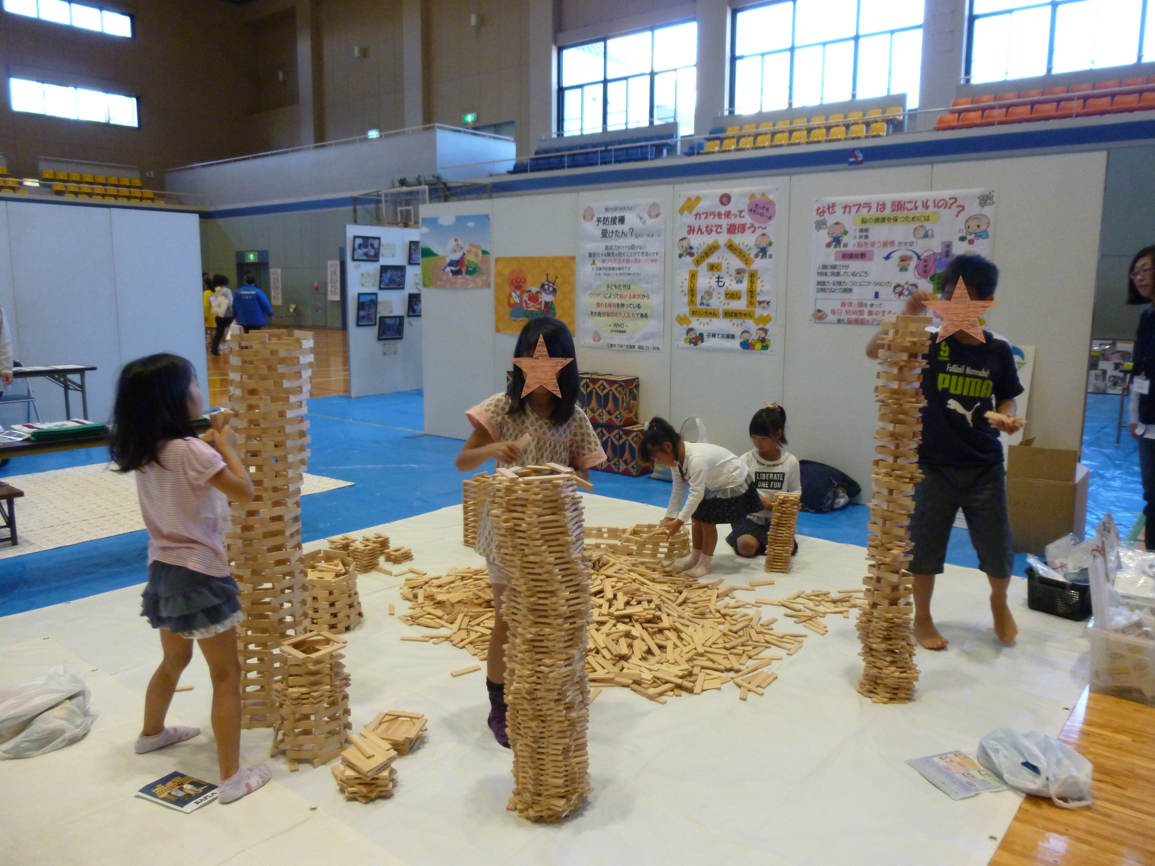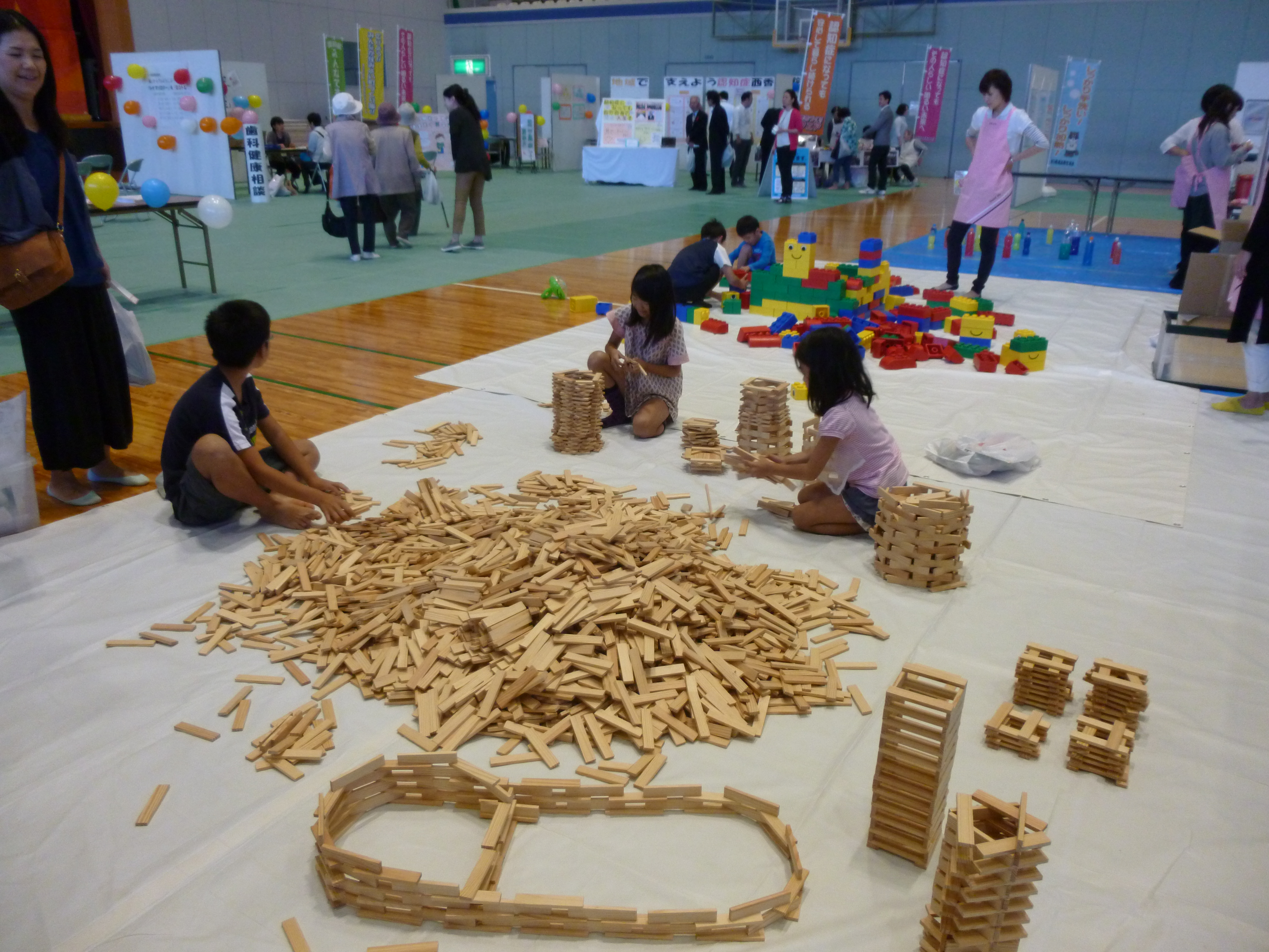 本校は、三豊市子育て支援課の依頼を受け、まつりに訪れた子ども達が楽しめるよう、ものづくり教室等で使用している木製ブロック「カプラ」と、「ソフトレゴブロック」を提供しました。