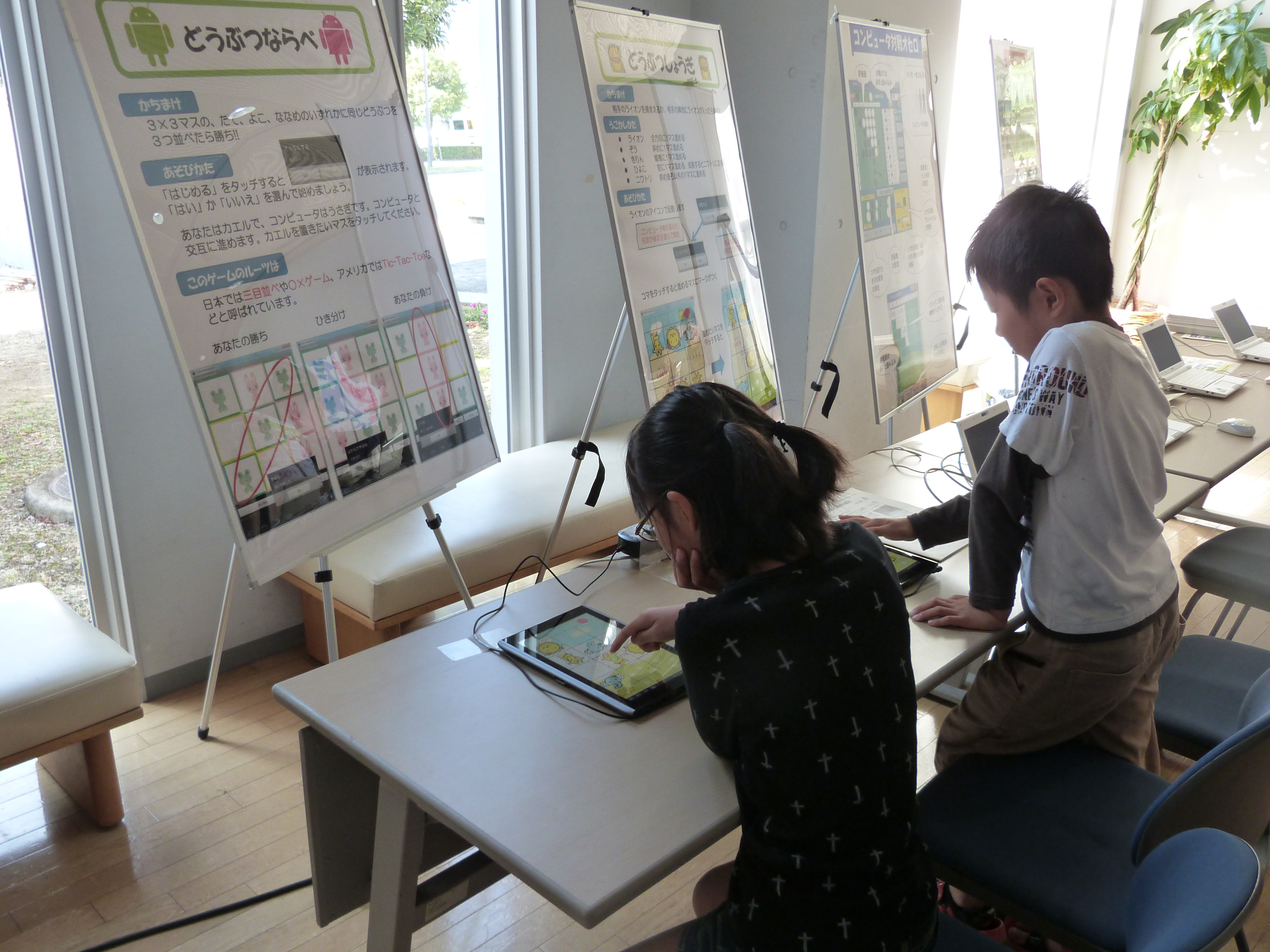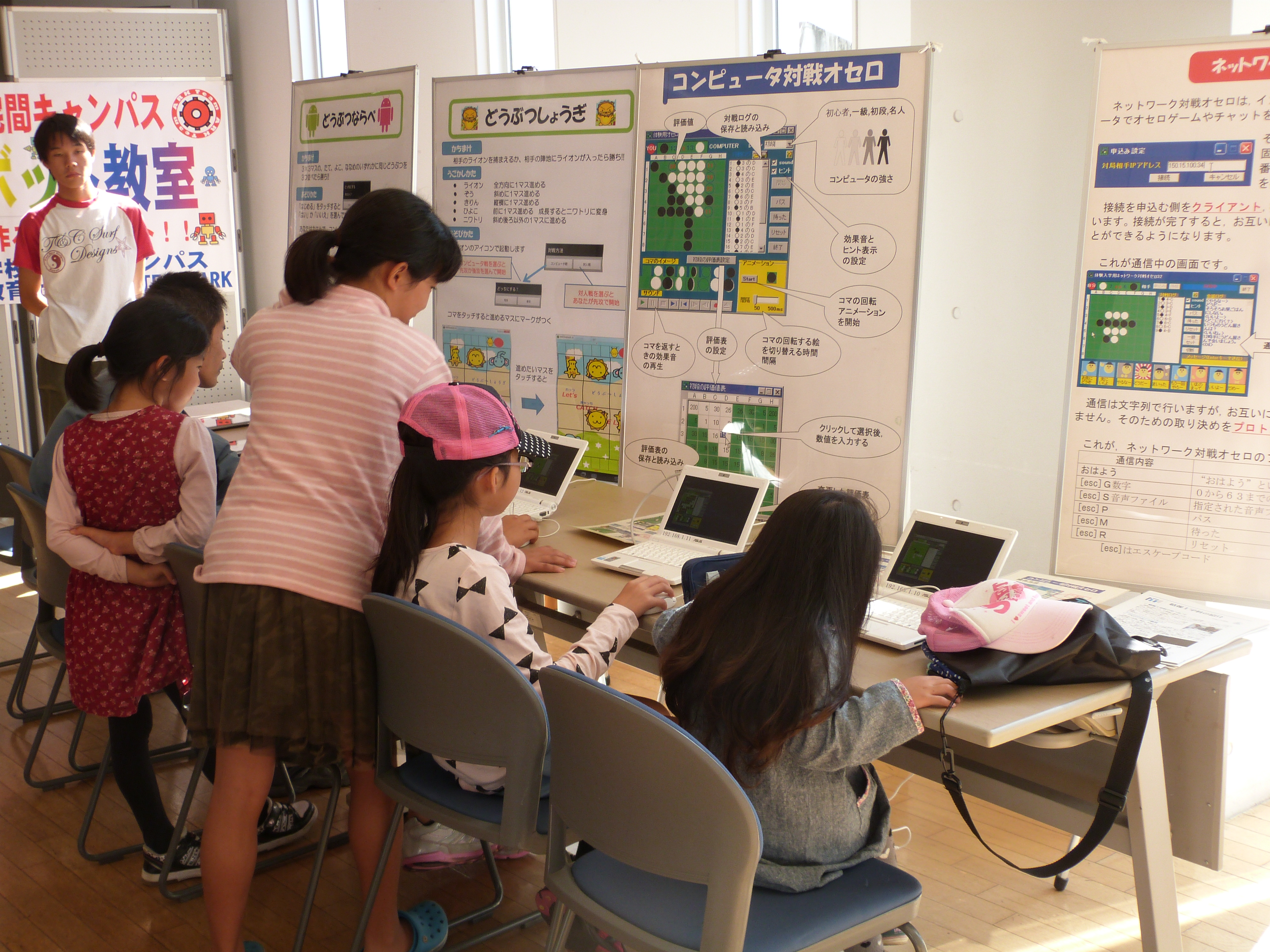 対戦型オセロ、どうぶつ将棋などのゲームを用意し、気軽にコンピュータに触れ、楽しんでいただきました。